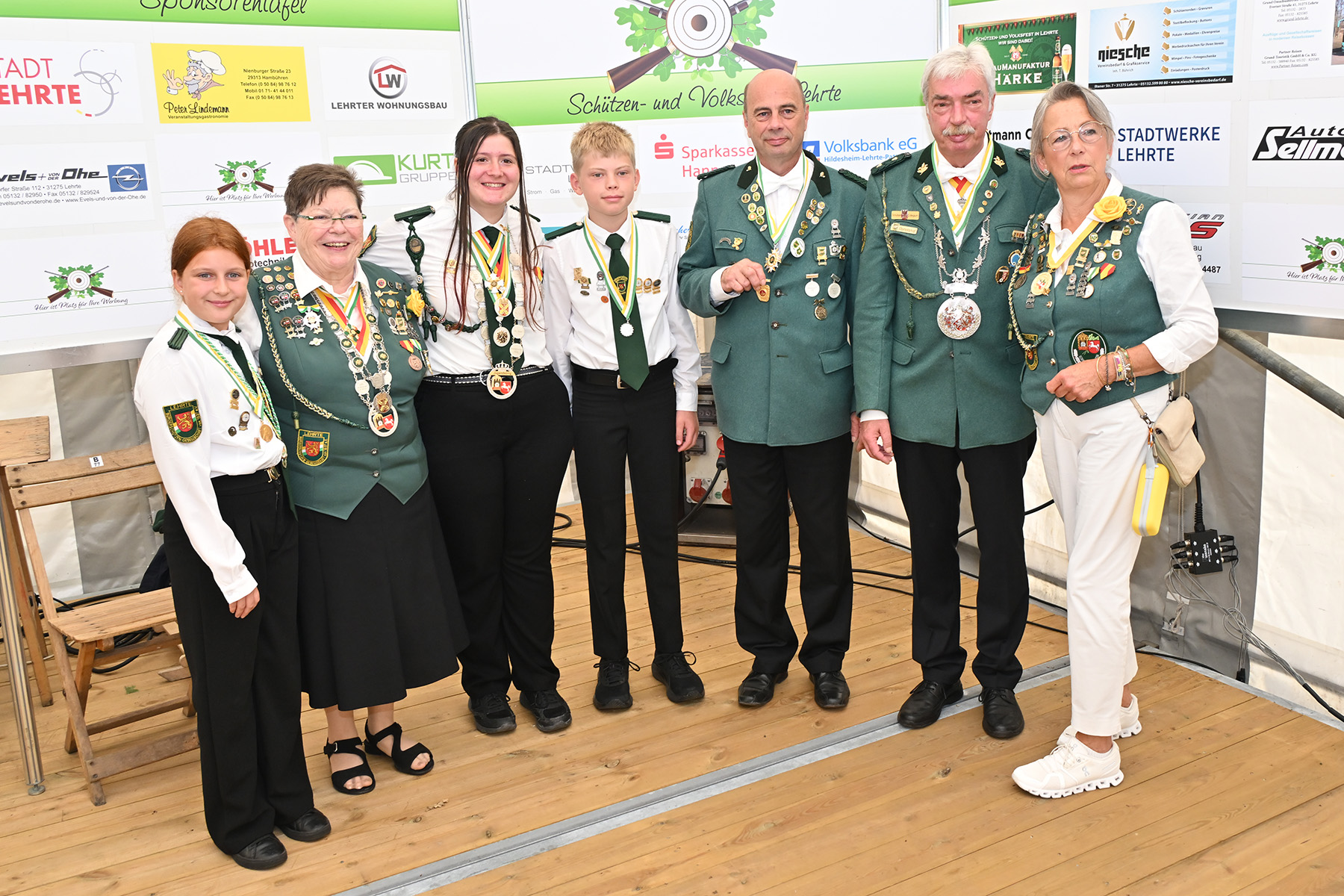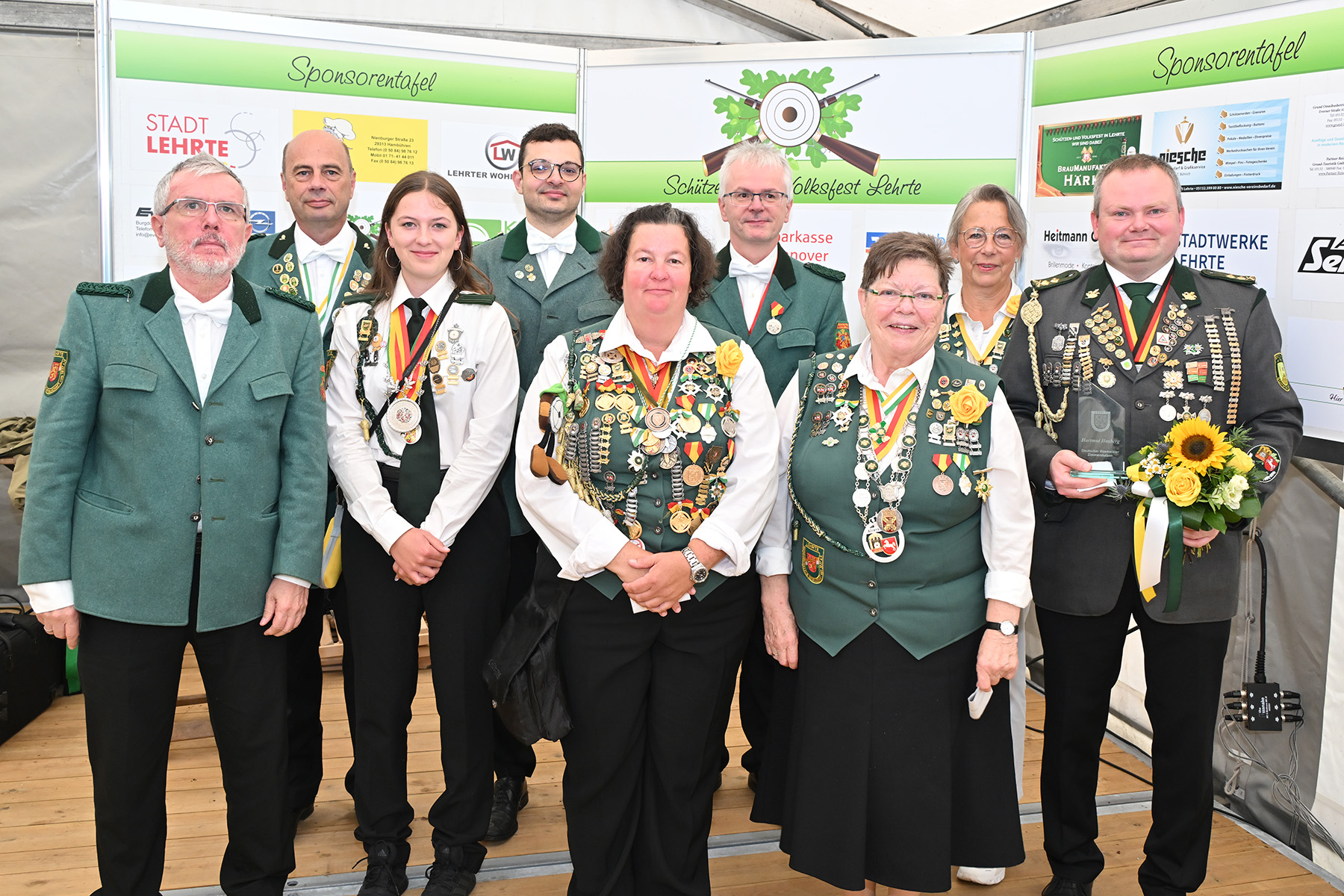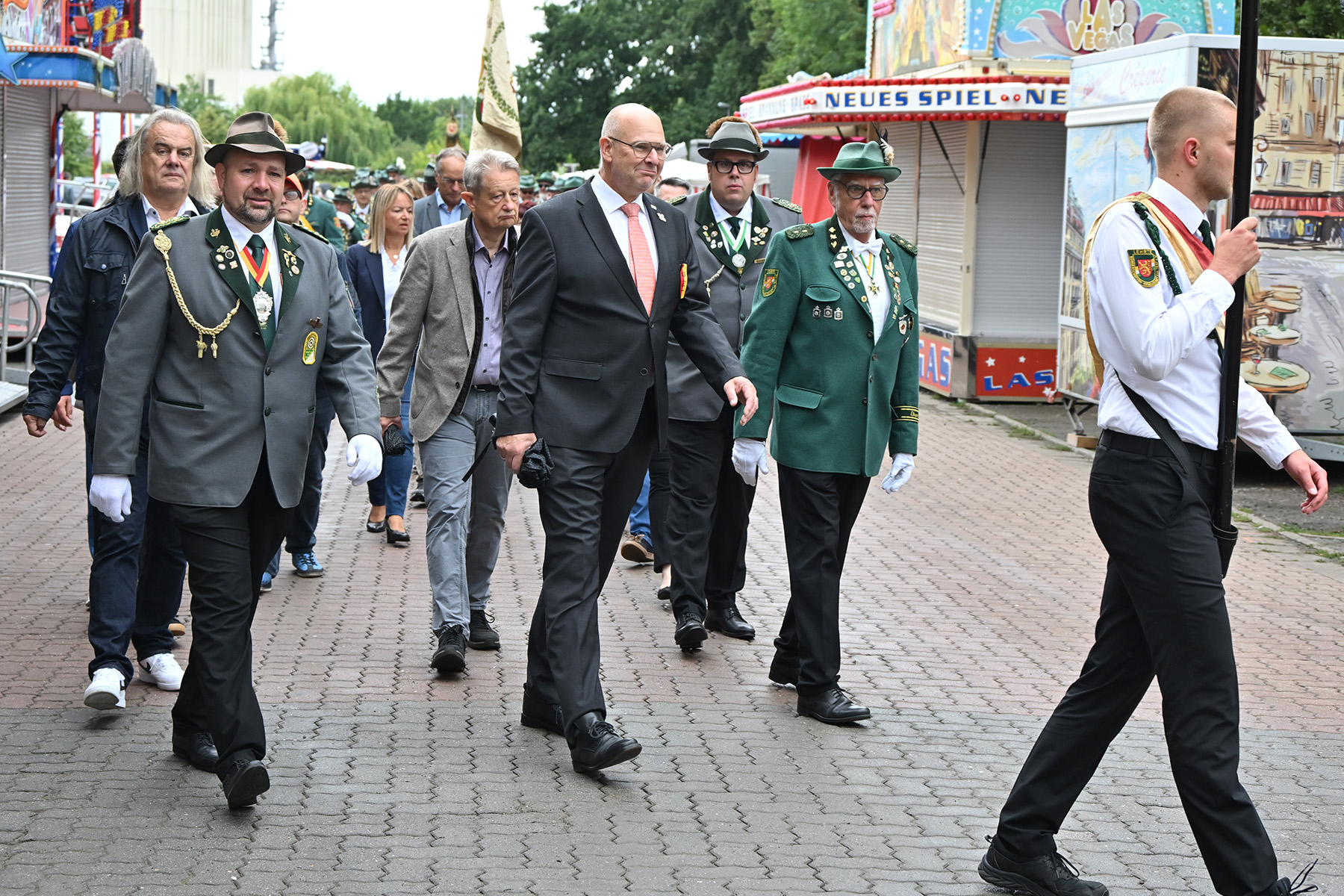 Unter den Gästen waren Lehrtes Bürgermeister Frank Prüße, die stellvertretenden Bürgermeister Eckehard Bock-Wegener und Wilhelm Busch, Mitglieder des Stadtrates, die Landtagsabgeordnete Heike Koehler, Ulf Meldau vom Regionssportbund, der Präsident des Kreisschützenverbandes Burgdorf, Werner Bösche, sowie dessen Vizepräsident Herbert Eggers, Landesschießsportleiter Reinhard Zimmer und Abordnungen zahlreicher Schützenvereine wie vom SSC Adlerhorst Hannover sowie der Schützenvereine aus Aligse, Burgdorf, Ahlten, Klein Buchholz, Höver und Ilten. Außerdem wurden Vertreter von Kirche, Lehrter Wirtschaft, Freiwilliger Feuerwehr, FC Lehrte und Lehrter Sport-Verein begrüßt sowie viele Sponsoren und Spender. Letzteren fügte er hinzu: „Durch euch wäre das ein oder andere nicht möglich“. Er erinnerte an das Sponsoring durch zahlreiche freie Getränke und des Kinderumzugs am Sonnabendnachmittag, bei dem die jungen Teilnehmer Chips für die Fahrgeschäfte erhalten. Auch dem Betriebshof der Stadt Lehrte dankte er ausdrücklich: „Ohne euch wäre das in dieser Form nicht möglich.“