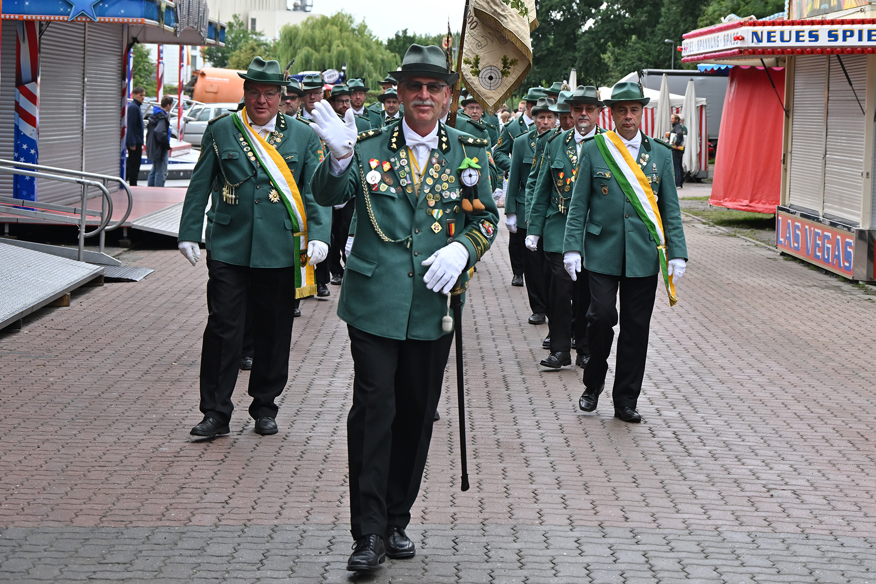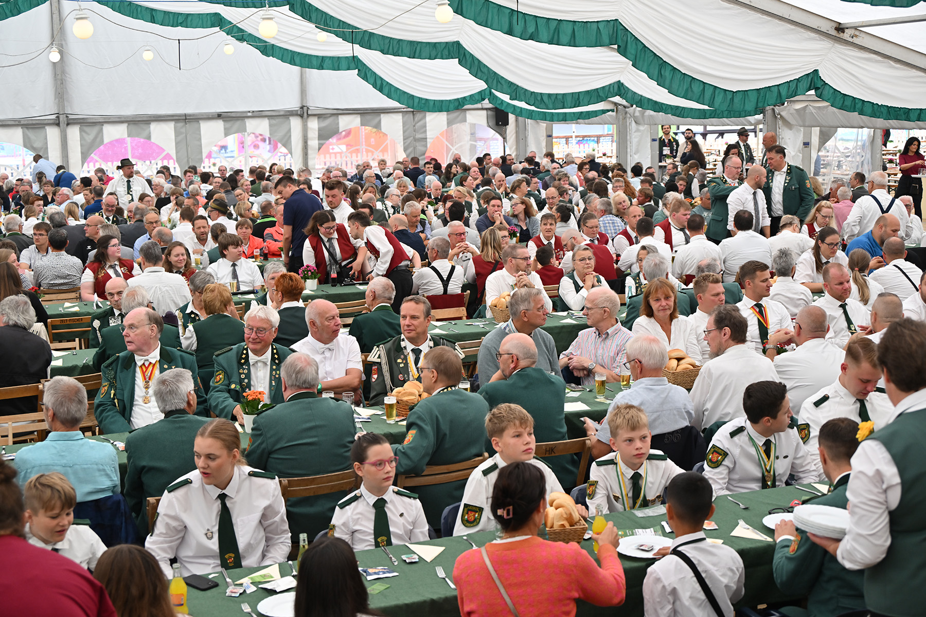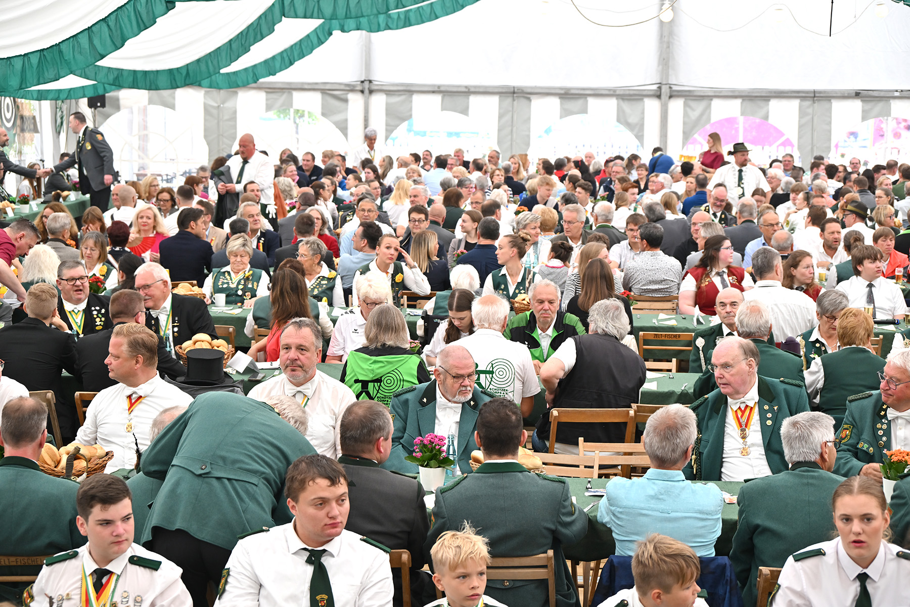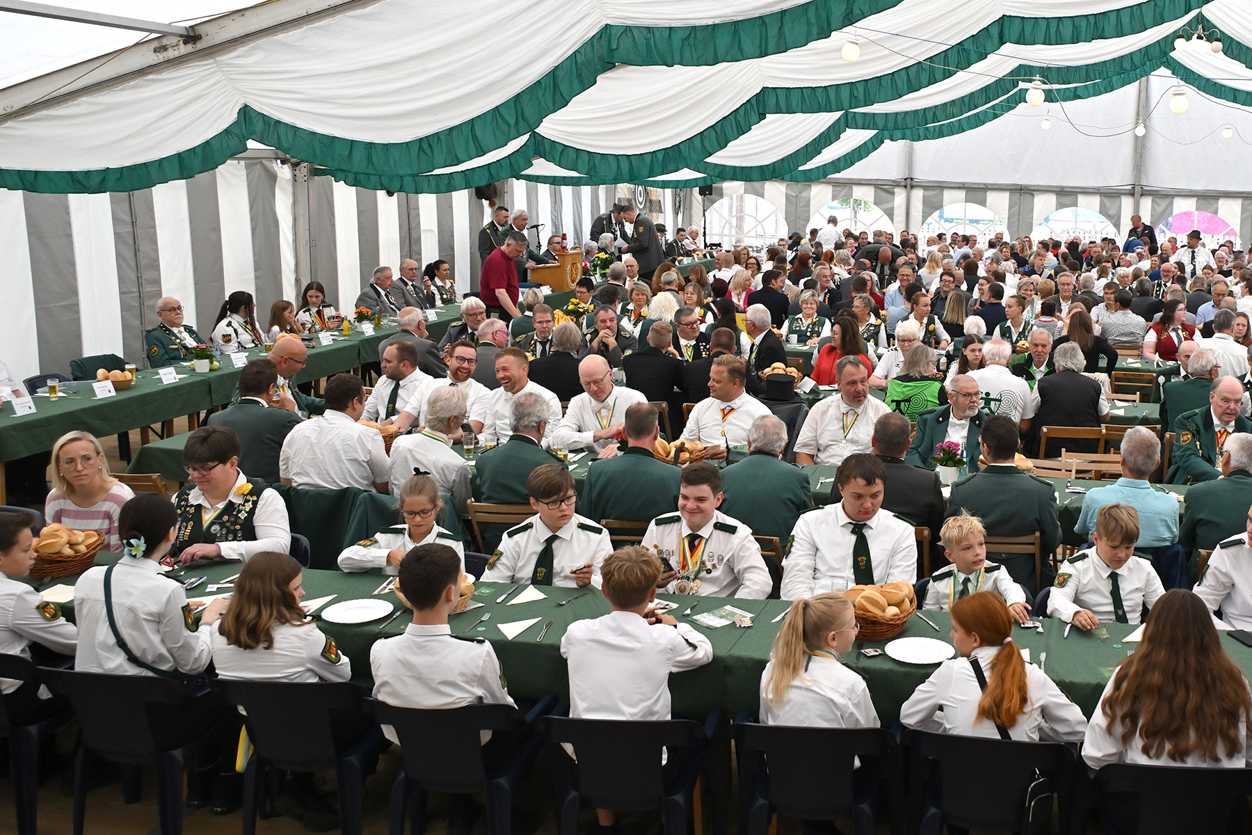 Mehr als 600 Besucher des Königsfrühstücks anlässlich des Lehrter Schützen- und Volksfestes 2025 wurden am heutigen Sonnabend, 2. August 2025, im Festzelt von Uwe Kaddatz vom Schützencollegium begrüßt. Fast 650 Gäste nahmen an der Veranstaltung teil. „Ready to Rumble – hier wird das Schützenfest nicht nur gefeiert, sondern gelebt“, sagte Kaddatz. Wieder einmal konnte die Zahl der Teilnehmer gesteigert werden. Es sei das größte Frühstück in der Region Hannover, wenn nicht sogar in ganz Niedersachsen, betonte der Sprecher des Schützen-Collegiums, das das Lehrter Schützen- und Volksfest organisiert und sich auch Mitgliedern von Schützen-Corps und Bürgerschützengesellschaft zusammensetzt.