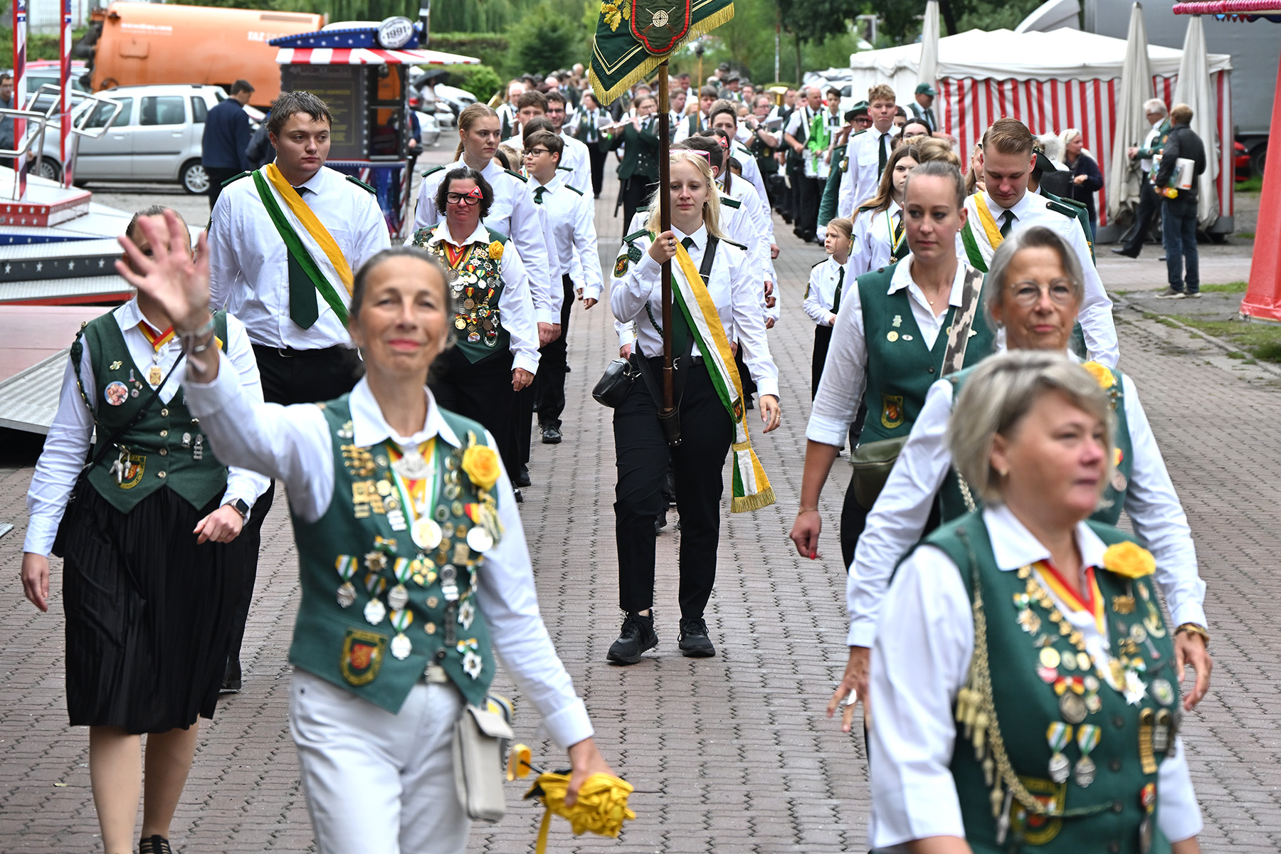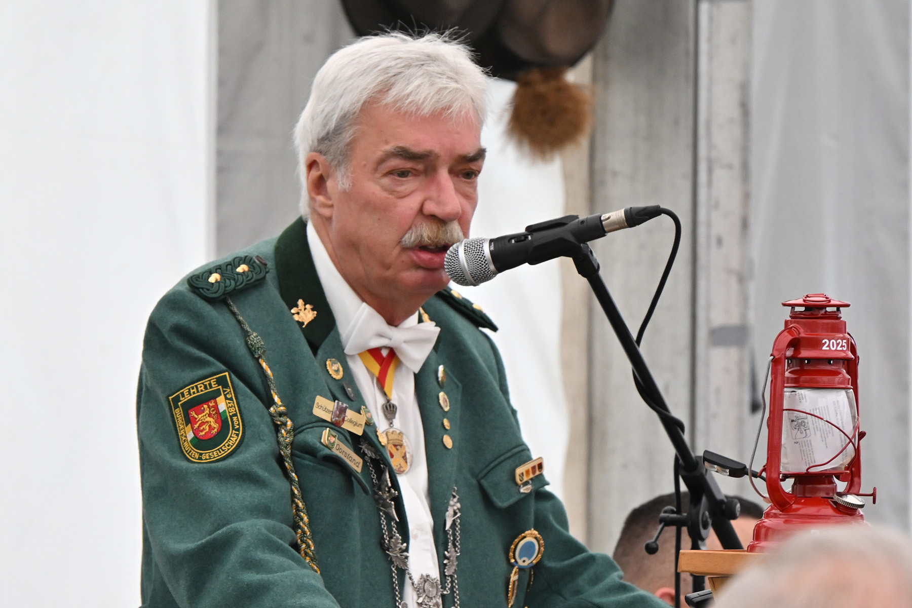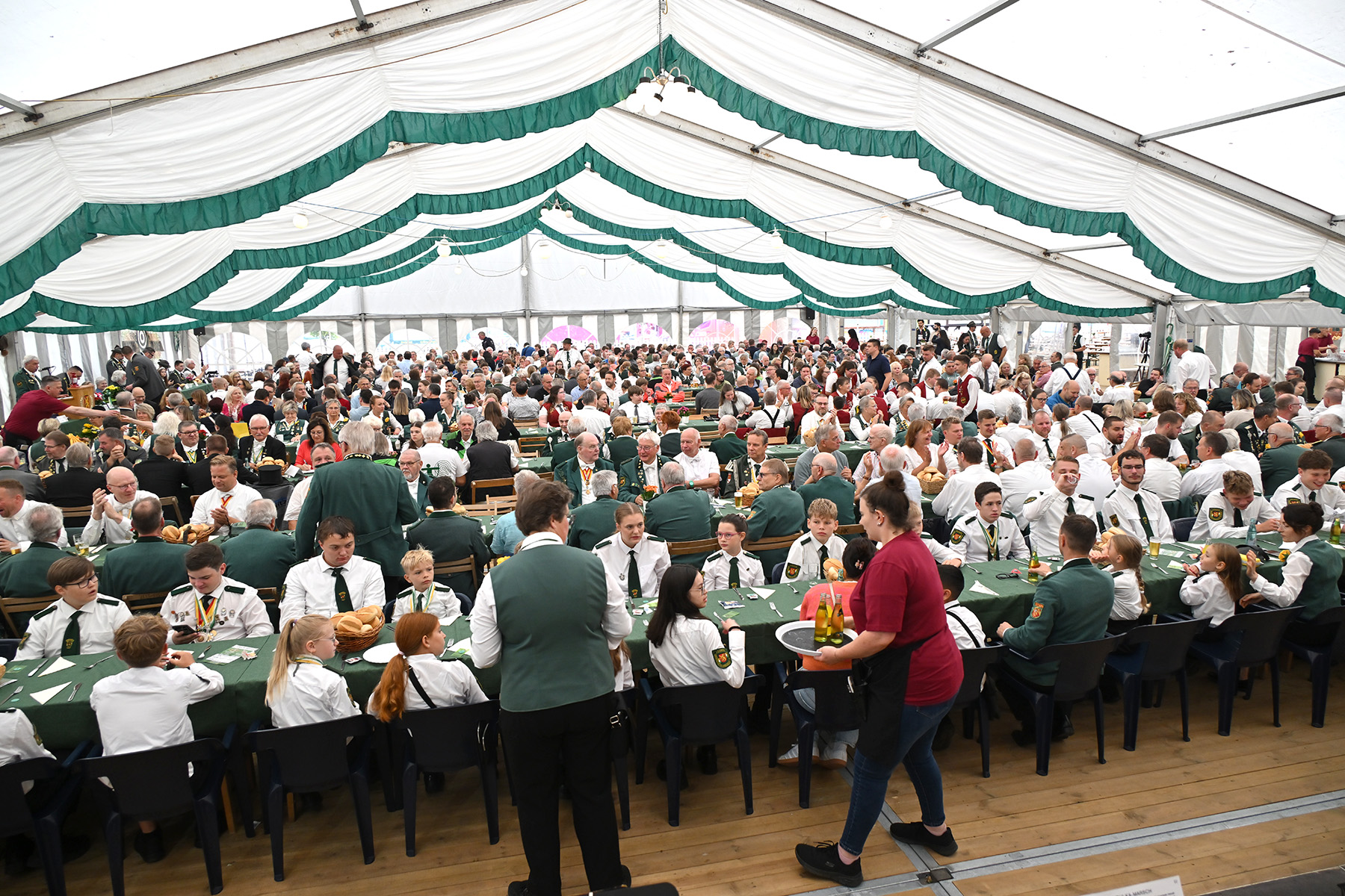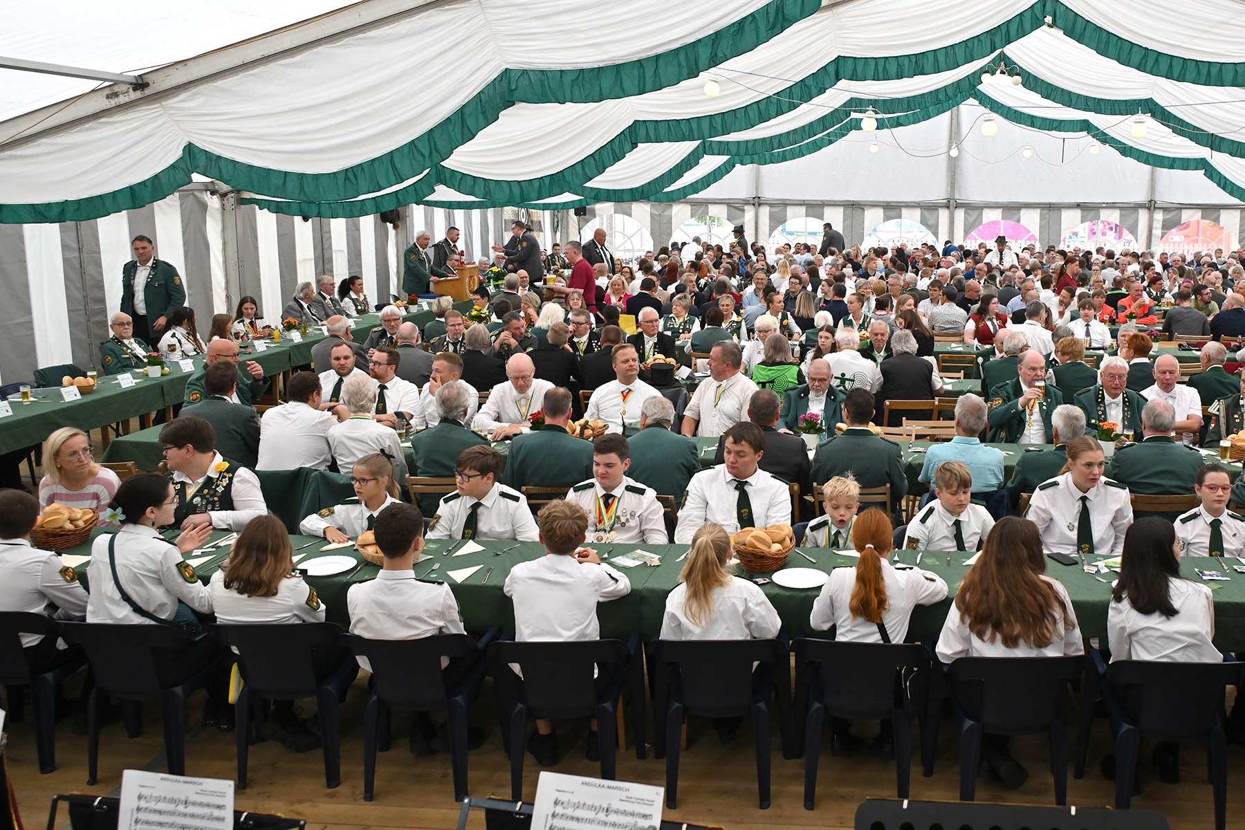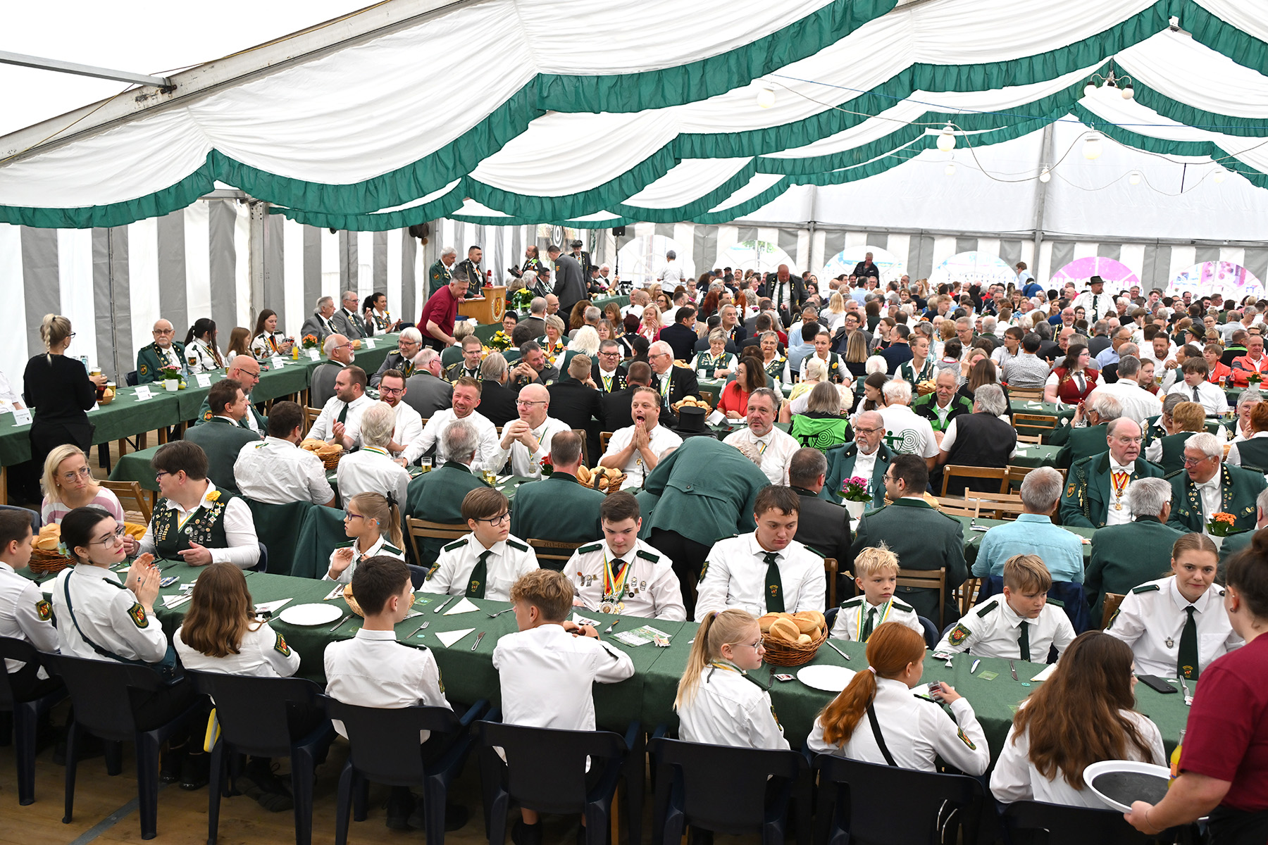 Mehr als 600 Besucher des Königsfrühstücks anlässlich des Lehrter Schützen- und Volksfestes 2025 wurden am heutigen Sonnabend, 2. August 2025, im Festzelt von Uwe Kaddatz vom Schützencollegium begrüßt. Fast 650 Gäste nahmen an der Veranstaltung teil. „Ready to Rumble – hier wird das Schützenfest nicht nur gefeiert, sondern gelebt“, sagte Kaddatz. Wieder einmal konnte die Zahl der Teilnehmer gesteigert werden. Es sei das größte Frühstück in der Region Hannover, wenn nicht sogar in ganz Niedersachsen, betonte der Sprecher des Schützen-Collegiums, das das Lehrter Schützen- und Volksfest organisiert und sich auch Mitgliedern von Schützen-Corps und Bürgerschützengesellschaft zusammensetzt.