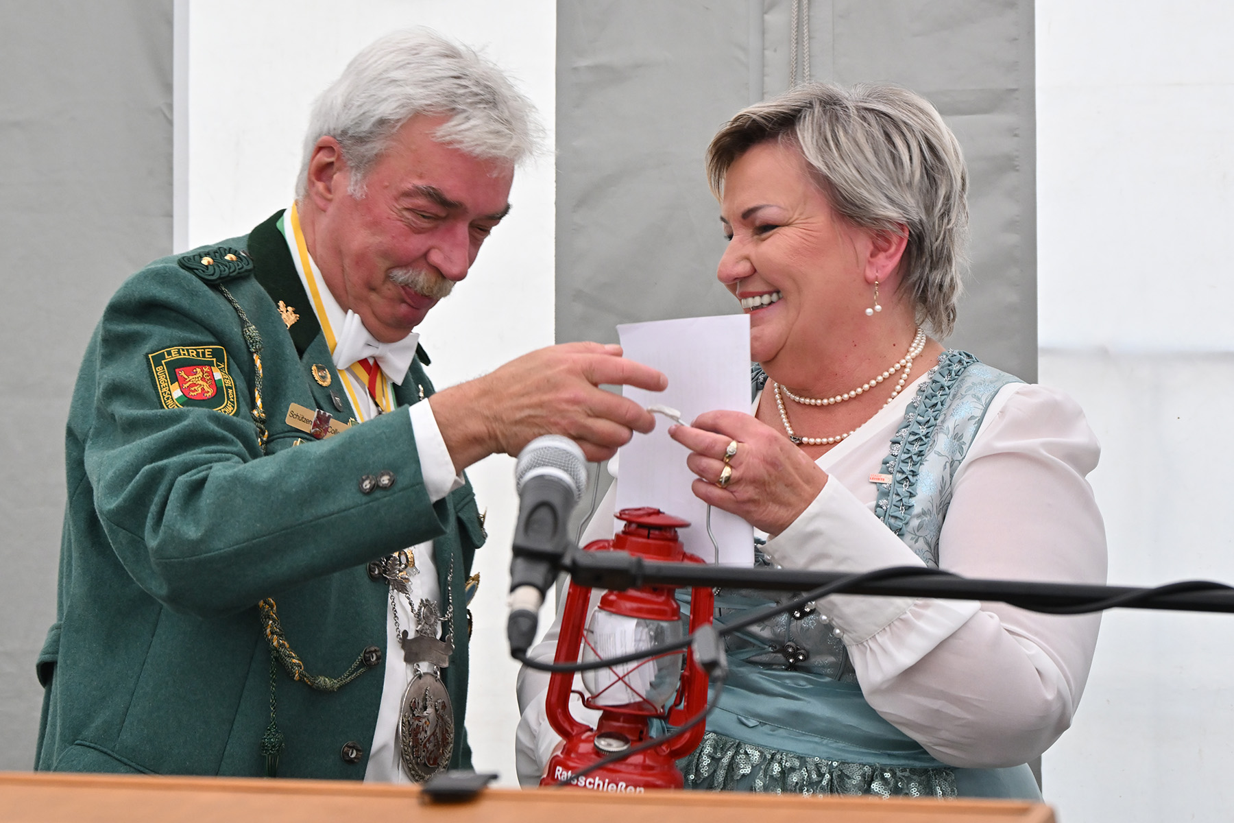 Weniger politisch, dafür gesellschaftlich nachdenklich äußerte sich die Gewinnerin der Roten Laterne, Annette Vetten, Fachdienstleiterin Bildung, Familie und Soziales der Stadt Lehrte. Sie erklärte, dass sie weniger dem Schützenwesen angehöre, sondern aufgrund ihrer Tätigkeit bei der Stadt „die mit den Kindern“ sei. Sie stehe für all das, was nicht auf der Schützenfestkarte stehe, aber dennoch wichtig sei. „Die Gemeinschaft fehlt da draußen“, sagte sie und mahnte, dass die Probleme nicht weit weg sondern auch schon hinter der nächsten Tür vorhanden sein können. Lehrte sei auch Jugendhilfe. „Nicht jeder Schuss trifft“, so Vetten. Es fehle an Geld und Zeit, und die Arbeit laufe am Limit. Daher brauche es mutige Menschen, die mehr geben als Applaus und gute Worte. Schützen wüssten, was Zusammenhalt bedeute, und diesen fordere sie auch von der Gesellschaft ein – sei es als Paten, Zuhörer oder Pflegeeltern. Sie schlug vor, künftig gemeinsam mit den Schützen an Projekten wie „Schützen helfen Kindern“ zu arbeiten. Ihre Worte fanden stehenden Applaus, und Uwe Kaddatz urteilte abschließend, dass „diese Reden zum Nachdenken anregen“.