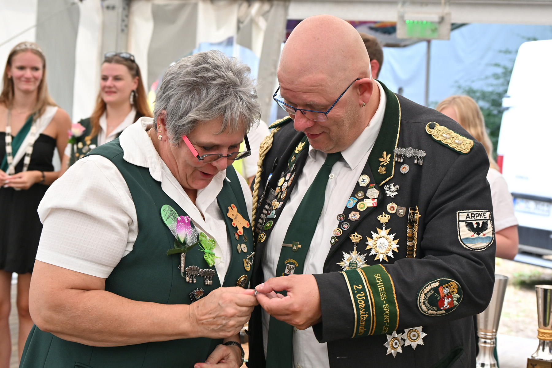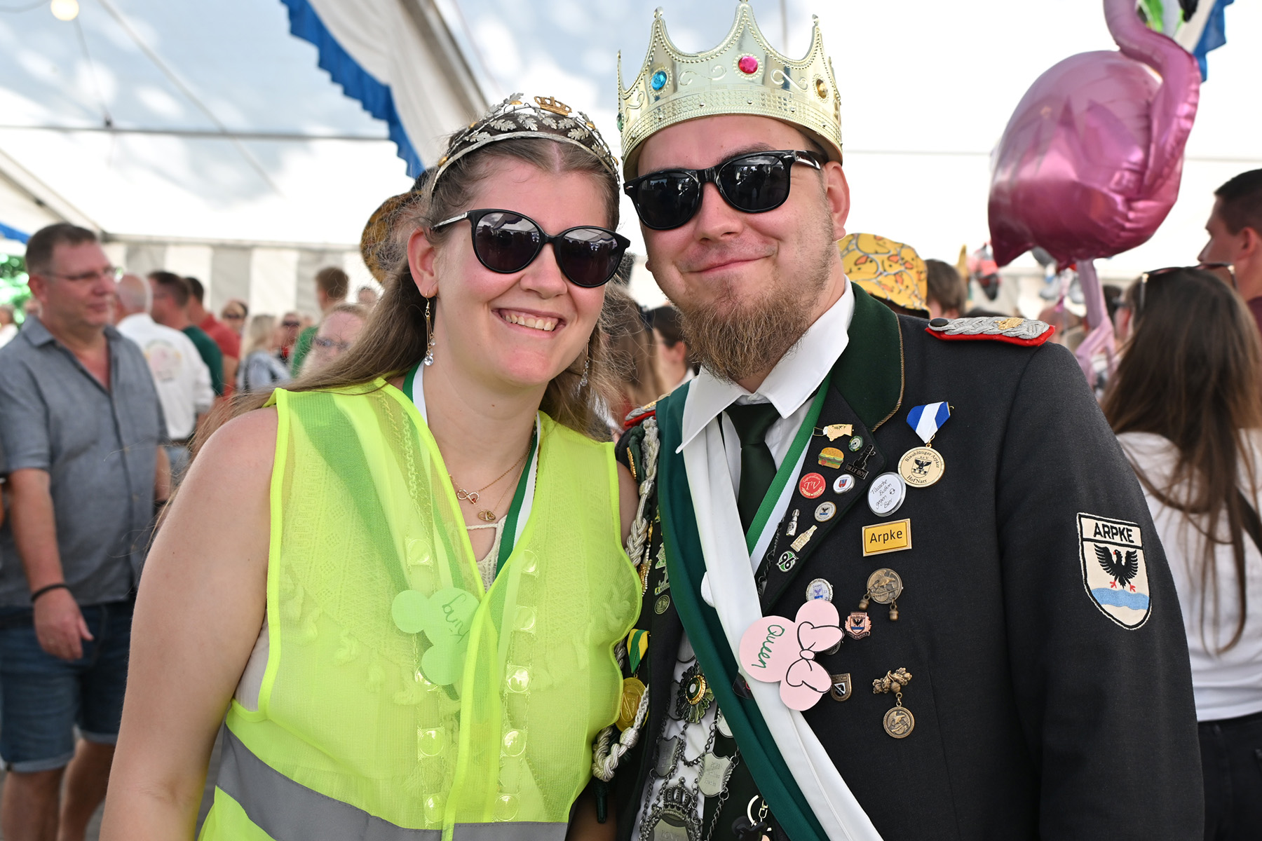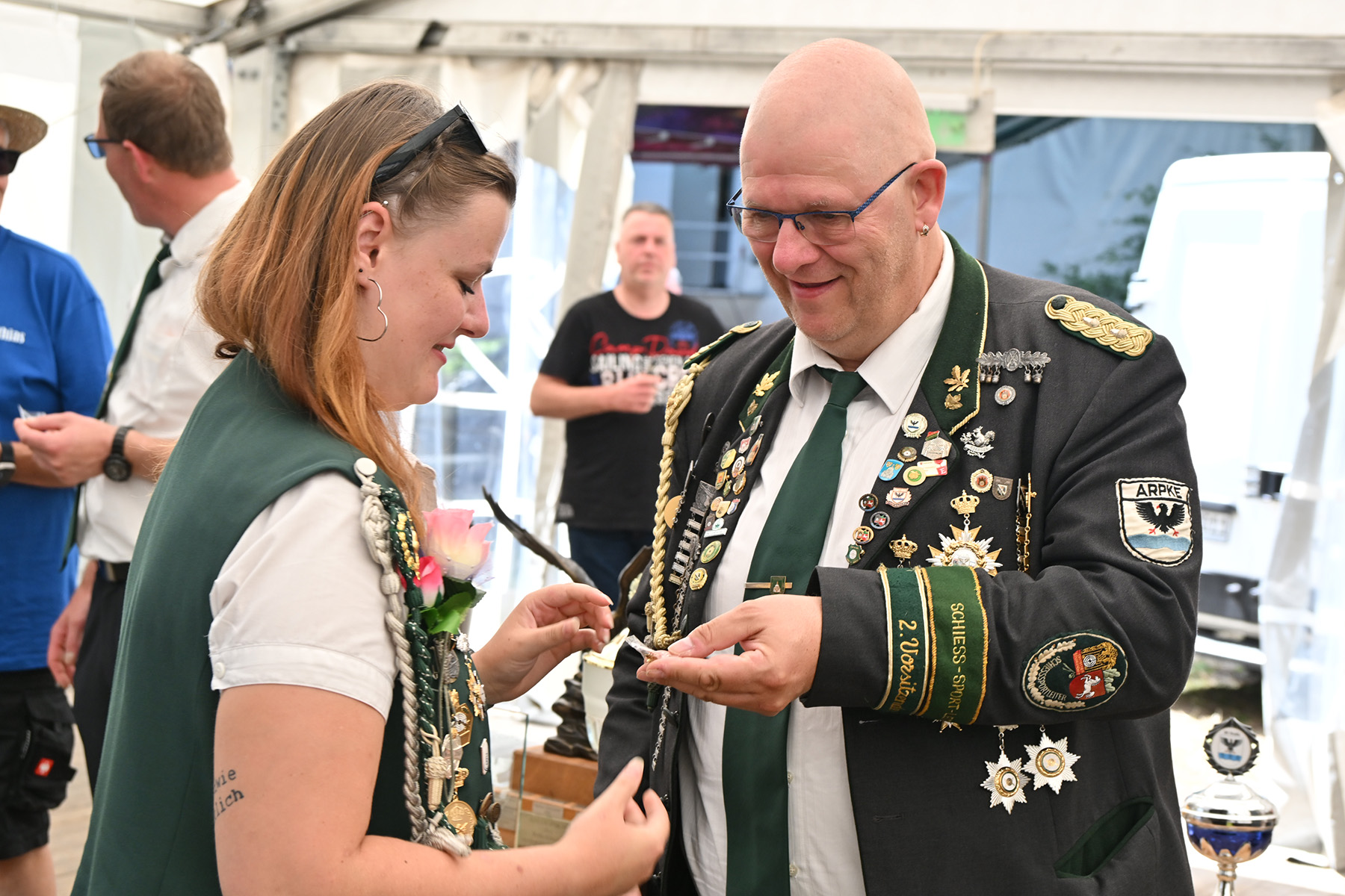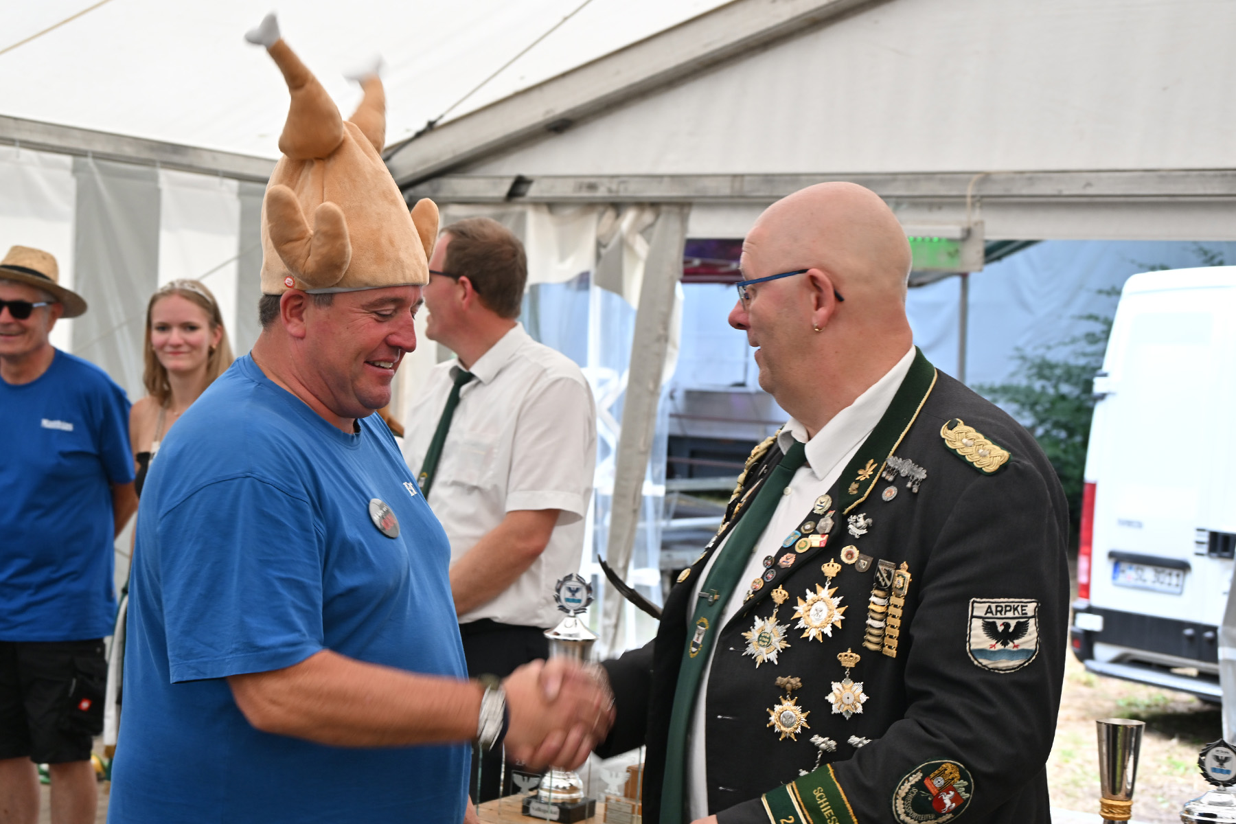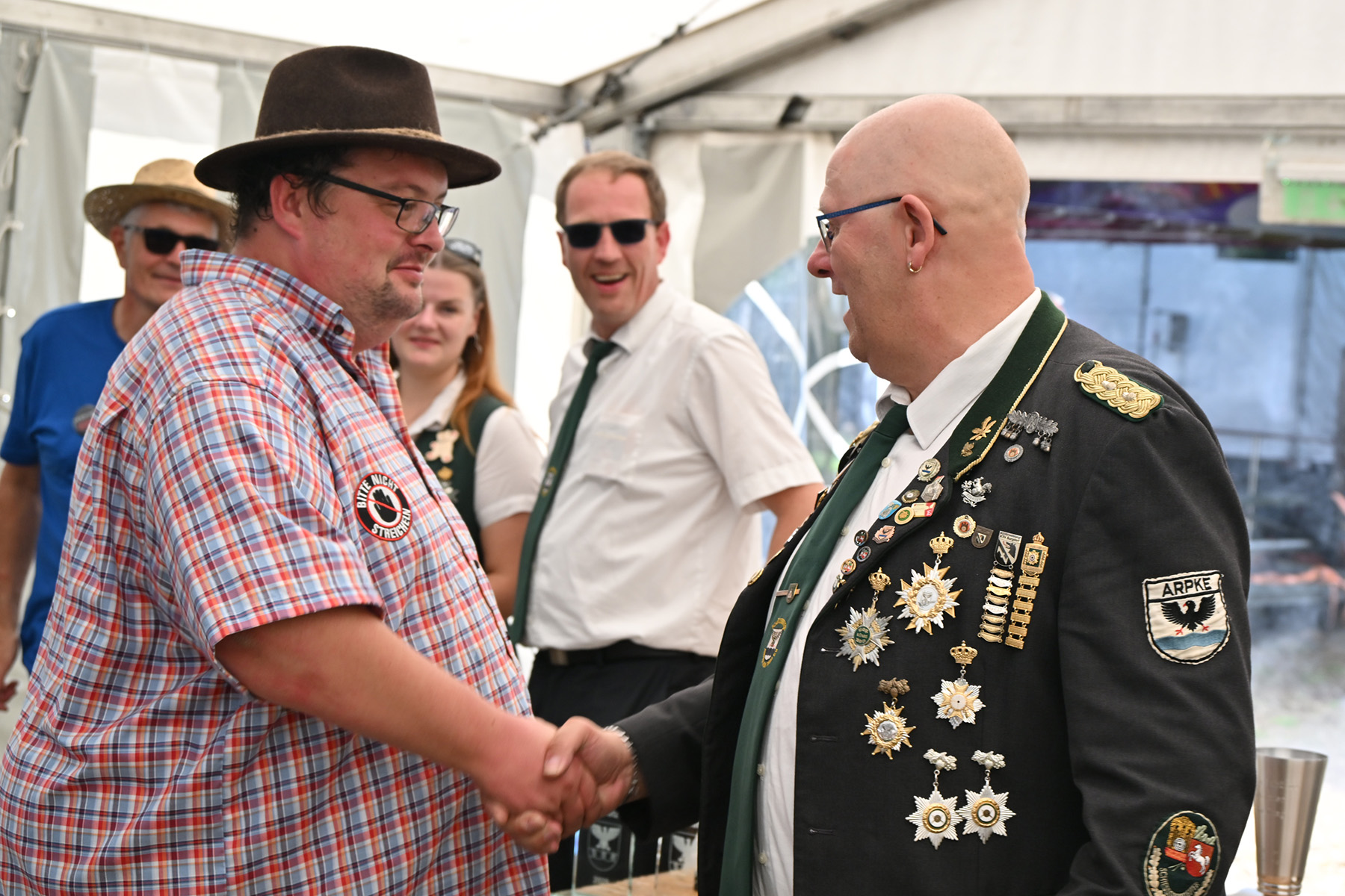 Zudem erhielten die Sieger der Schießwettbewerbe ihre Pokale überreicht. Nach rund zweieinhalb Stunden endete der offizielle Teil des Königsessens. Anschließend feierten die Arpker Schützen und ihre Gäste noch bei bestem Sommerwetter auf dem Schützenplatz weiter, ehe das Fest dann am Abend langsam ausklingen wird.