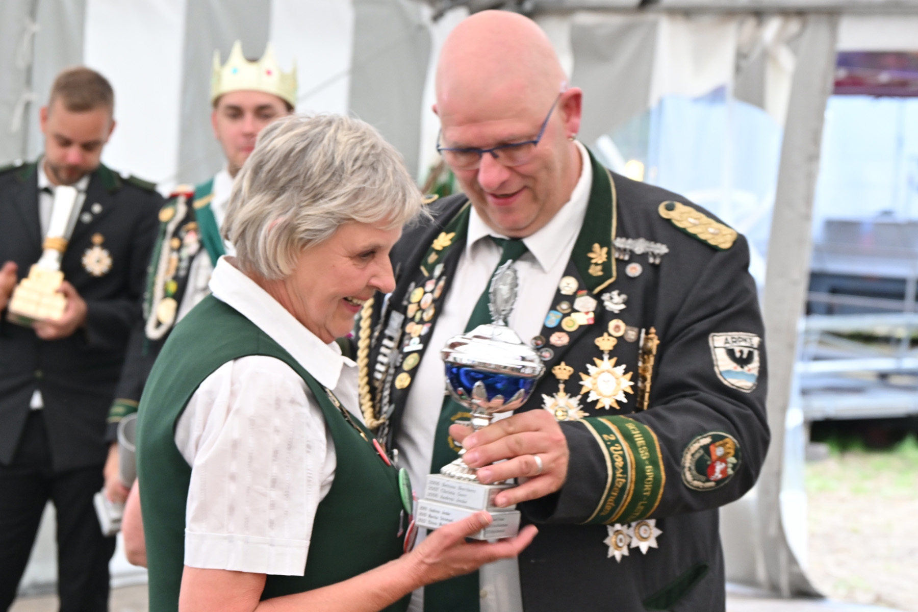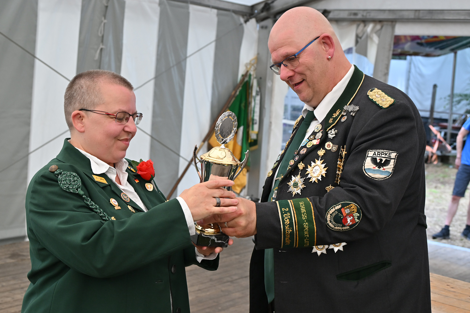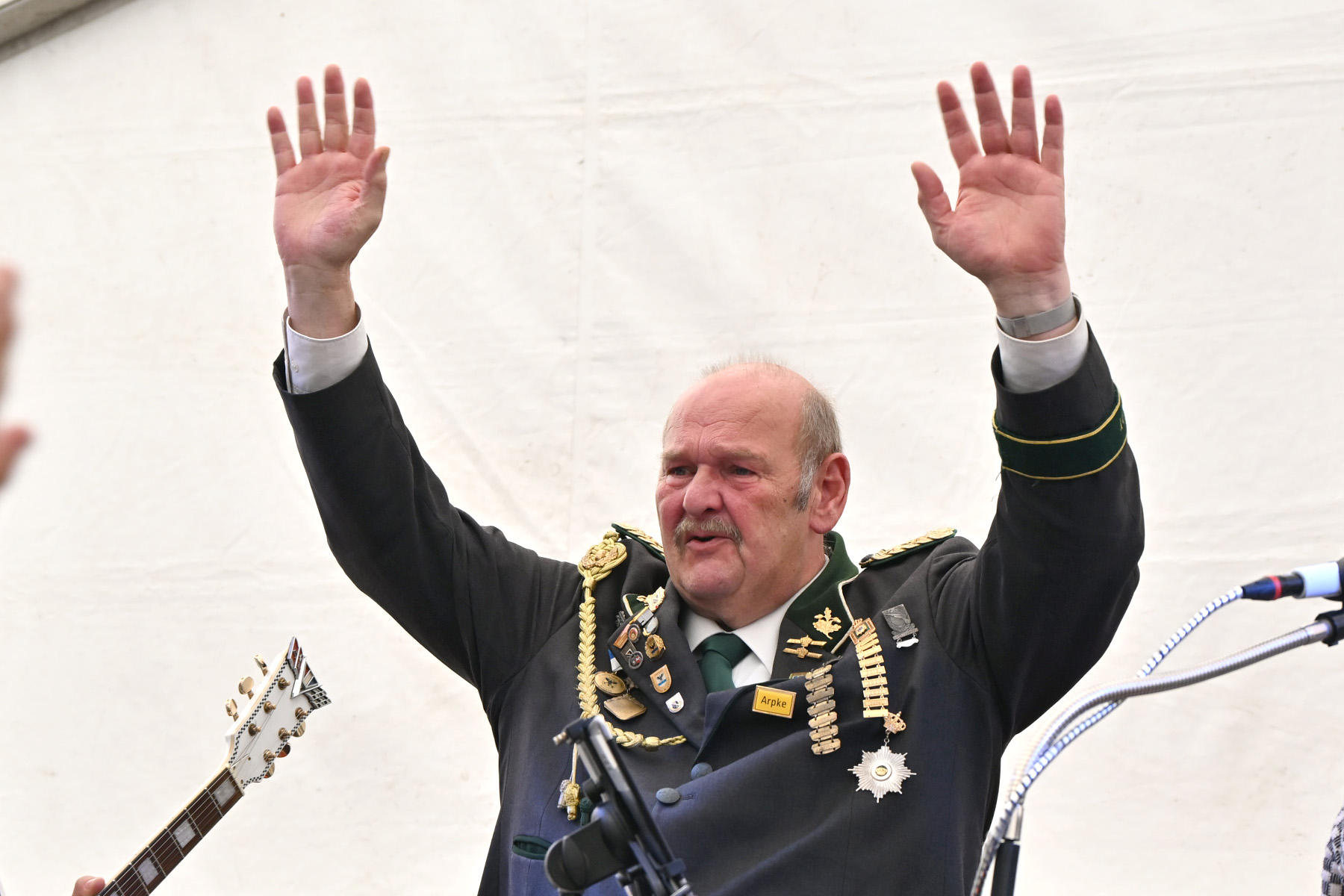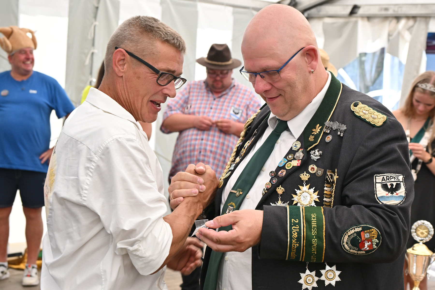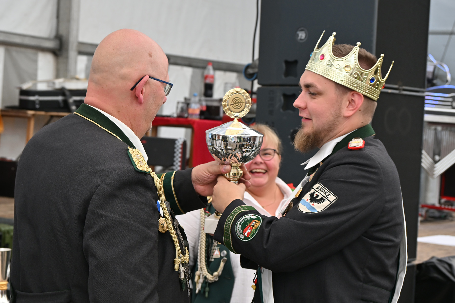 Zudem erhielten die Sieger der Schießwettbewerbe ihre Pokale überreicht. Nach rund zweieinhalb Stunden endete der offizielle Teil des Königsessens. Anschließend feierten die Arpker Schützen und ihre Gäste noch bei bestem Sommerwetter auf dem Schützenplatz weiter, ehe das Fest dann am Abend langsam ausklingen wird.