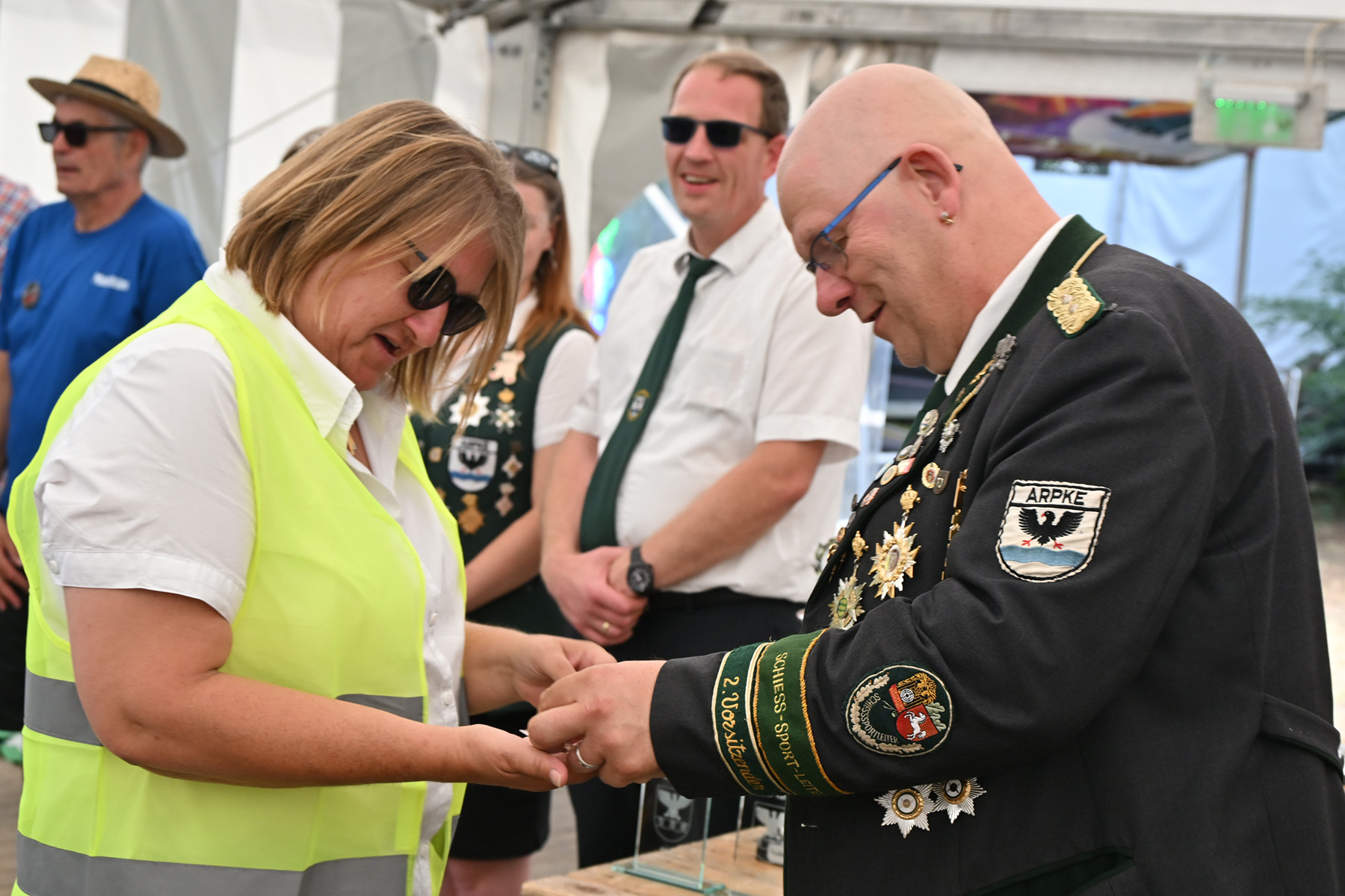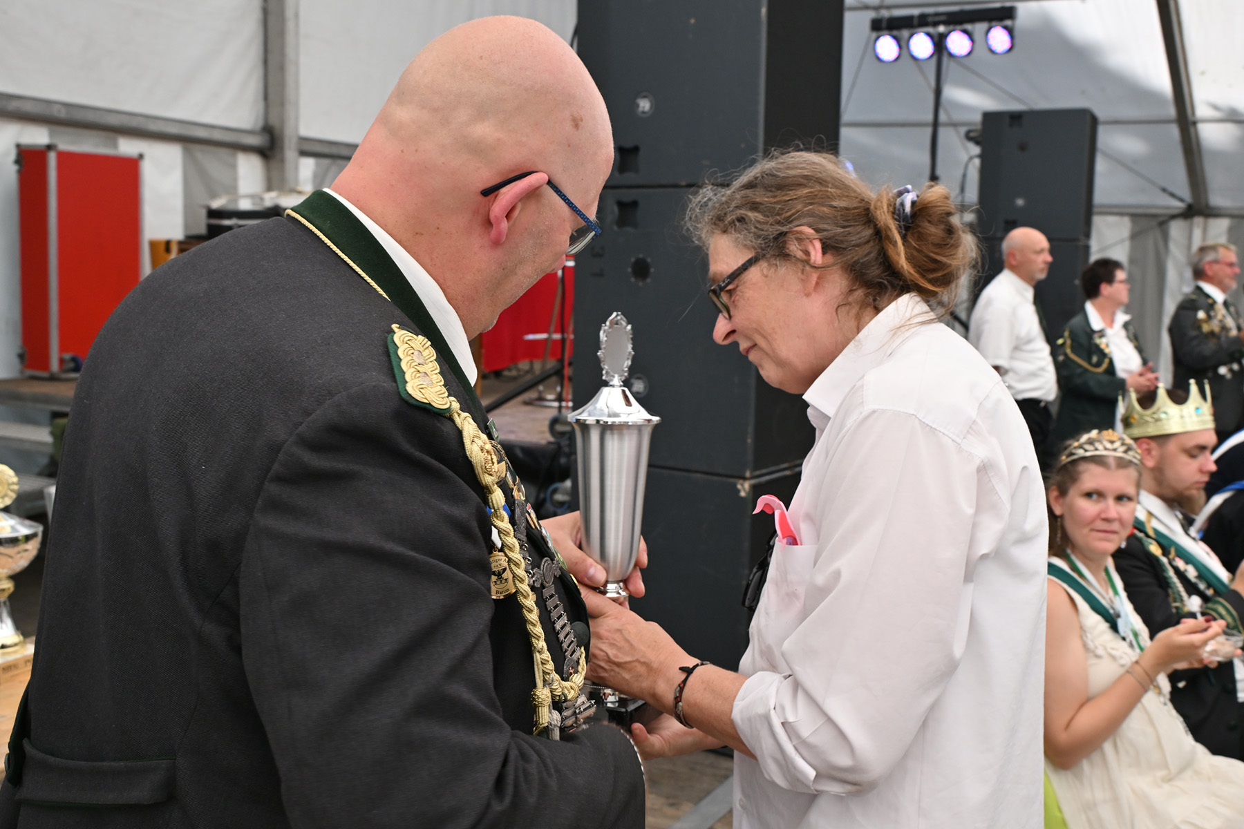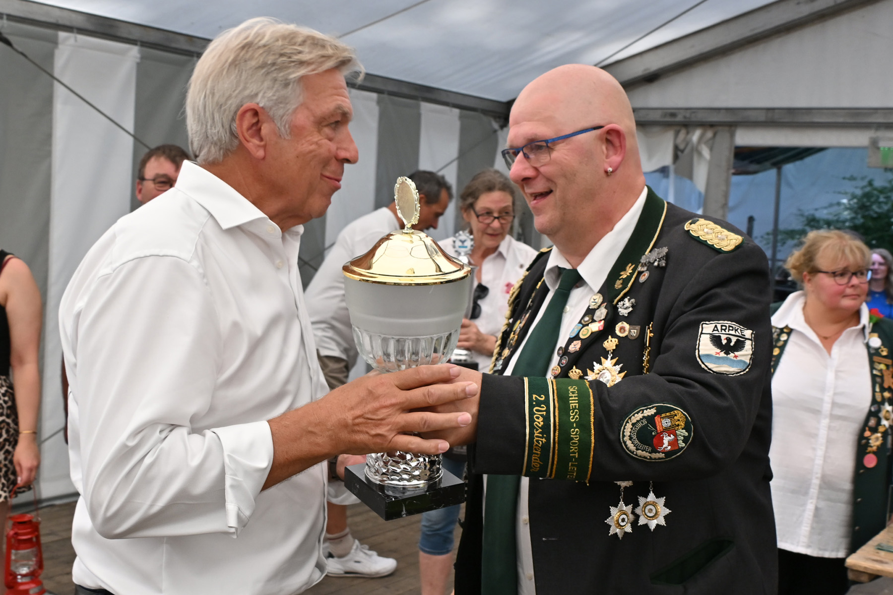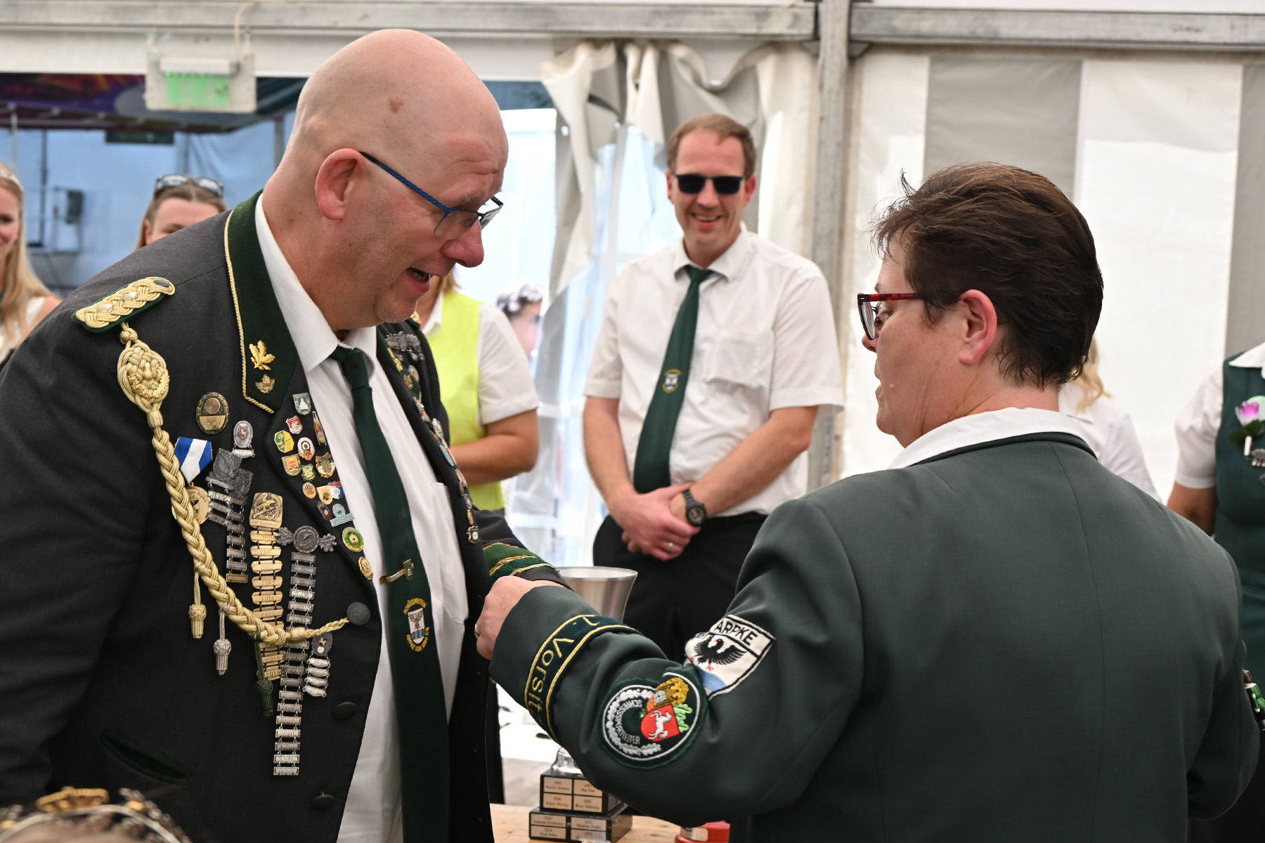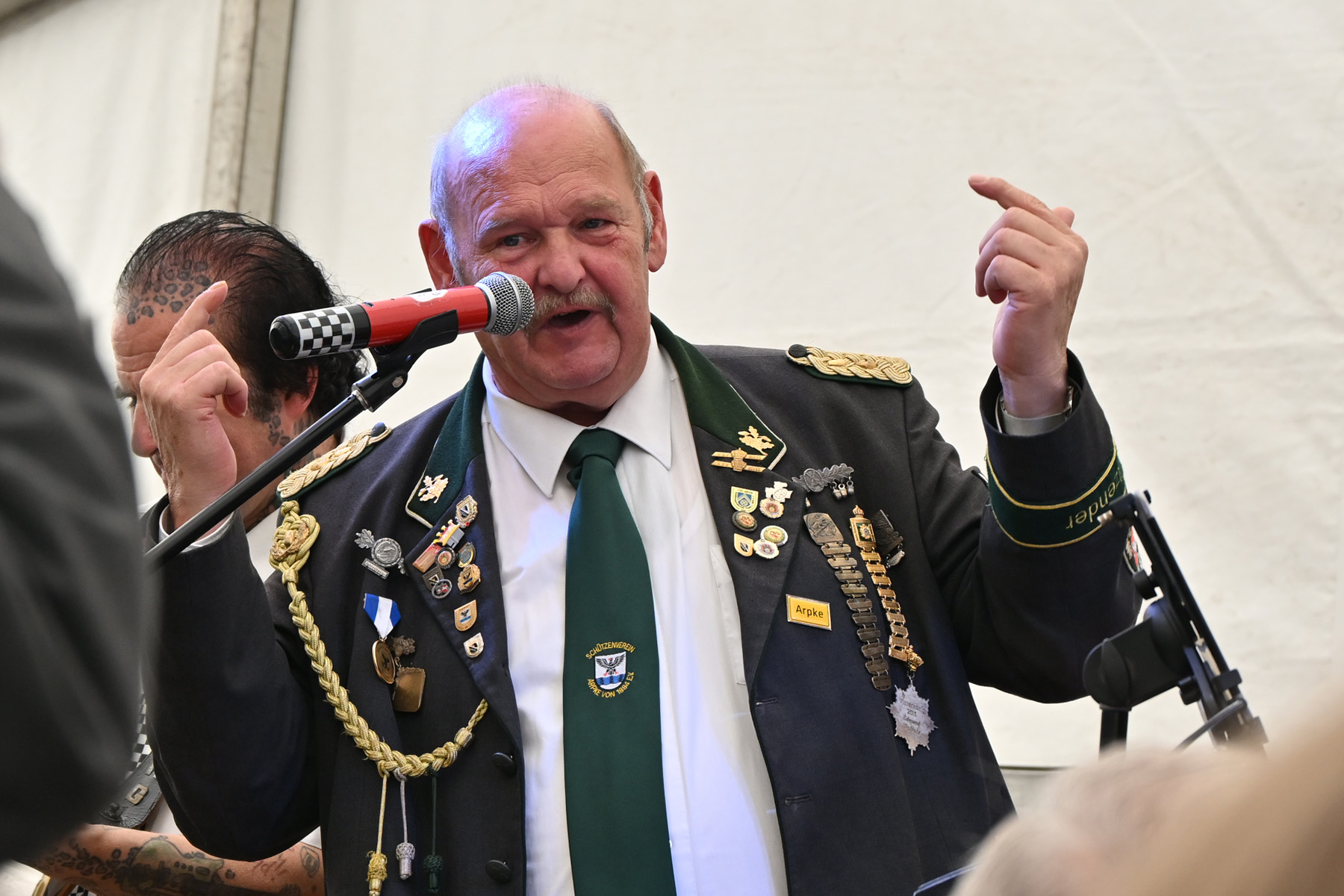 Zudem erhielten die Sieger der Schießwettbewerbe ihre Pokale überreicht. Nach rund zweieinhalb Stunden endete der offizielle Teil des Königsessens. Anschließend feierten die Arpker Schützen und ihre Gäste noch bei bestem Sommerwetter auf dem Schützenplatz weiter, ehe das Fest dann am Abend langsam ausklingen wird.