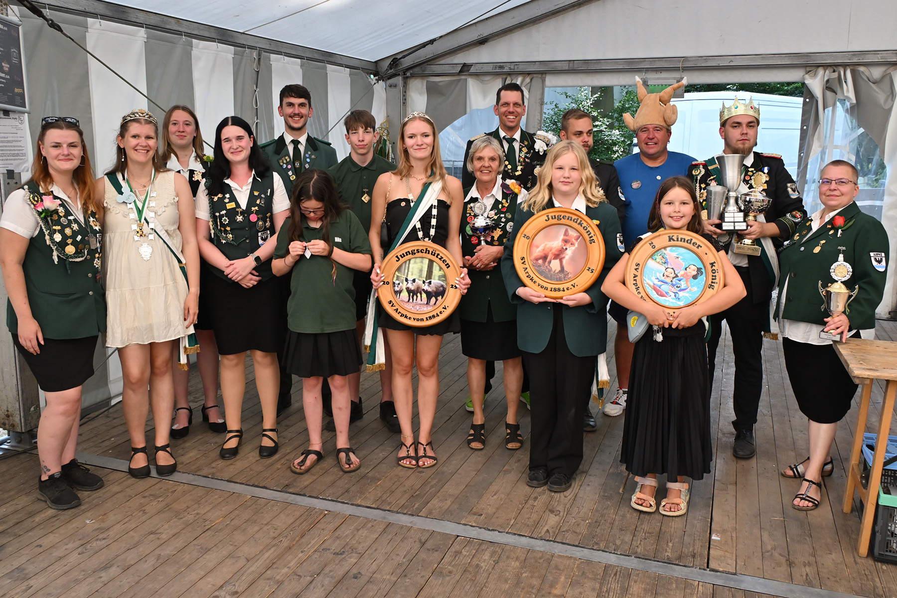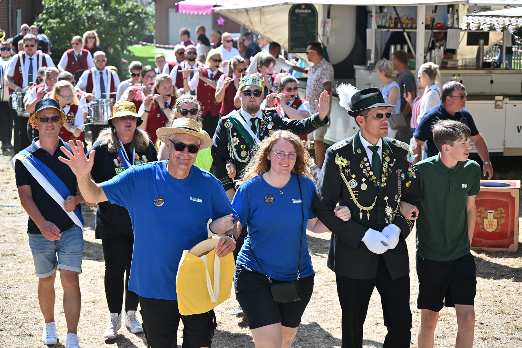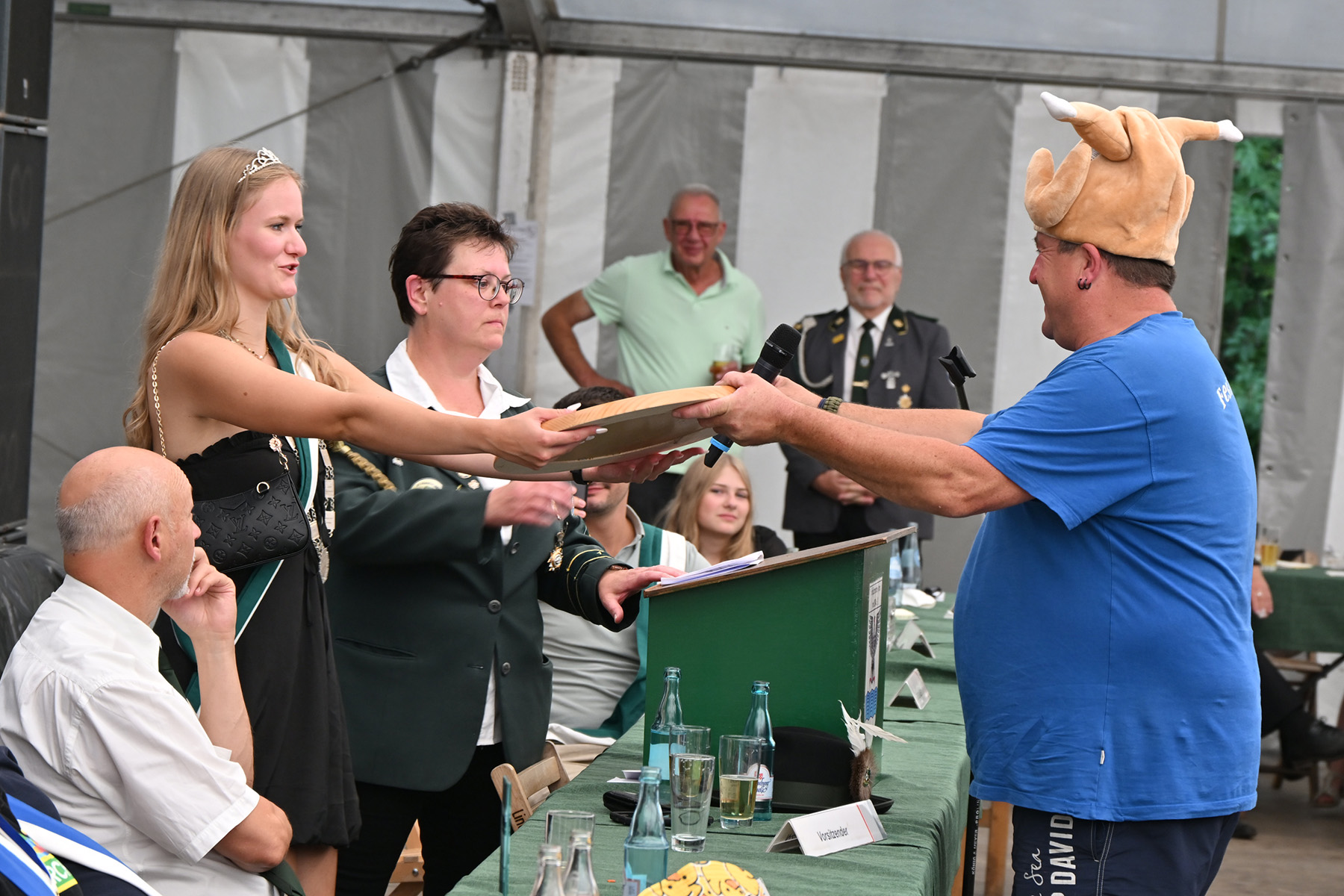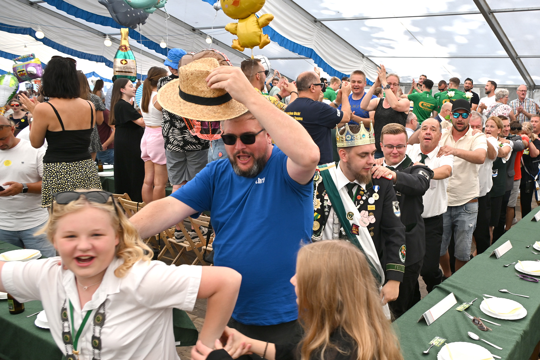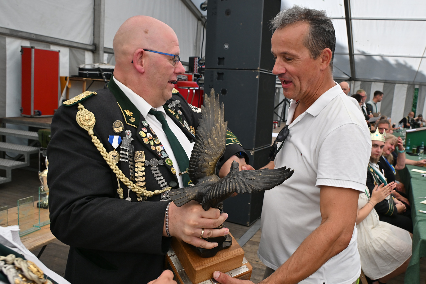 Zudem erhielten die Sieger der Schießwettbewerbe ihre Pokale überreicht. Nach rund zweieinhalb Stunden endete der offizielle Teil des Königsessens. Anschließend feierten die Arpker Schützen und ihre Gäste noch bei bestem Sommerwetter auf dem Schützenplatz weiter, ehe das Fest dann am Abend langsam ausklingen wird.