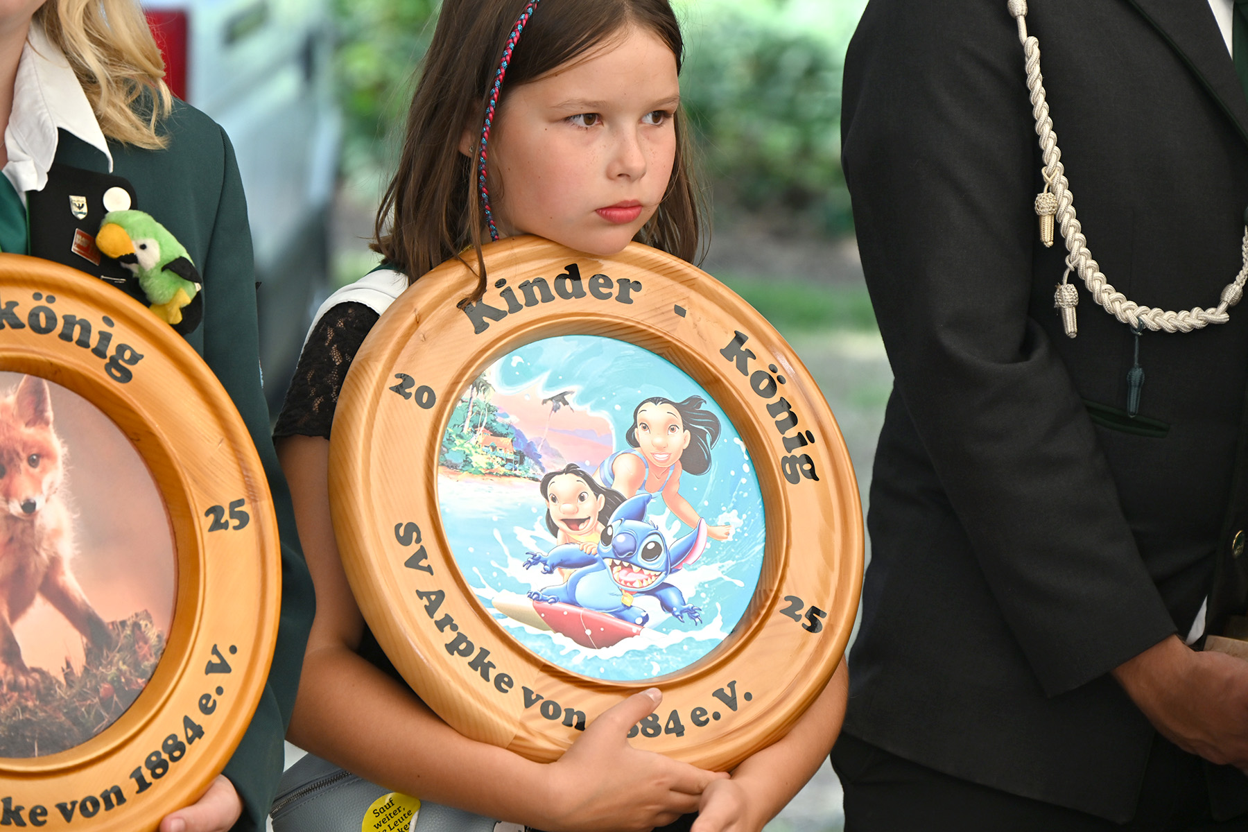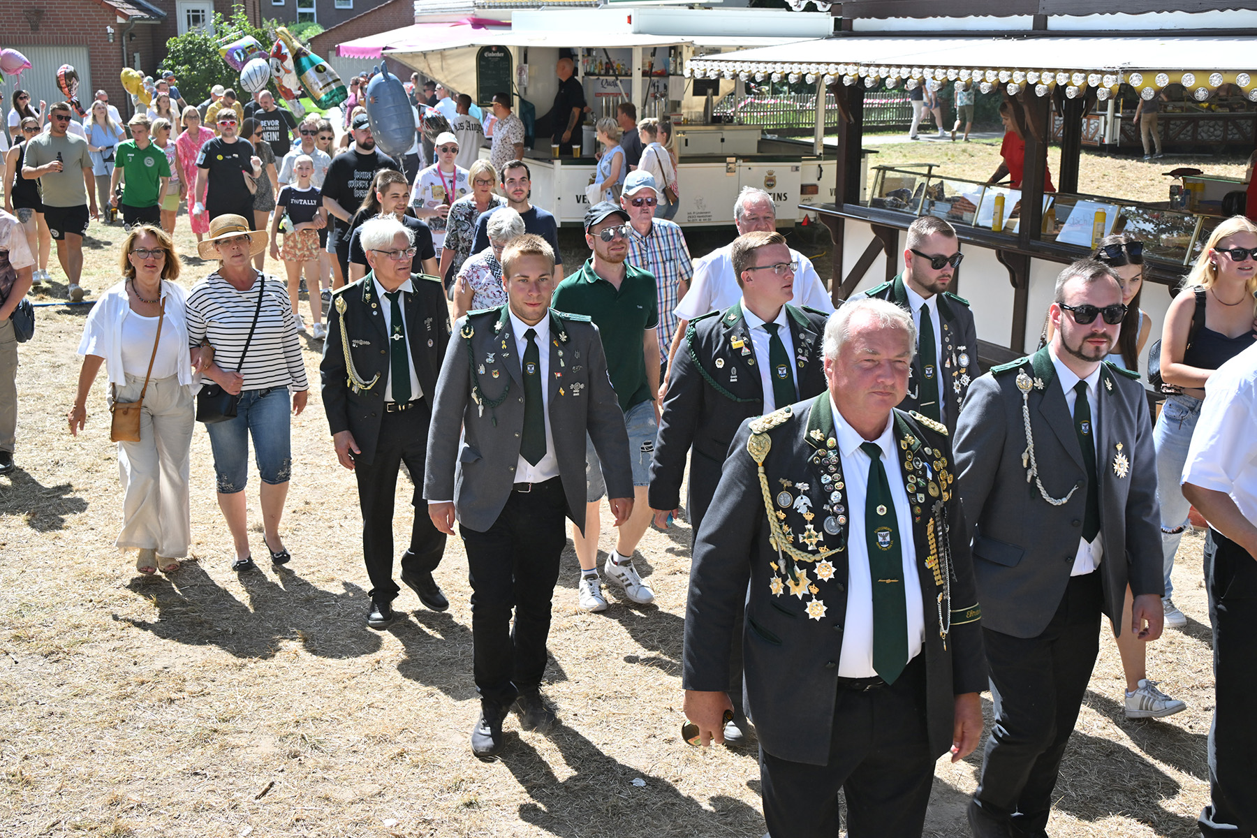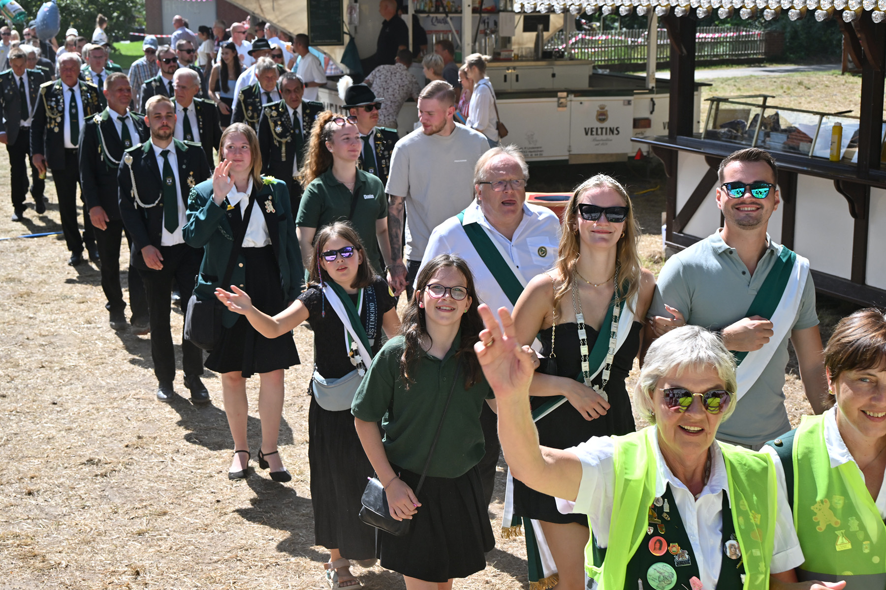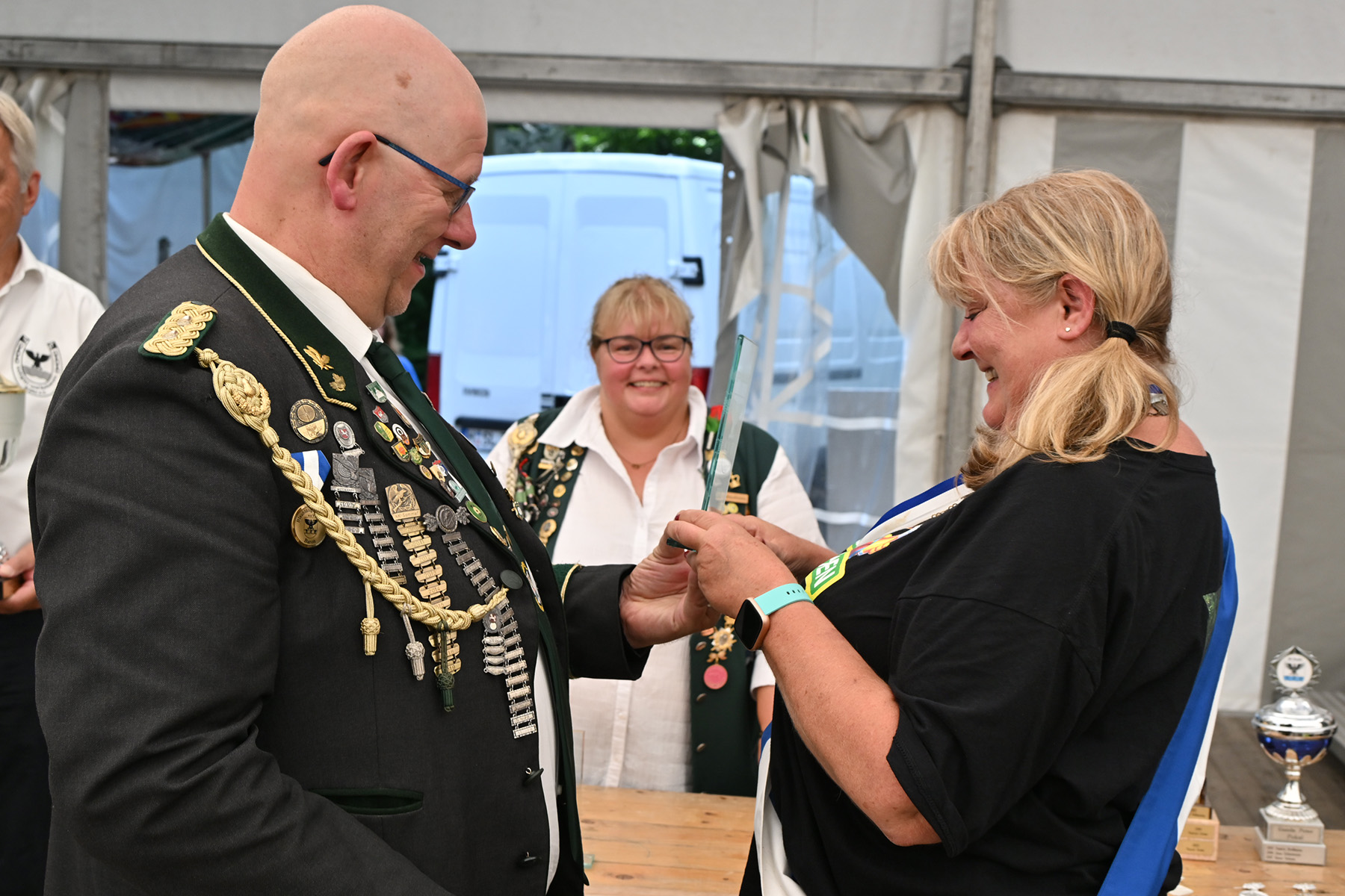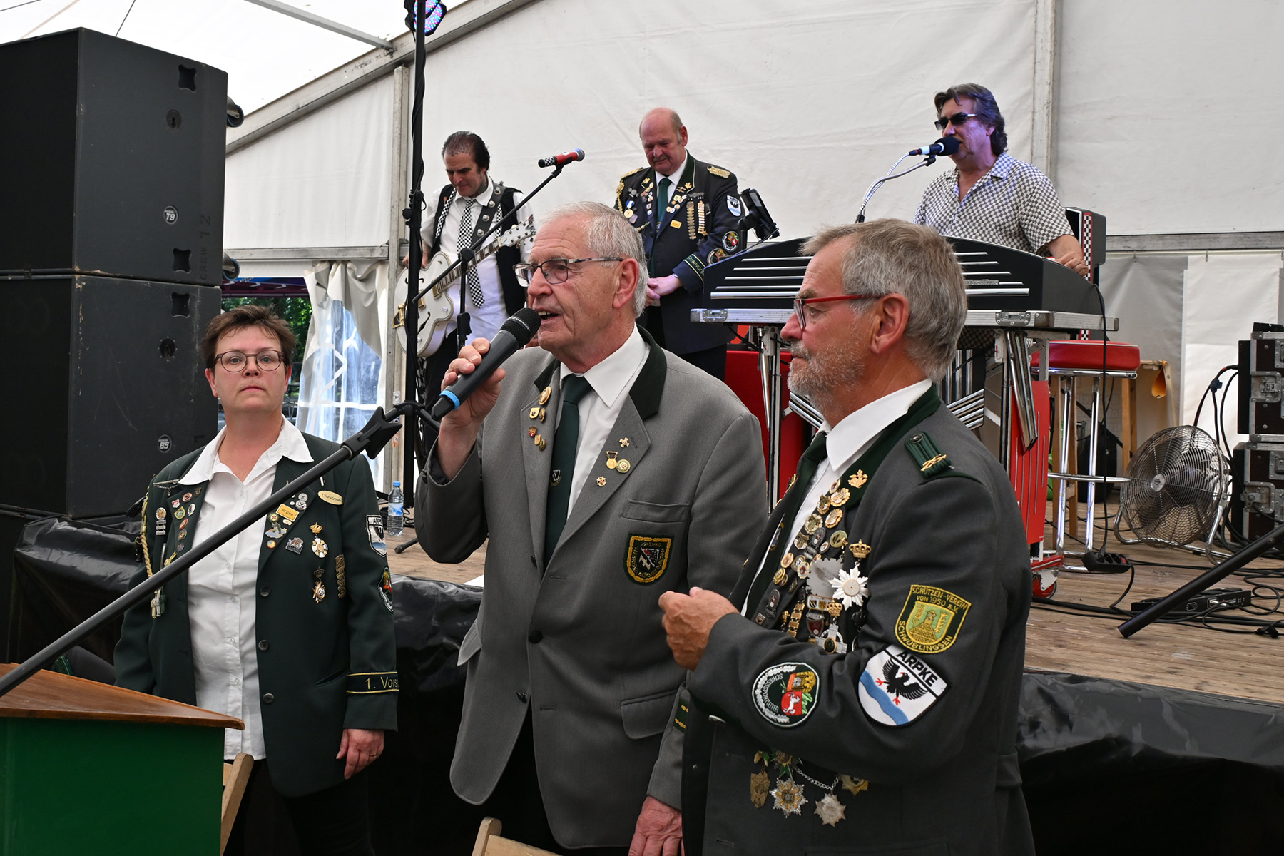 Zudem erhielten die Sieger der Schießwettbewerbe ihre Pokale überreicht. Nach rund zweieinhalb Stunden endete der offizielle Teil des Königsessens. Anschließend feierten die Arpker Schützen und ihre Gäste noch bei bestem Sommerwetter auf dem Schützenplatz weiter, ehe das Fest dann am Abend langsam ausklingen wird.