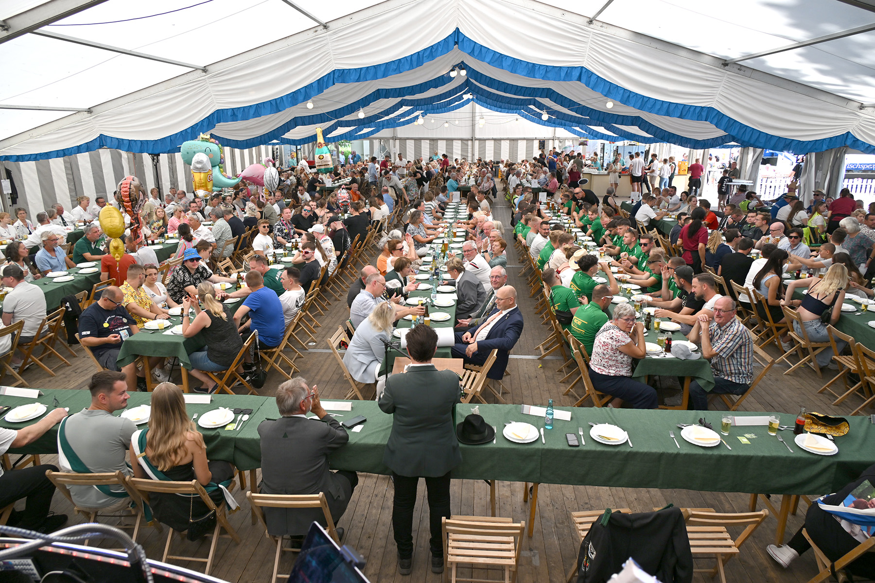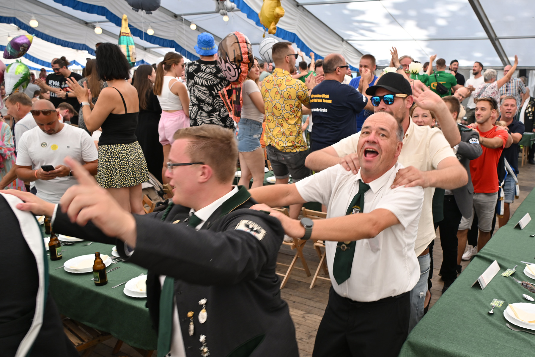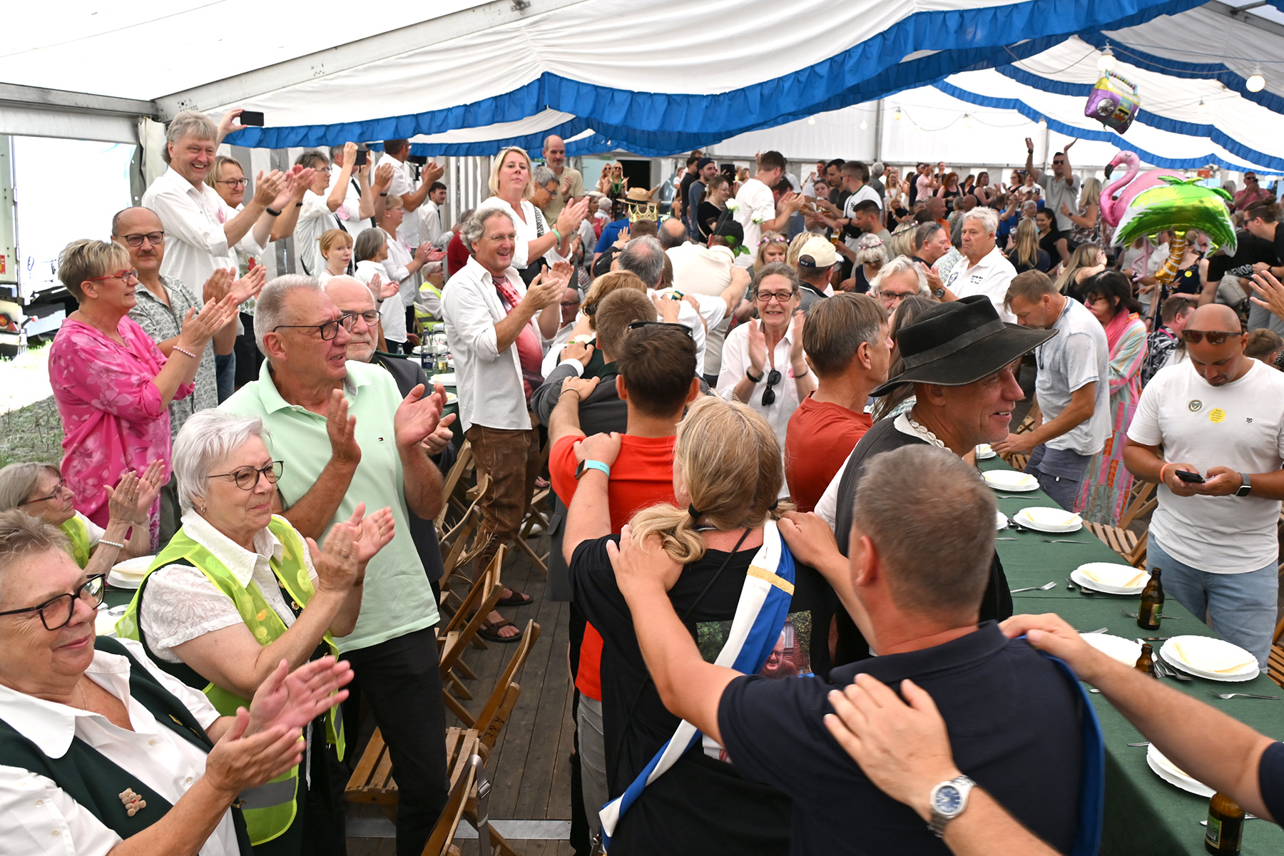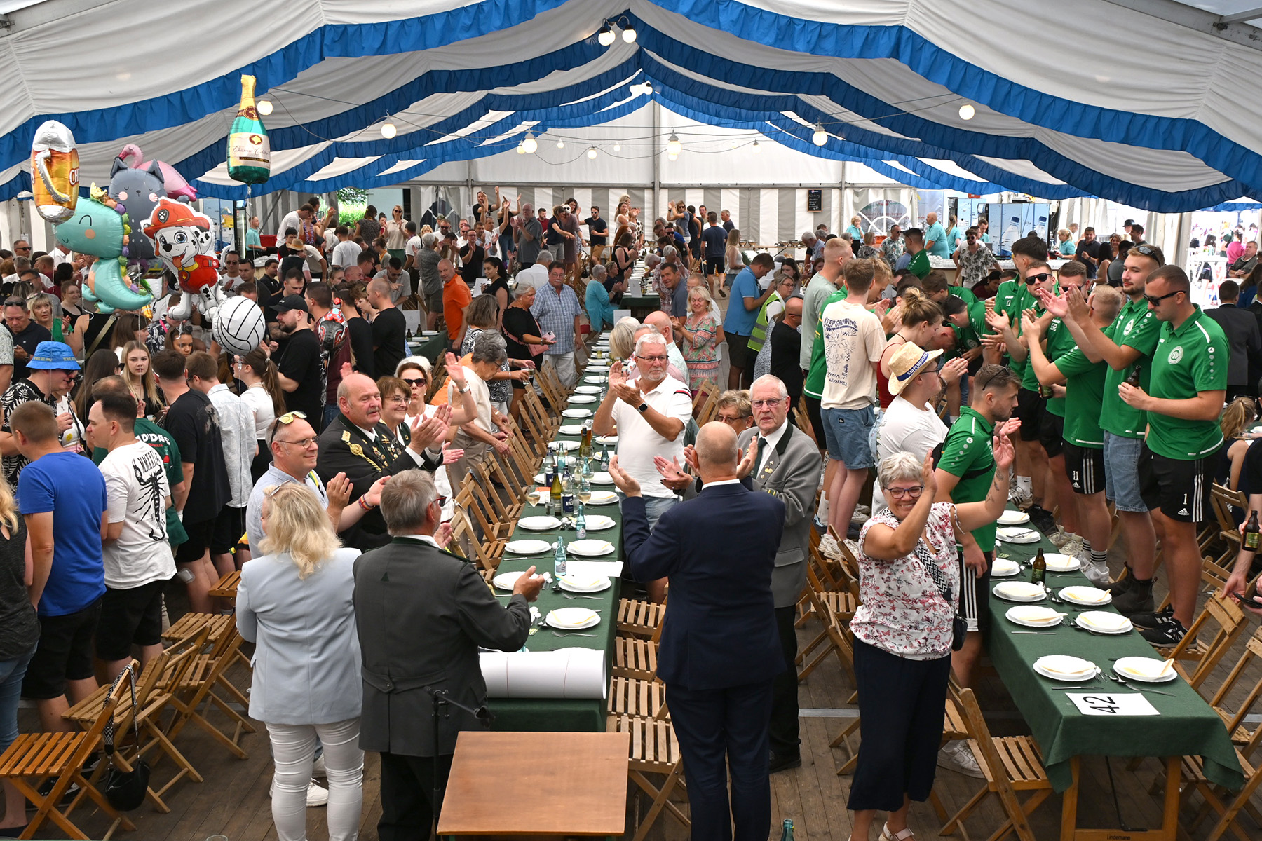 Ehe es ans Essen gehen konnte, stand jedoch schon die erste Polonaise auf dem Programm. Die Löffel wurden wieder zum laustarken Klopfen auf den Tischen genutzt und so das Zelt zum Beben gebracht.