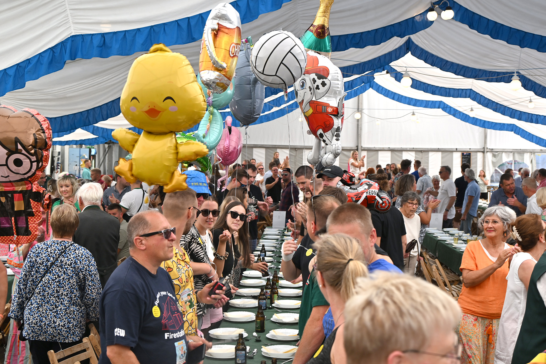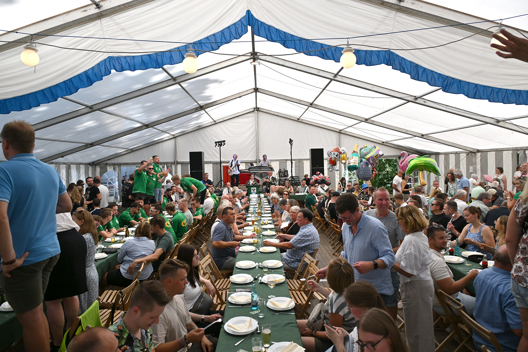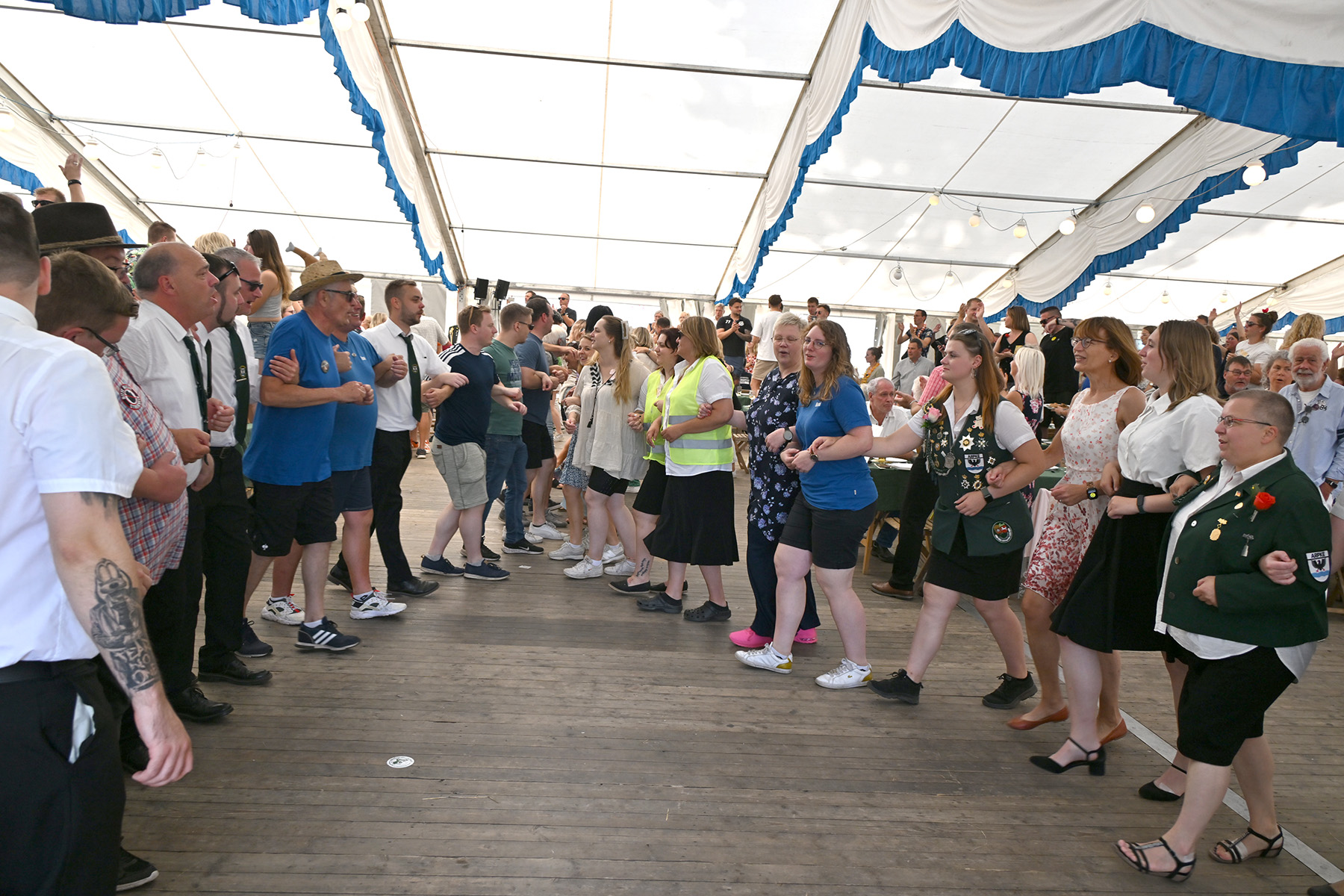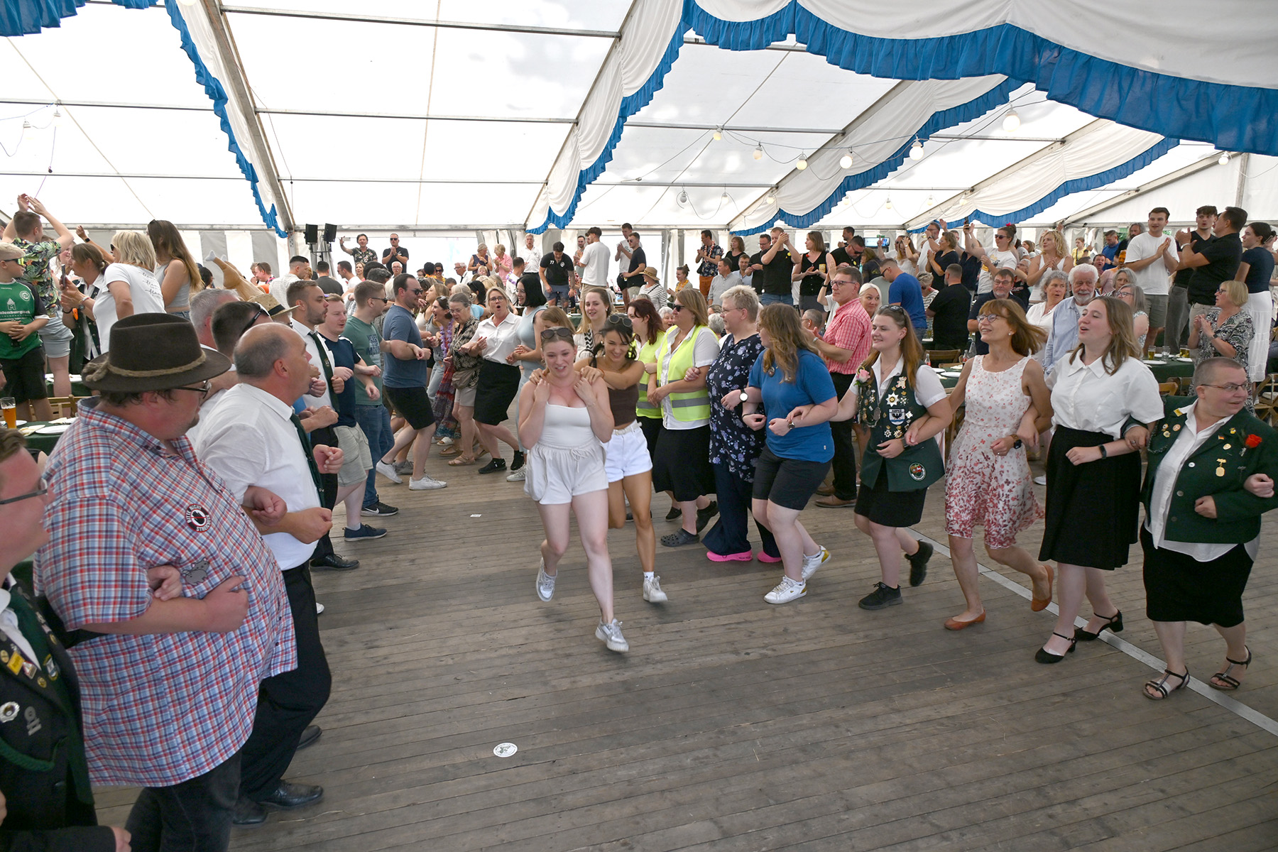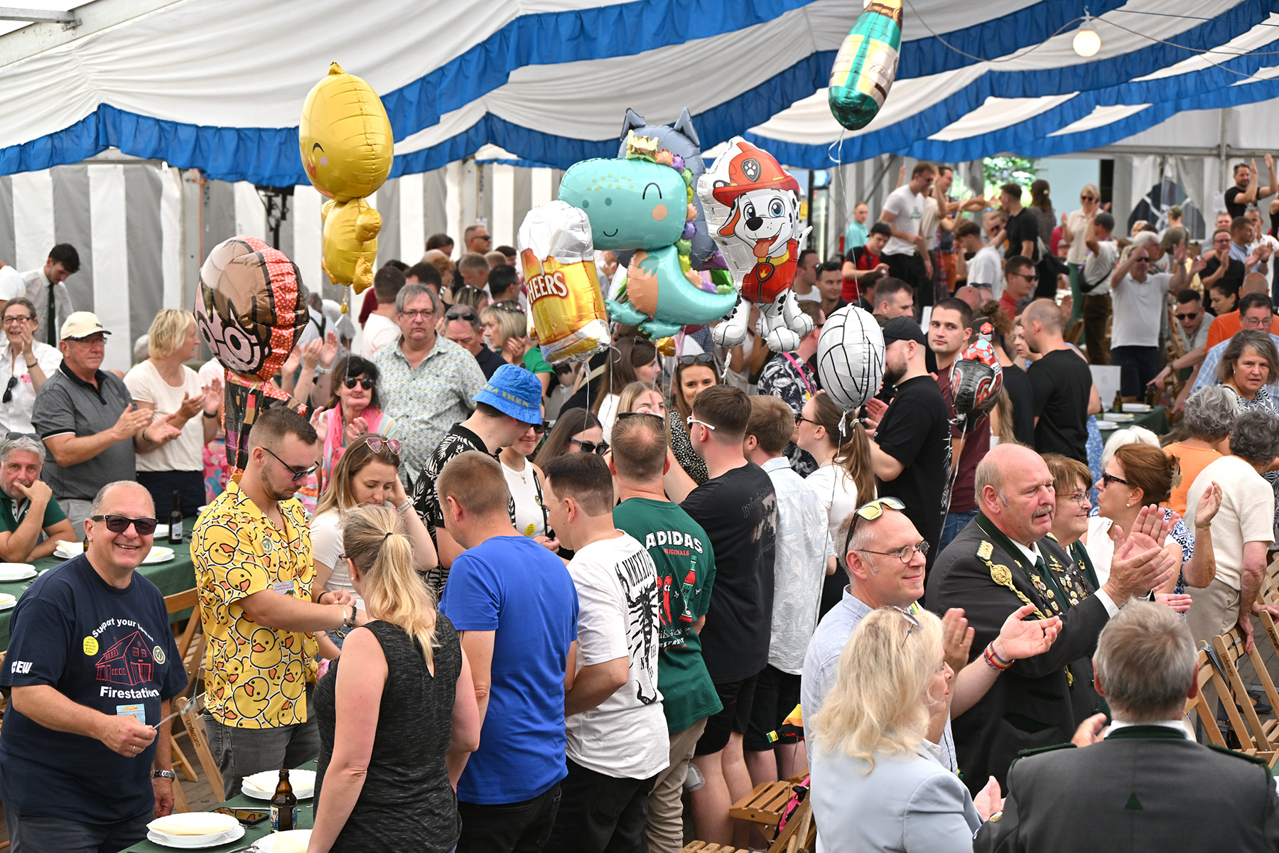 Ehe es ans Essen gehen konnte, stand jedoch schon die erste Polonaise auf dem Programm. Die Löffel wurden wieder zum laustarken Klopfen auf den Tischen genutzt und so das Zelt zum Beben gebracht.