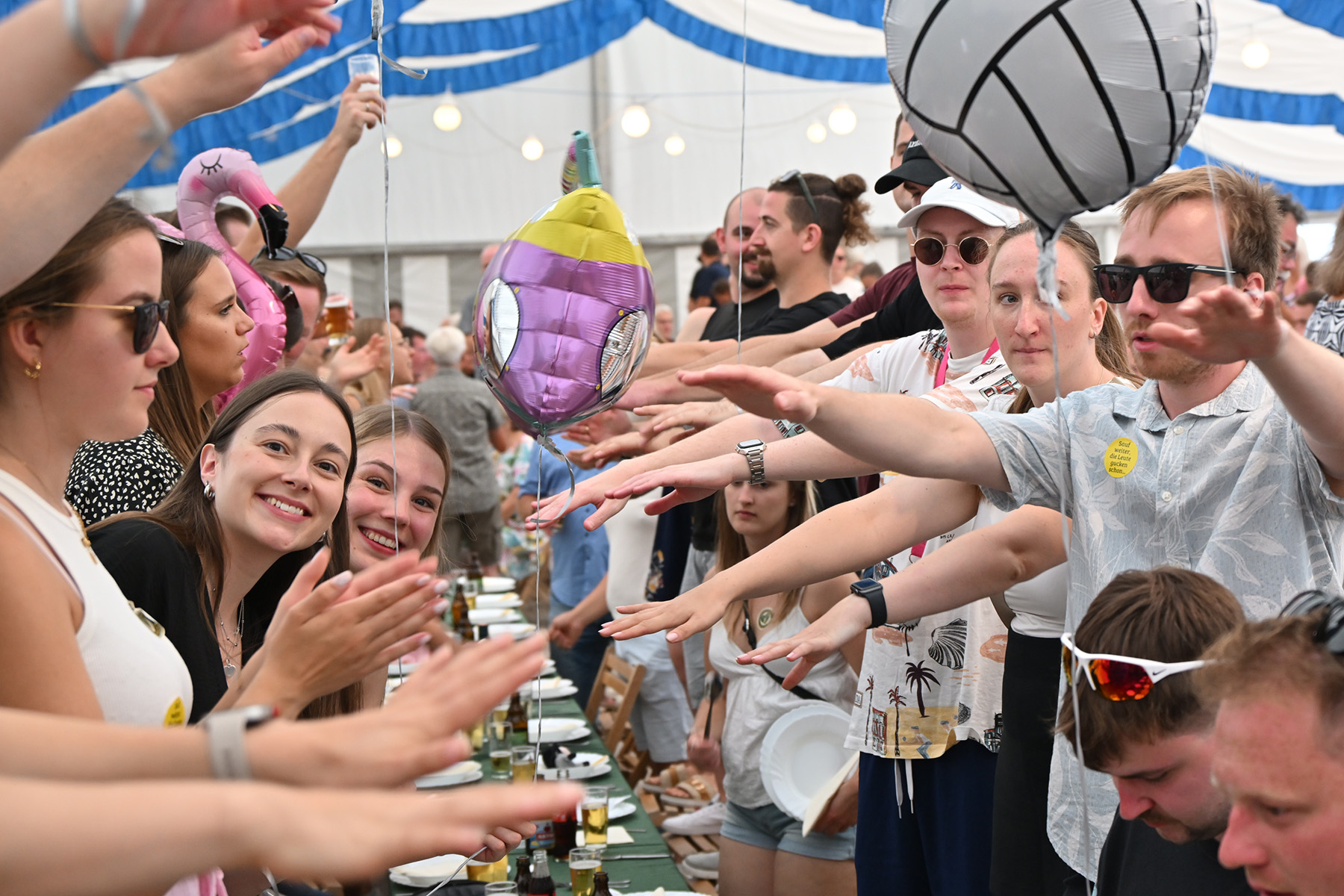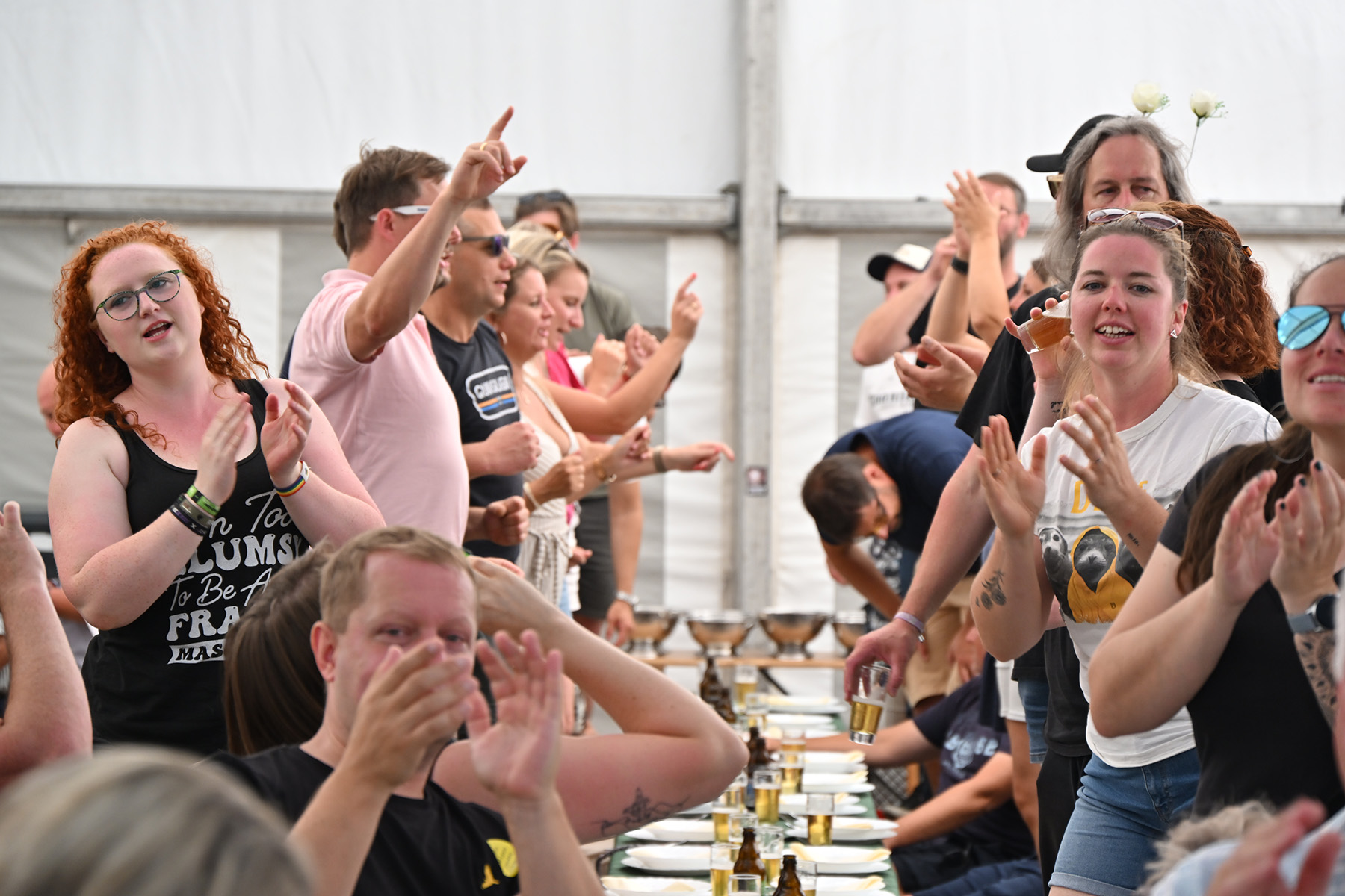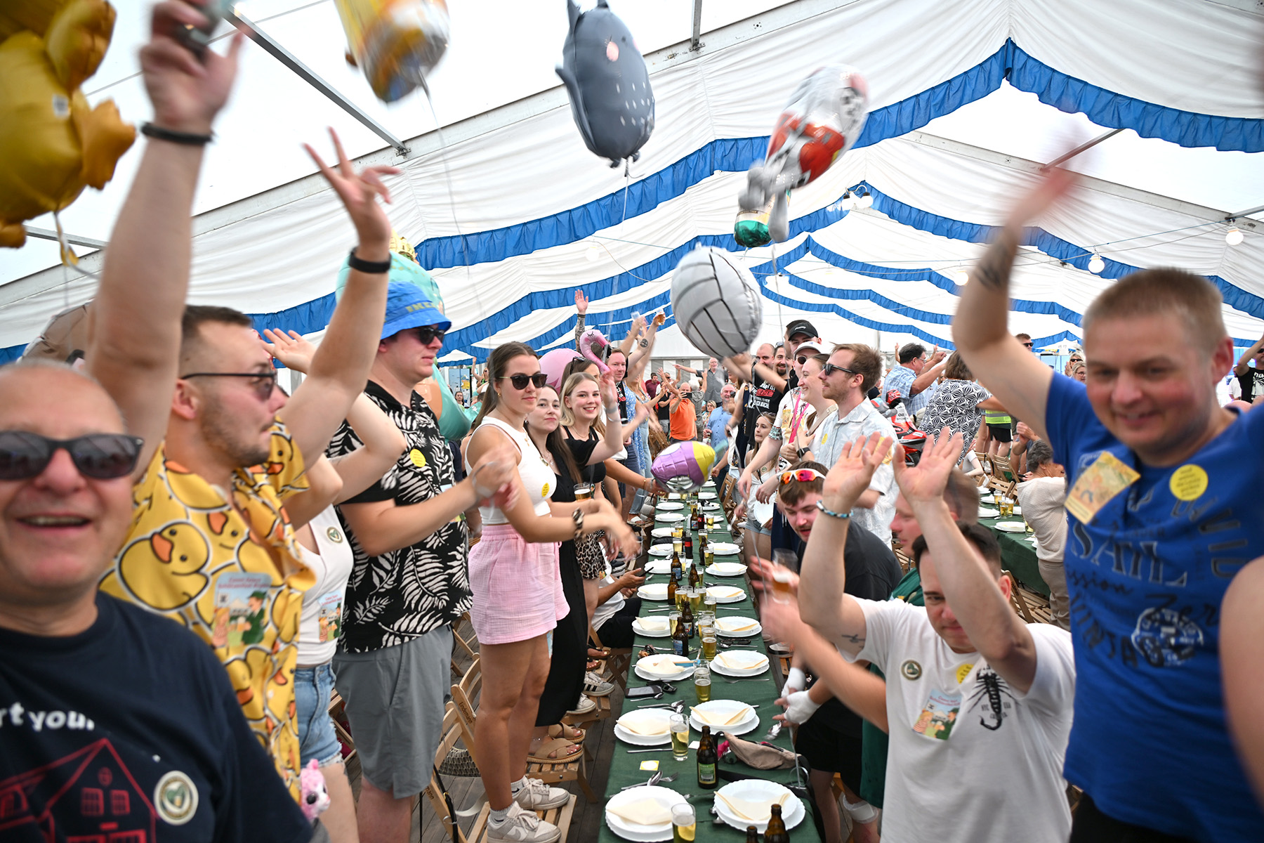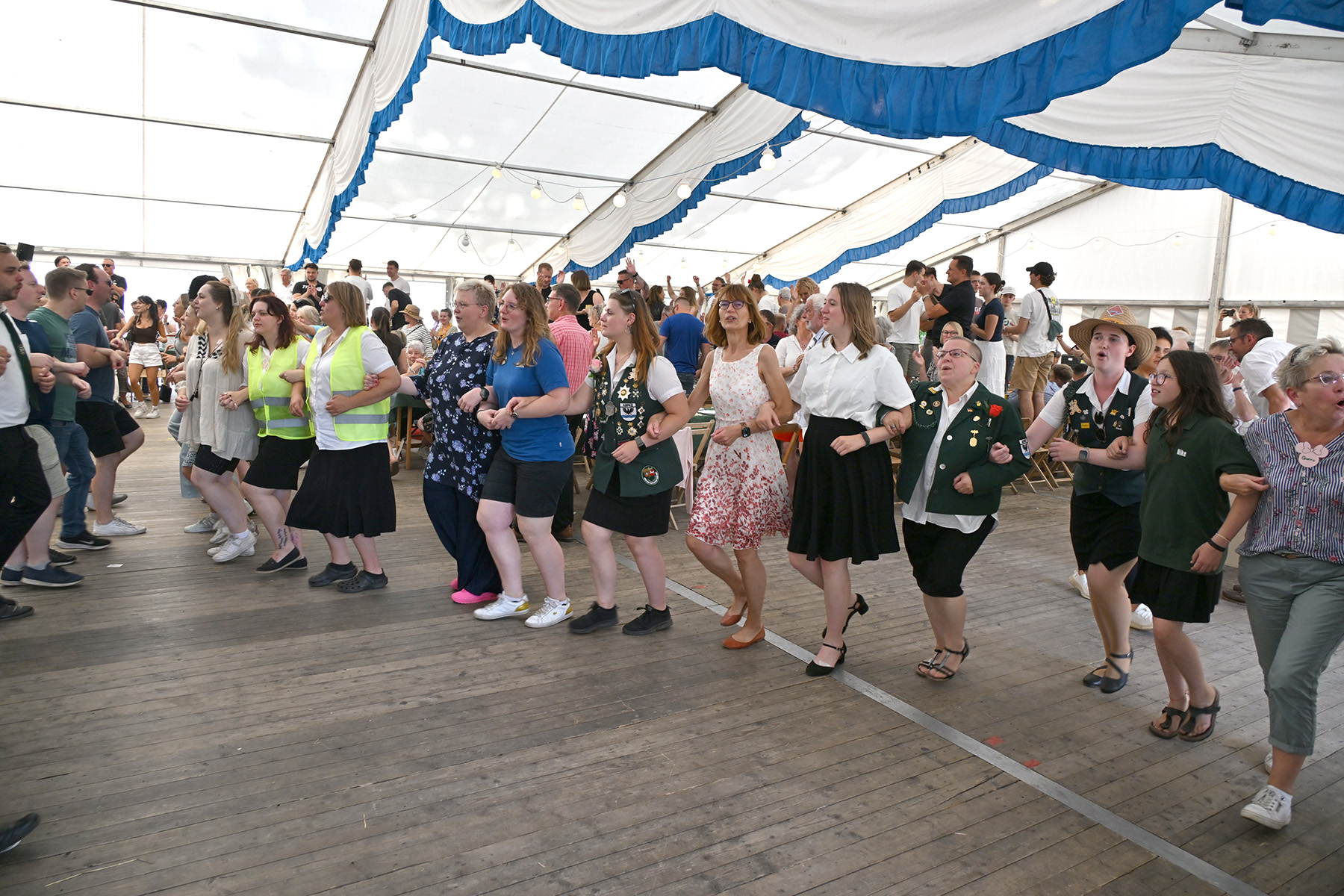 Ehe es ans Essen gehen konnte, stand jedoch schon die erste Polonaise auf dem Programm. Die Löffel wurden wieder zum laustarken Klopfen auf den Tischen genutzt und so das Zelt zum Beben gebracht.