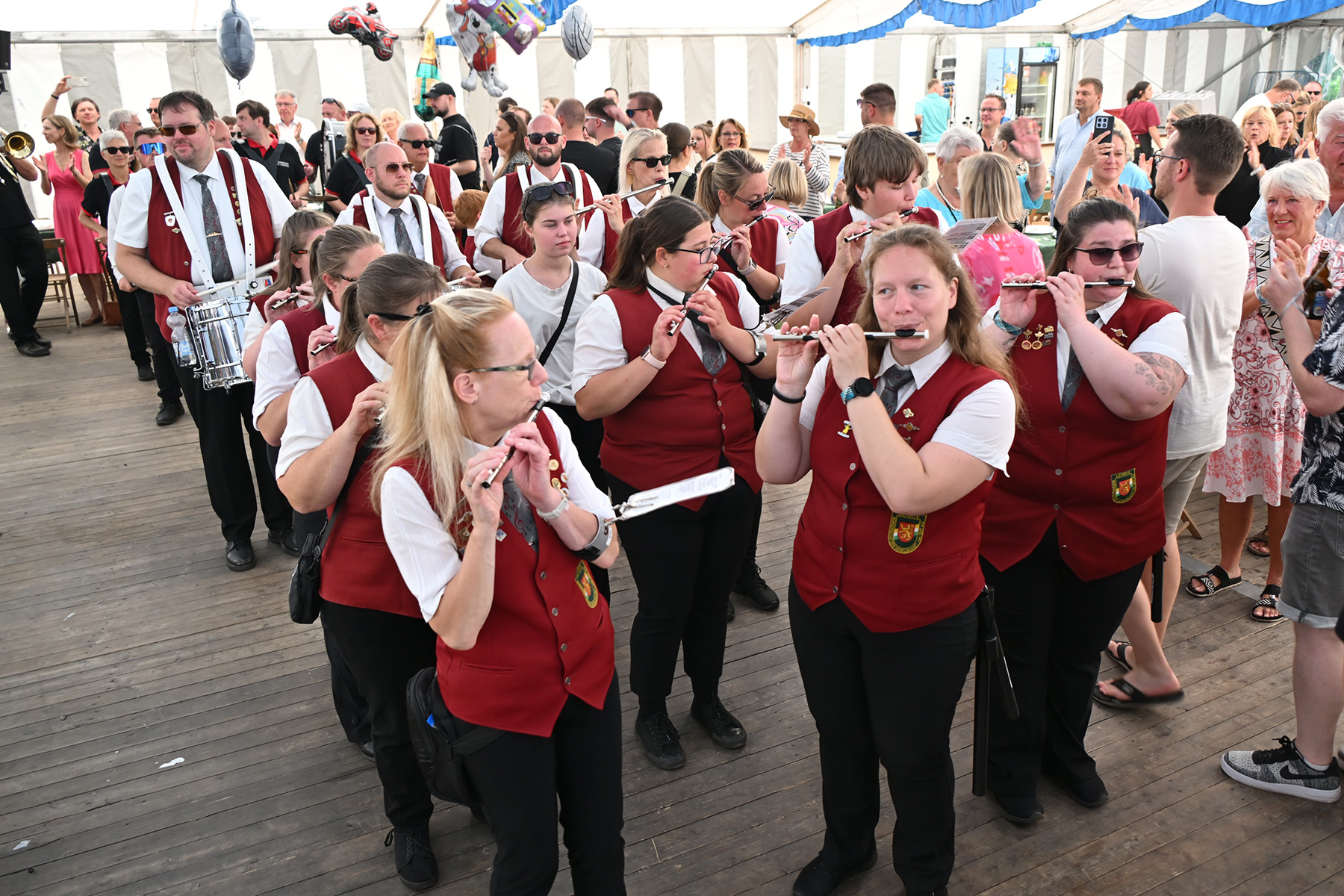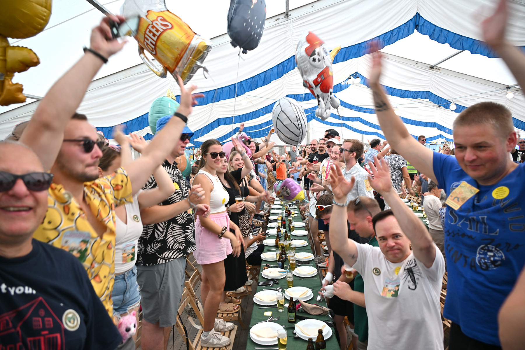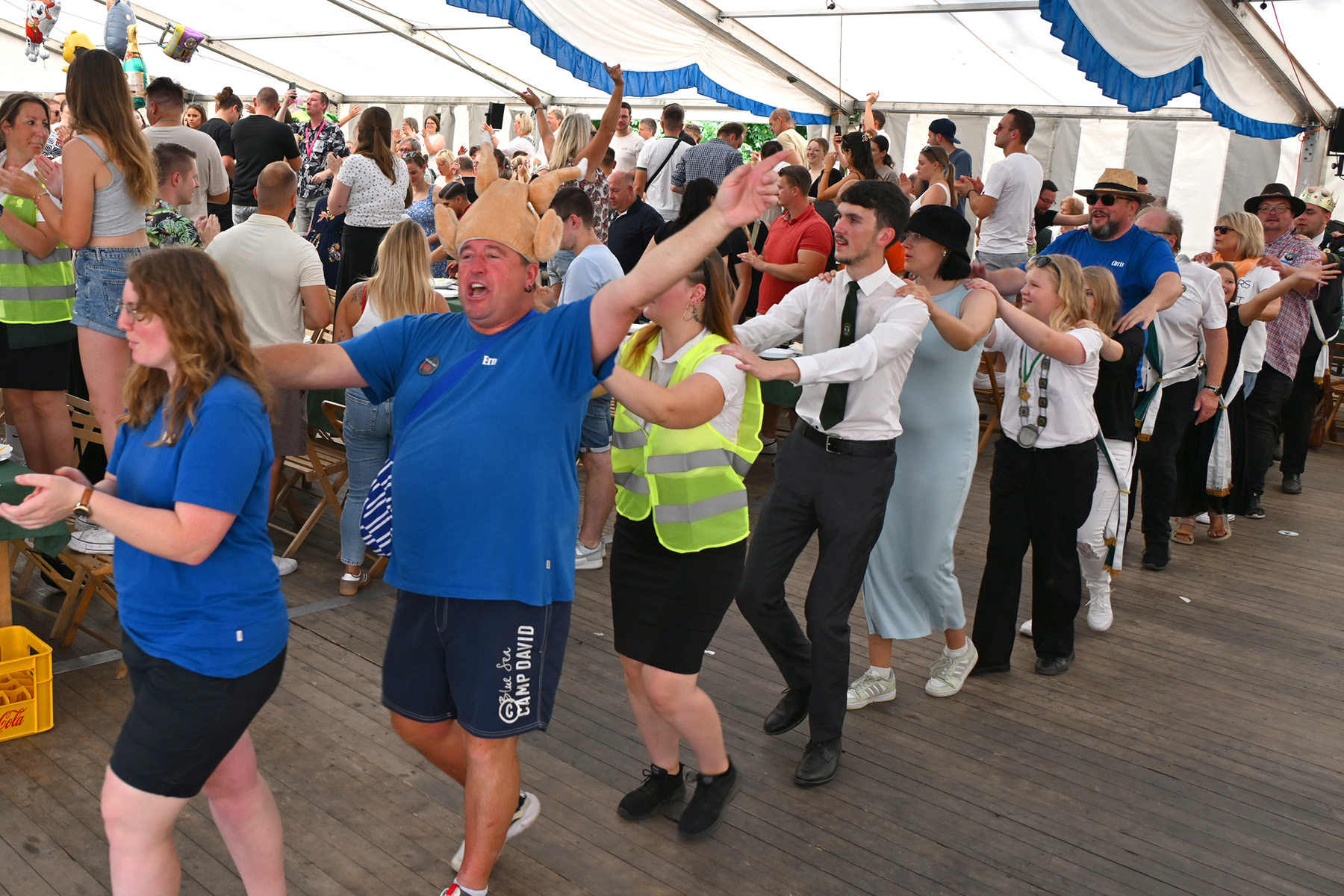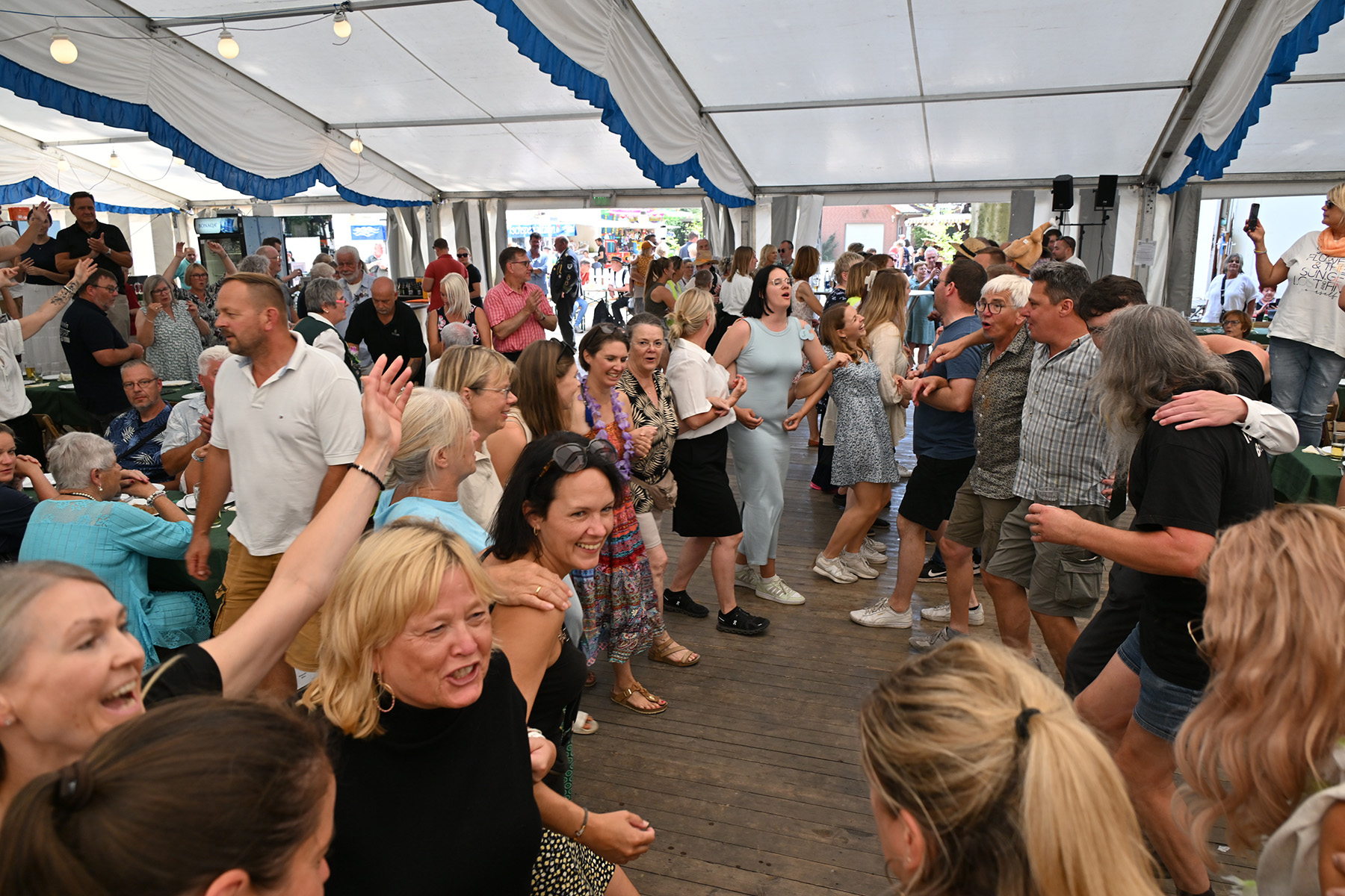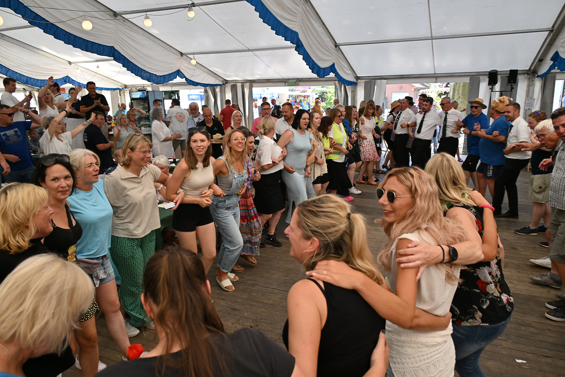 Ehe es ans Essen gehen konnte, stand jedoch schon die erste Polonaise auf dem Programm. Die Löffel wurden wieder zum laustarken Klopfen auf den Tischen genutzt und so das Zelt zum Beben gebracht.