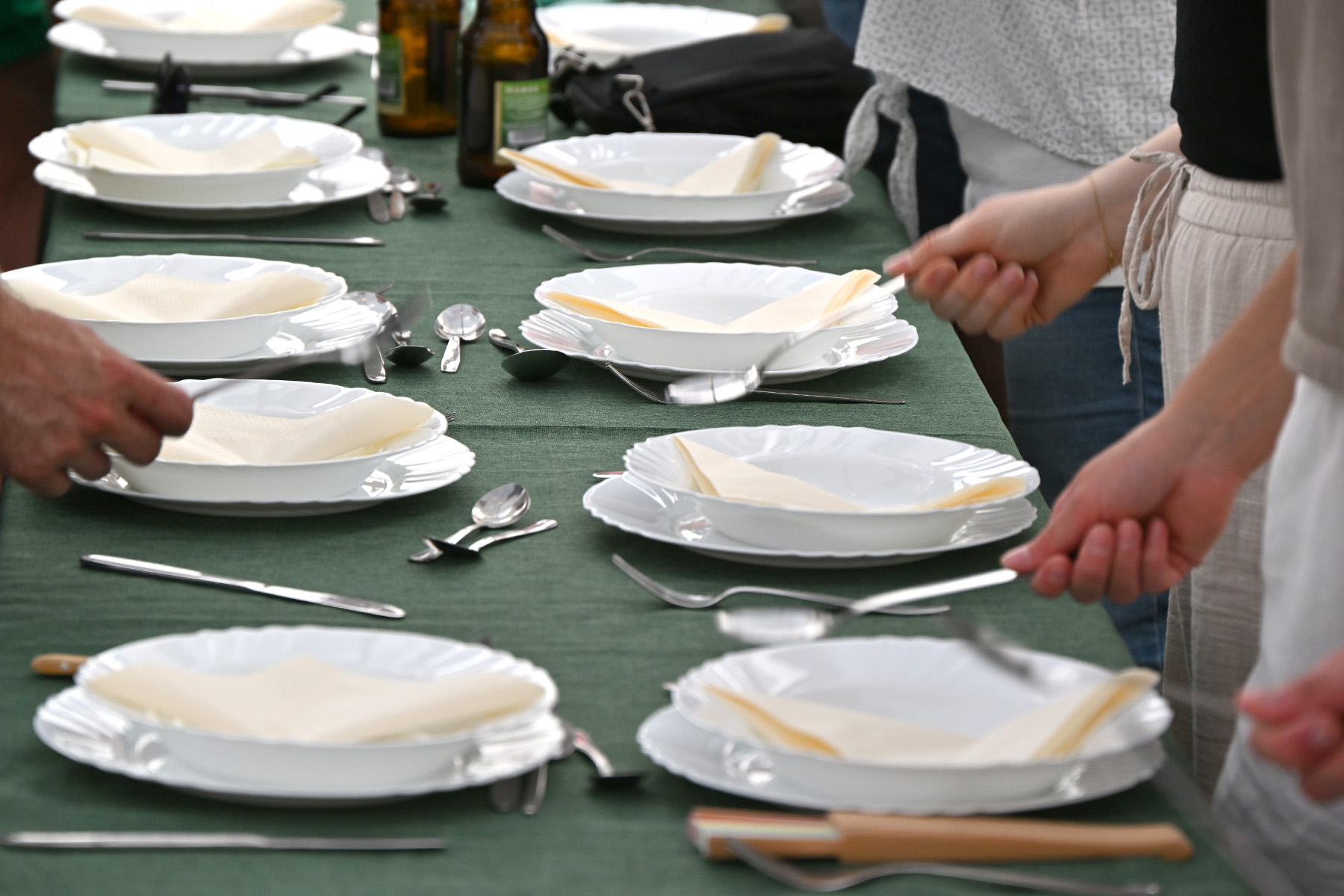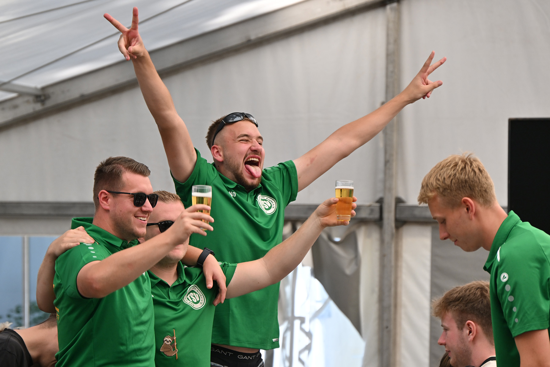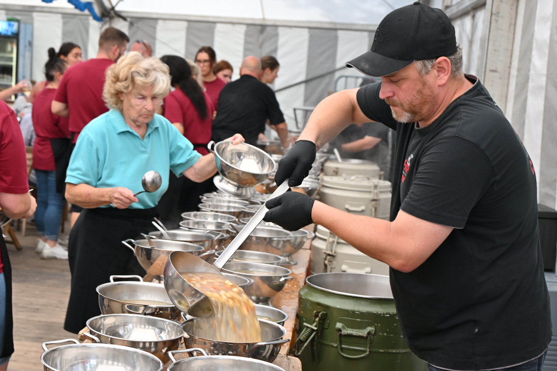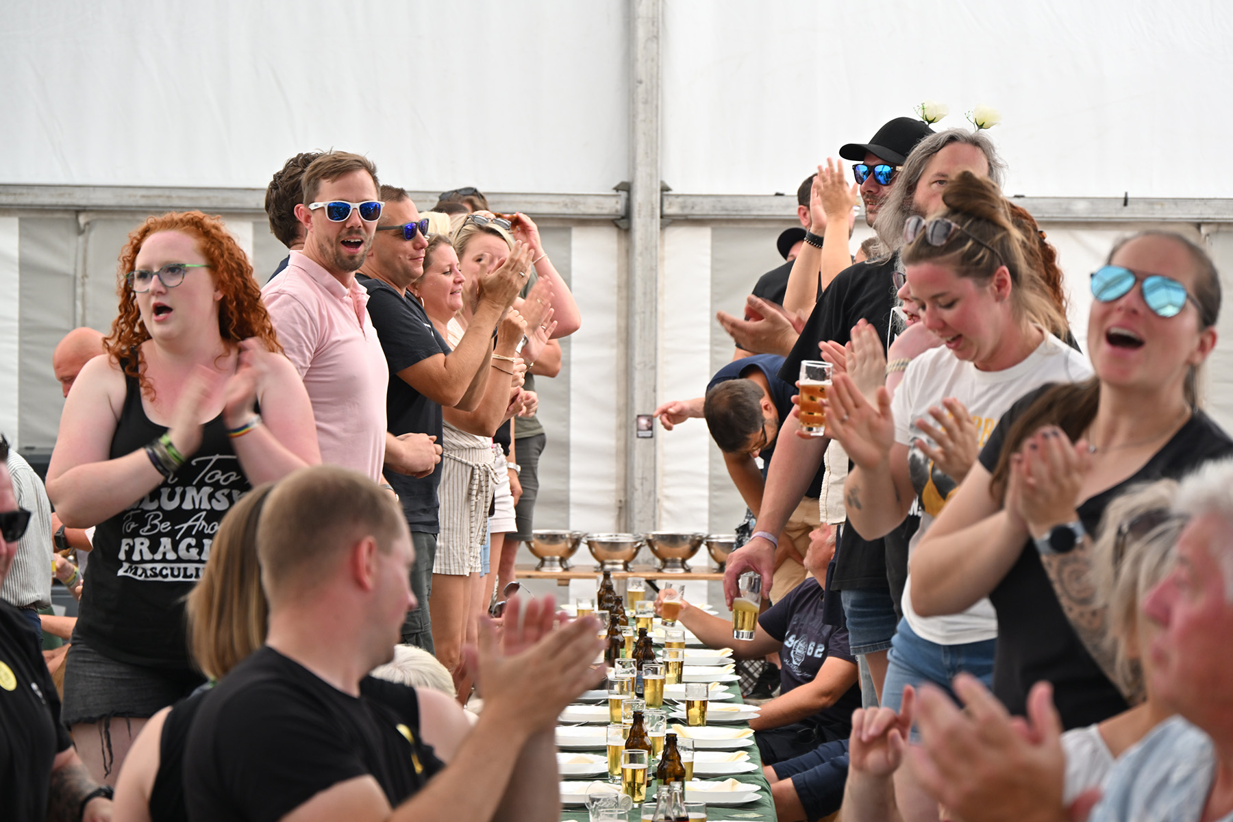 Ehe es ans Essen gehen konnte, stand jedoch schon die erste Polonaise auf dem Programm. Die Löffel wurden wieder zum laustarken Klopfen auf den Tischen genutzt und so das Zelt zum Beben gebracht.