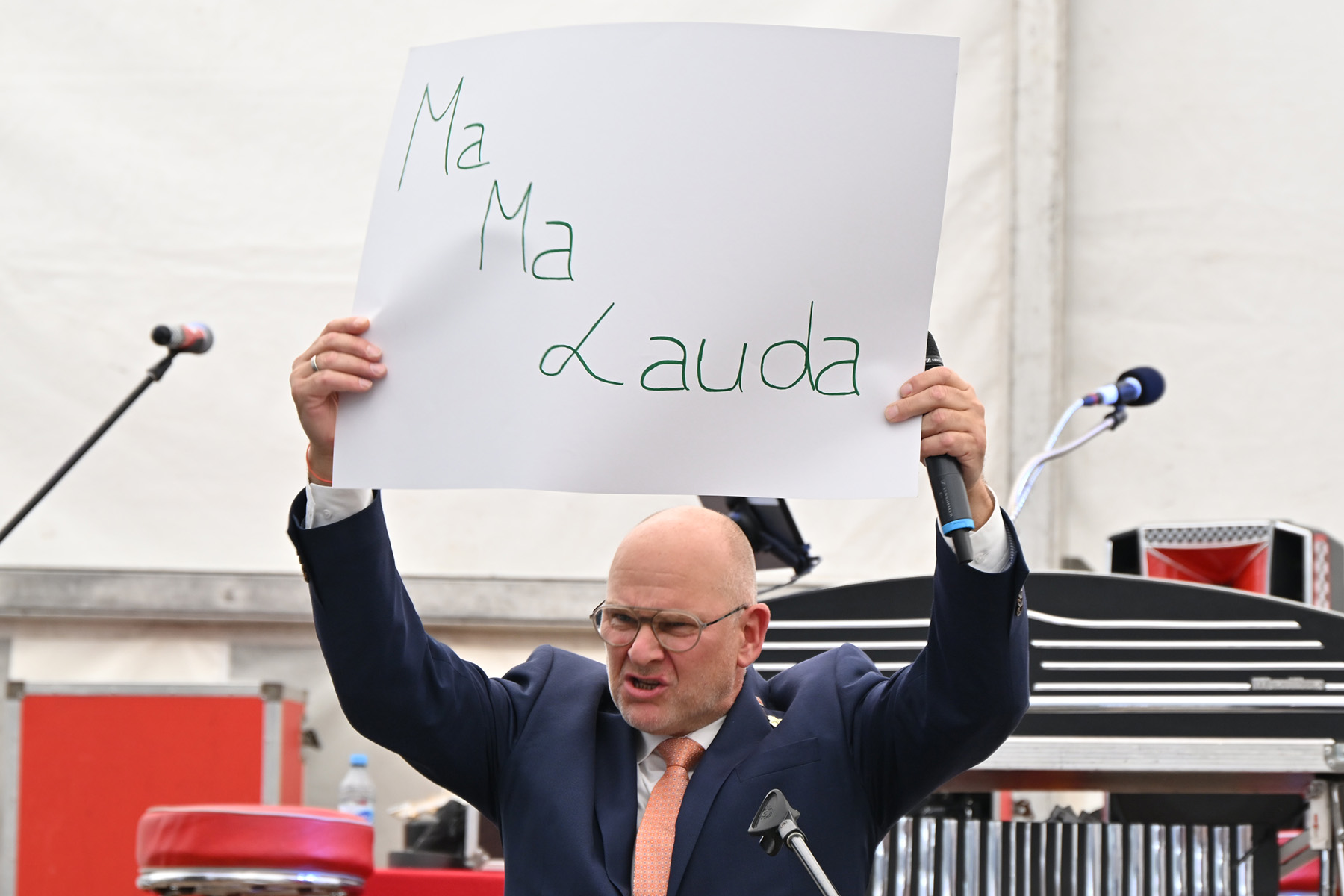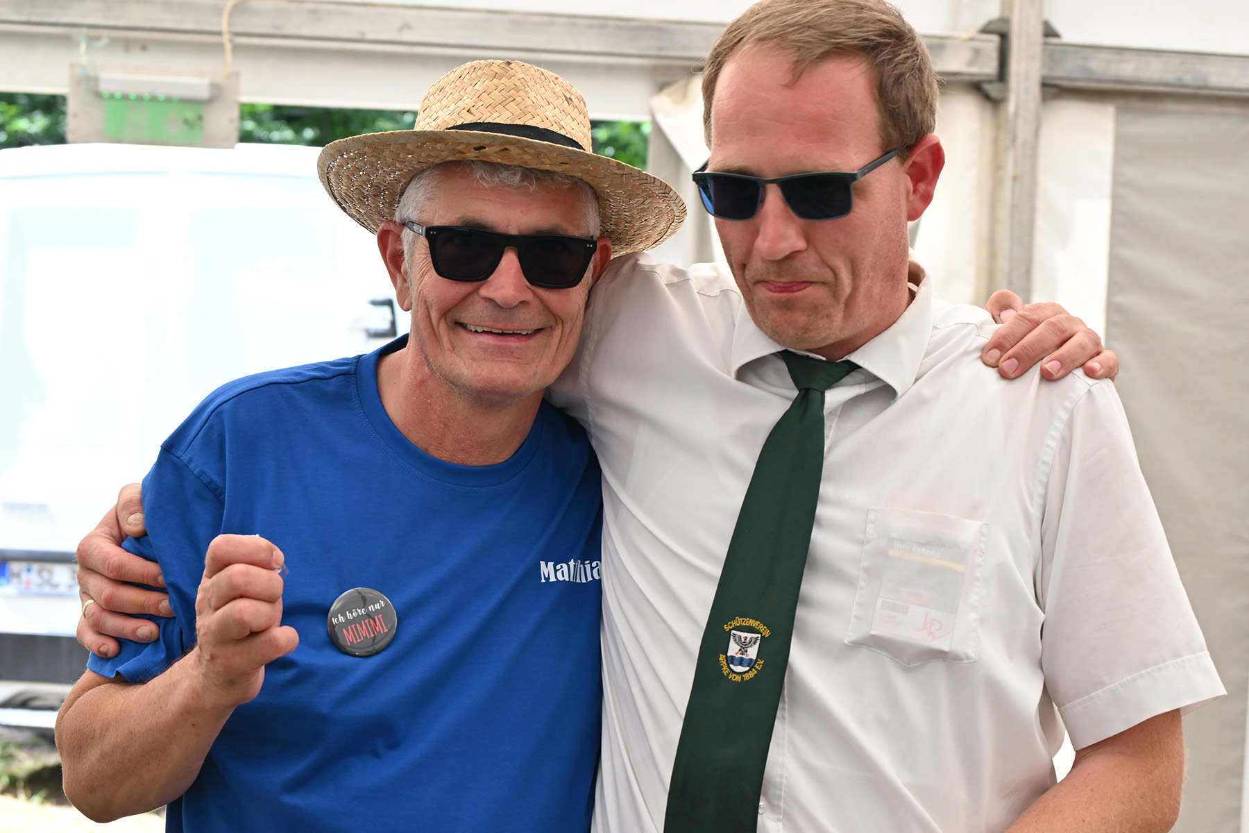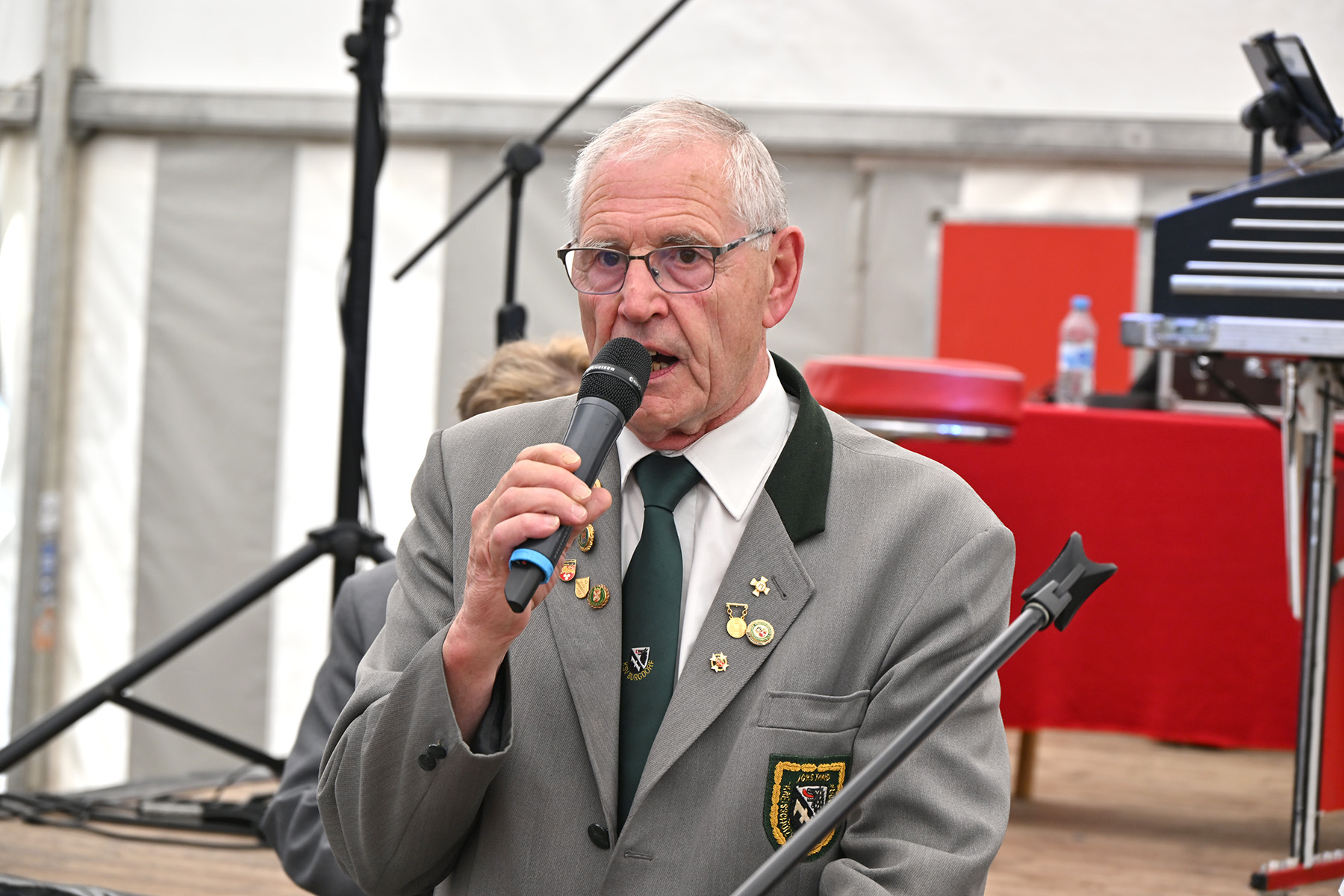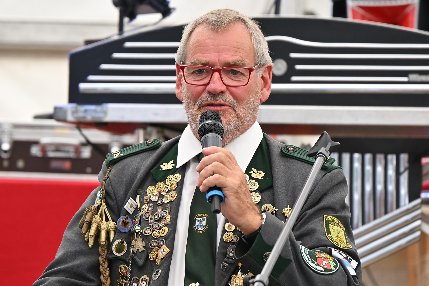 Unter den Gästen begrüßte Susanne Sieg unter anderem Lehrtes Bürgermeister Frank Prüße wie auch Ortsbürgermeister Klaus Schulz. Nach dem Applaus zu urteilen, hat der Ortsbürgermeister seinen Laden im Griff, während Prüße doch ein paar Buhrufe entgegenschallten, die er jedoch gekonnt retournierte. Seine angekündigte 25-minütige Rede mit PowerPoint-Präsentation fiel dann unverhofft sehr kurz aus. Statt Worten ließ er große beschriftete Zettel für sich sprechen. Er wie auch Ortsbürgermeister Klaus Schulz sprachen dem Schützenverein und den vielen Helfern, die das Fest auf die Beine gestellt haben, ihren ganz besonderen Dank aus.