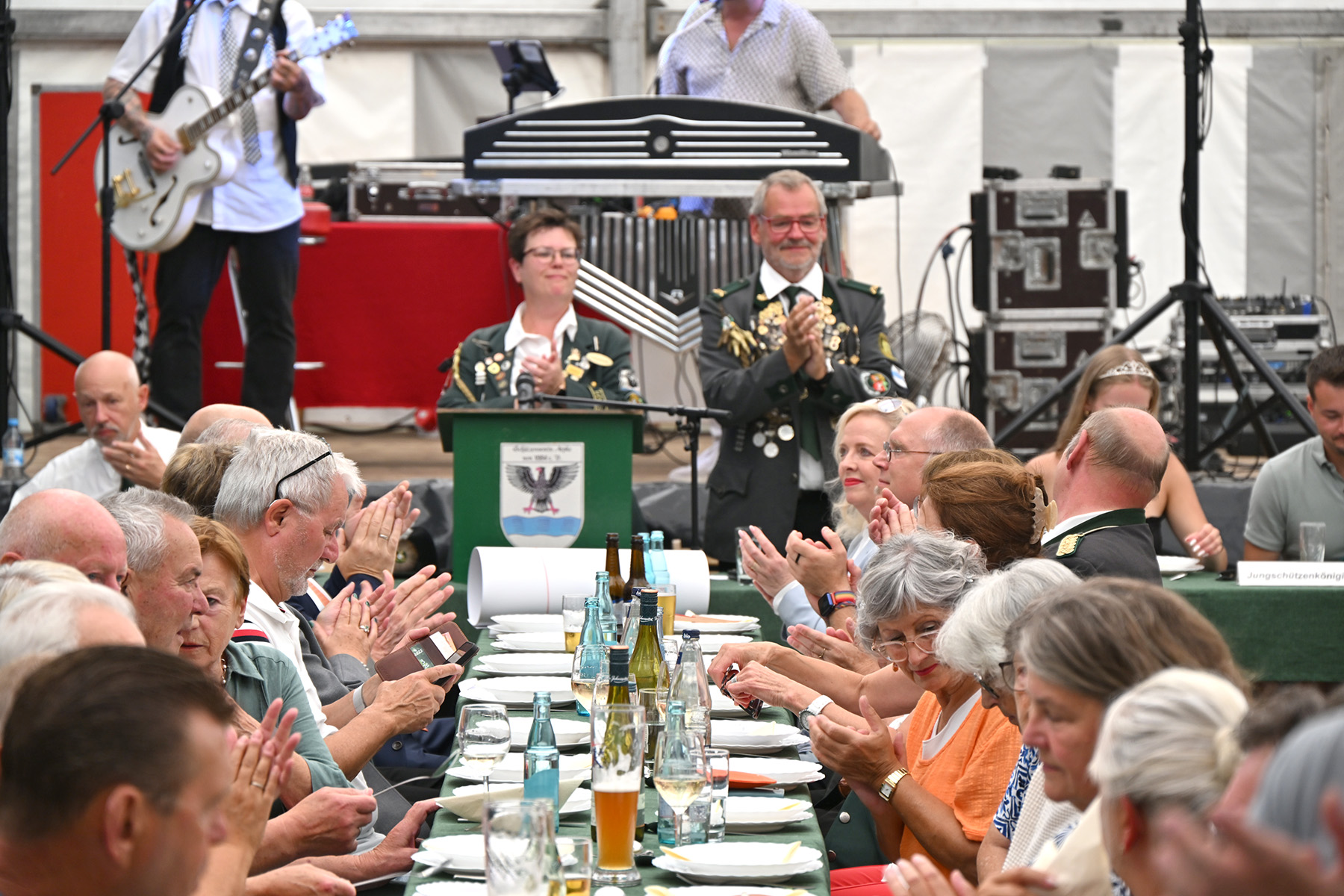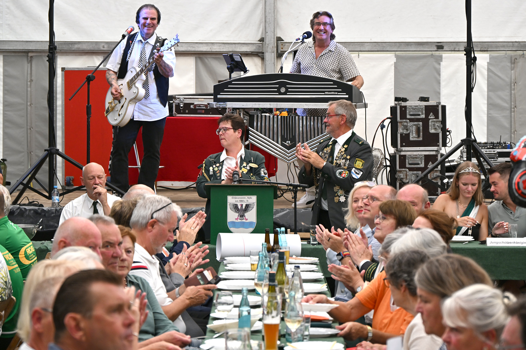 Es ist das Highlight des Schützenfestwochenendes in Arpke: das Königsessen, bei dem die 1. Vorsitzende des Schützenvereins Arpke, Susanne Sieg, wieder einmal 500 Gäste begrüßen konnte. Beim Königsessen anlässlich des Volks- und Schützenfestes, musikalisch begleitet vom Shadow Light Duo, flossen aber auch Tränen. So viel sei vorweg zu sagen: nicht vor Traurigkeit, sondern vor Rührung.