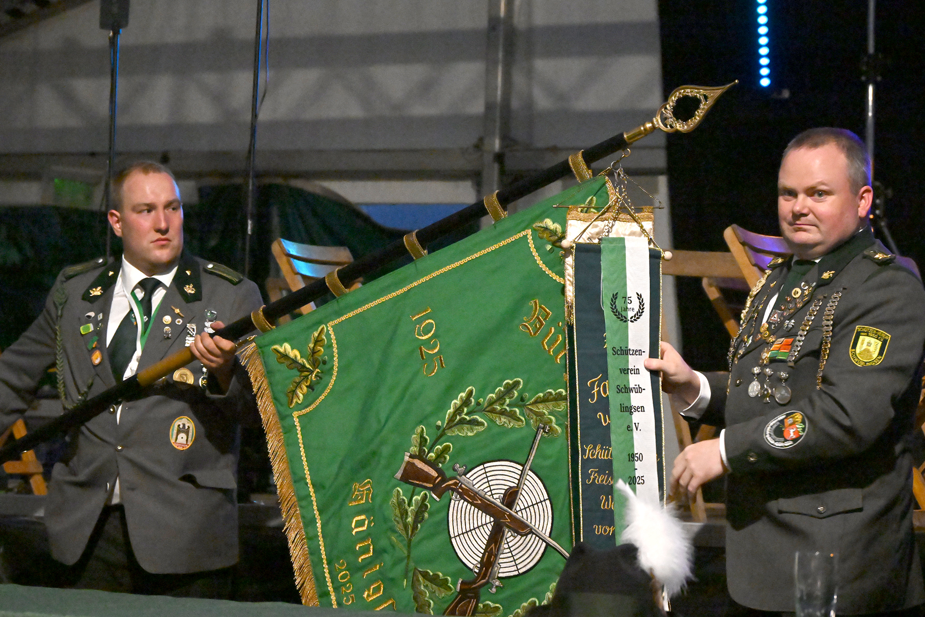 Auch erhielt die Fahne des BSV nun das Jubiläums-Fahnenband vom Schützenverein Schwüblingsen, der in diesem Jahr sein 75-jähriges Bestehen feiert. Die Fahre des BSV war zum Zeitpunkt des Schwüblingser Schützenfestes noch in der Restauration.
