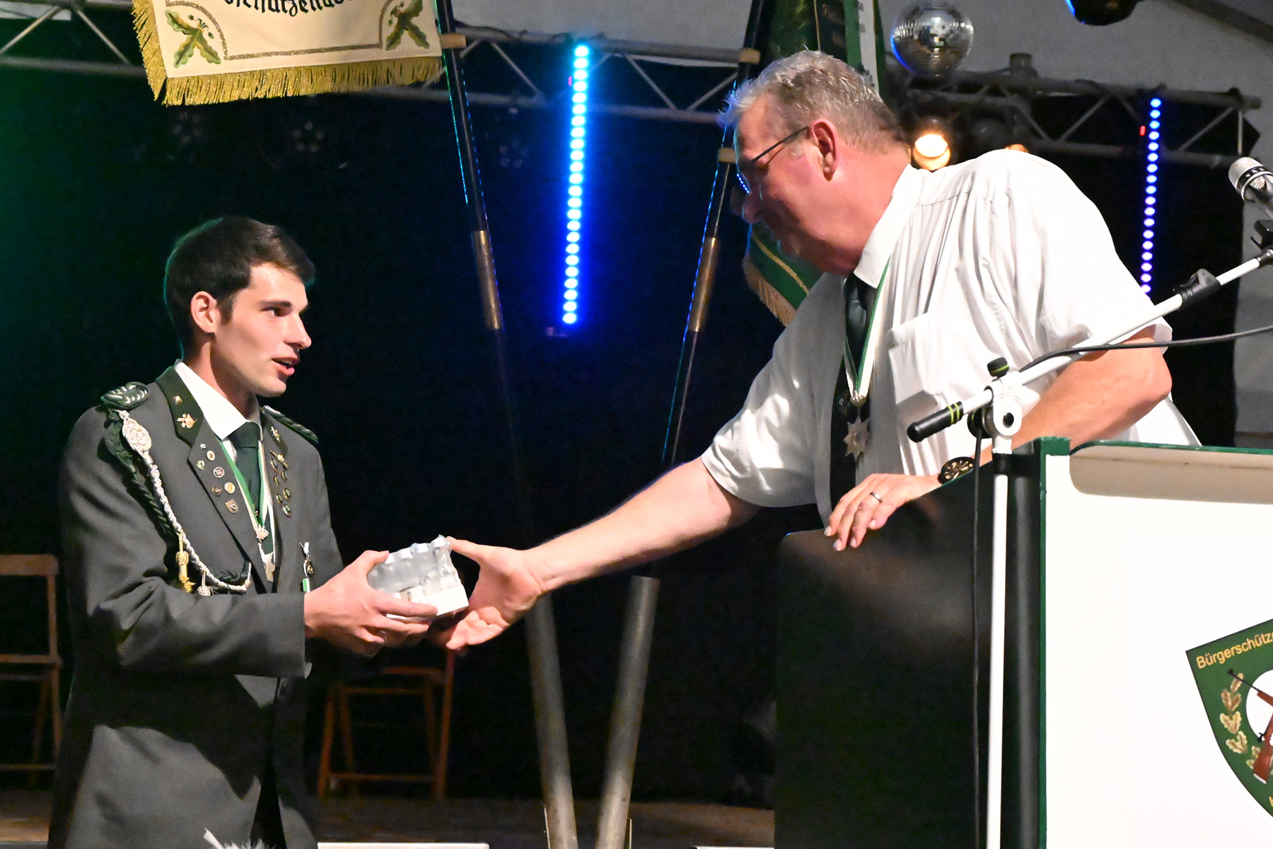 Wie schon beim Festkommers angekündigt, war der Große Zapfenstreich dann der große, stolze Moment für die Bürgerschützen, die ihre Tradition weiter in die Zukunft tragen werden. „Das ist eine Gelegenheit, uns zu präsentieren“, so der Vorsitzende. „Das macht mich ein ganzes Stück weit stolz“, gab er den Schützen mit auf den Weg.