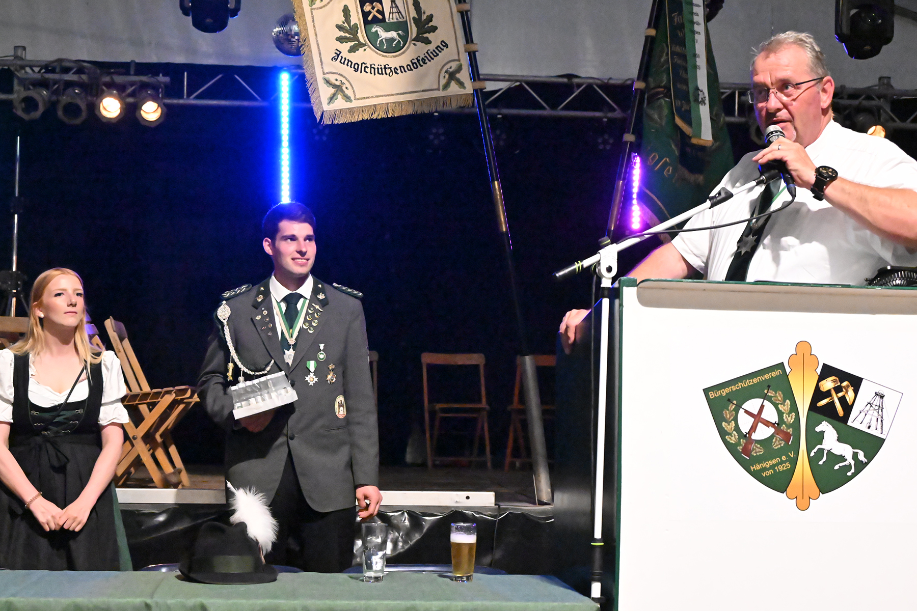 Ortsbürgermeister Norbert Vanin stellte heraus, dass nunmehr der sechste Verein in Hänigsen 100 Jahre oder älter sei. „Das zeigt, dass Geselligkeit in Hänigsen gelebt und geliebt wird“, so Vanin. Einen dreifachen Dank sprach der Bundestagsabgeordnete Tilman Kuban aus: „Danke für die tolle Musik des Musikzuges der Feuerwehren Burgdorf und Hänigsen, danke an alle, die den Großen Zapfenstreich vorbereitet haben, und danke an Olaf und sein Team – das ist sensationell hier.“ Dankesworte und Flachgeschenke kamen anschließend auch vom Bergmannsverein sowie der Traditionskameradschaft.