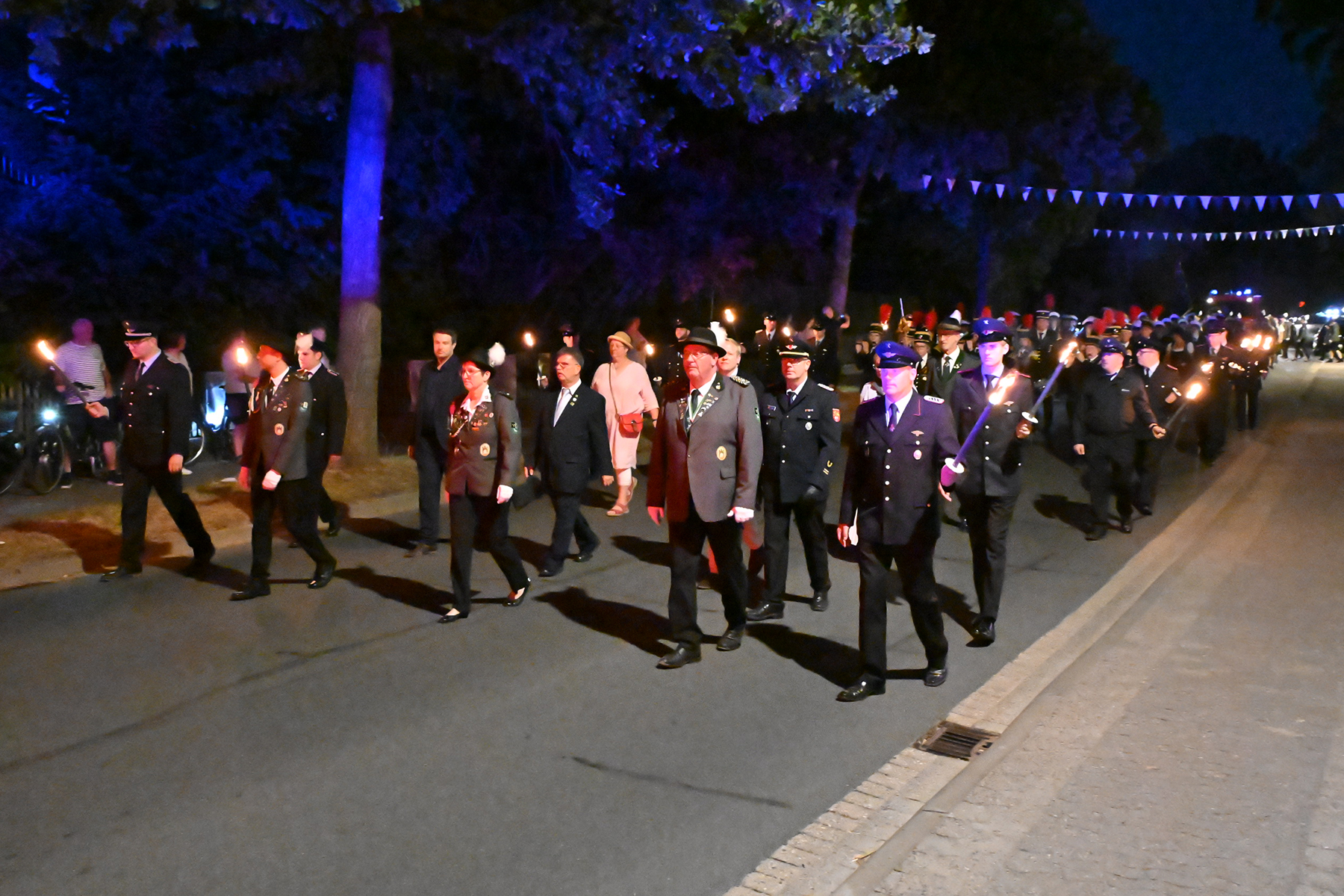 Der Zapfenstreich wurde sodann geleitet vom stellvertretenden Regionsbrandmeister Tobias Jacob (Hänigsen) und musikalisch durchgeführt vom Musikzug der Freiwilligen Feuerwehren Burgdorf und Hänigsen sowie dem Spielmannszug „Riedel“ Hänigsen. Begleitet wurde der Festakt von Fackelträgern der Freiwilligen Feuerwehr Hänigsen und abgesichert von Einsatzkräften der Ortsfeuerwehr Dachtmissen sowie der Burgdorfer DRK-Bereitschaft.