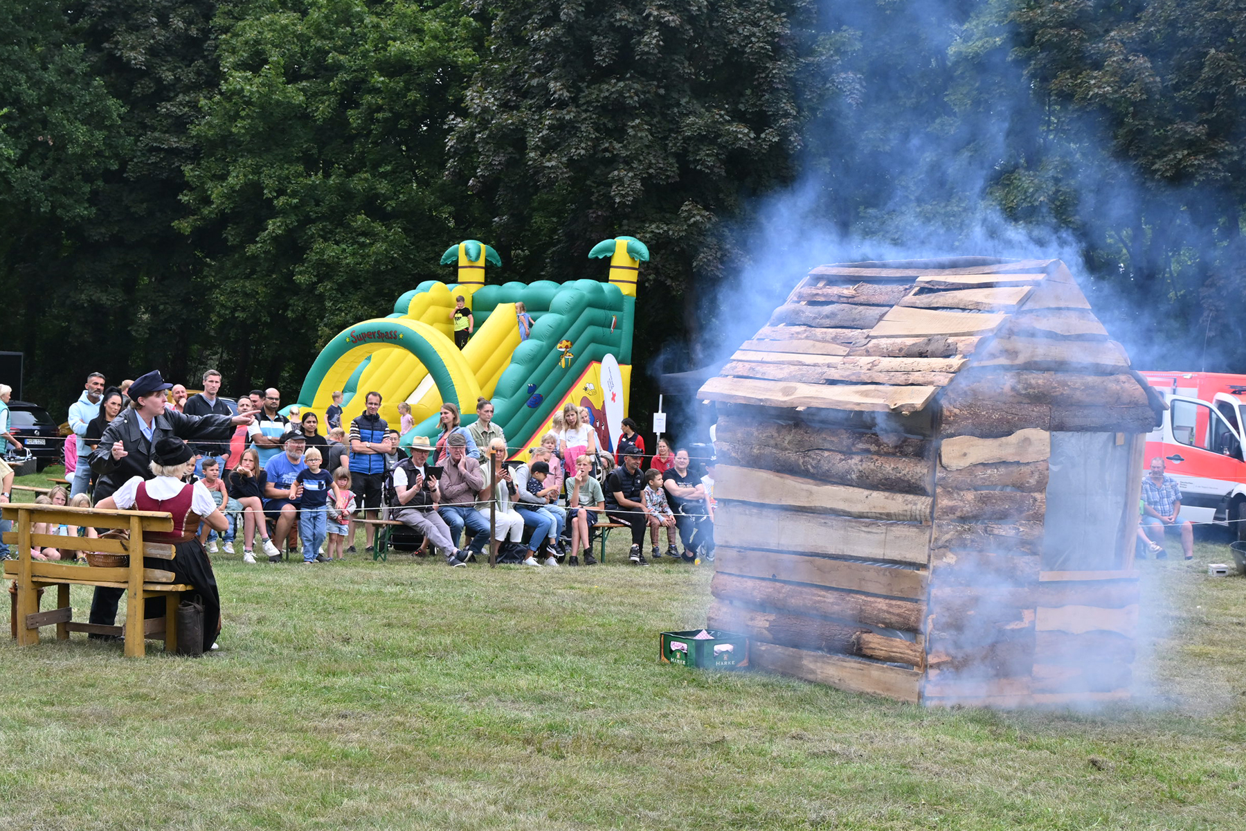Damals waren Gebäude noch größtenteils aus Holz und ein Löscheimer gehörte in jeden Haushalt, erklärte Neitzel. “So oder ähnlich lief es damals ab”, leitete Neitzel ein, als das soeben aufgebaute Haus eines frisch verheirateten Ehepaars anfing zu rauchen.