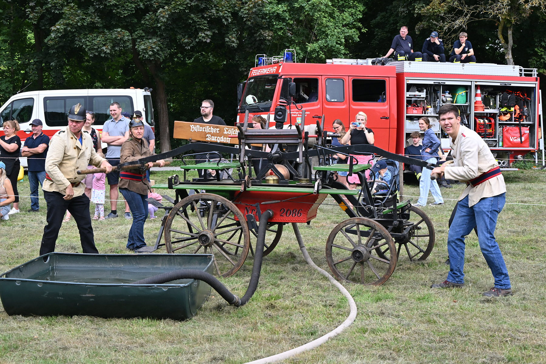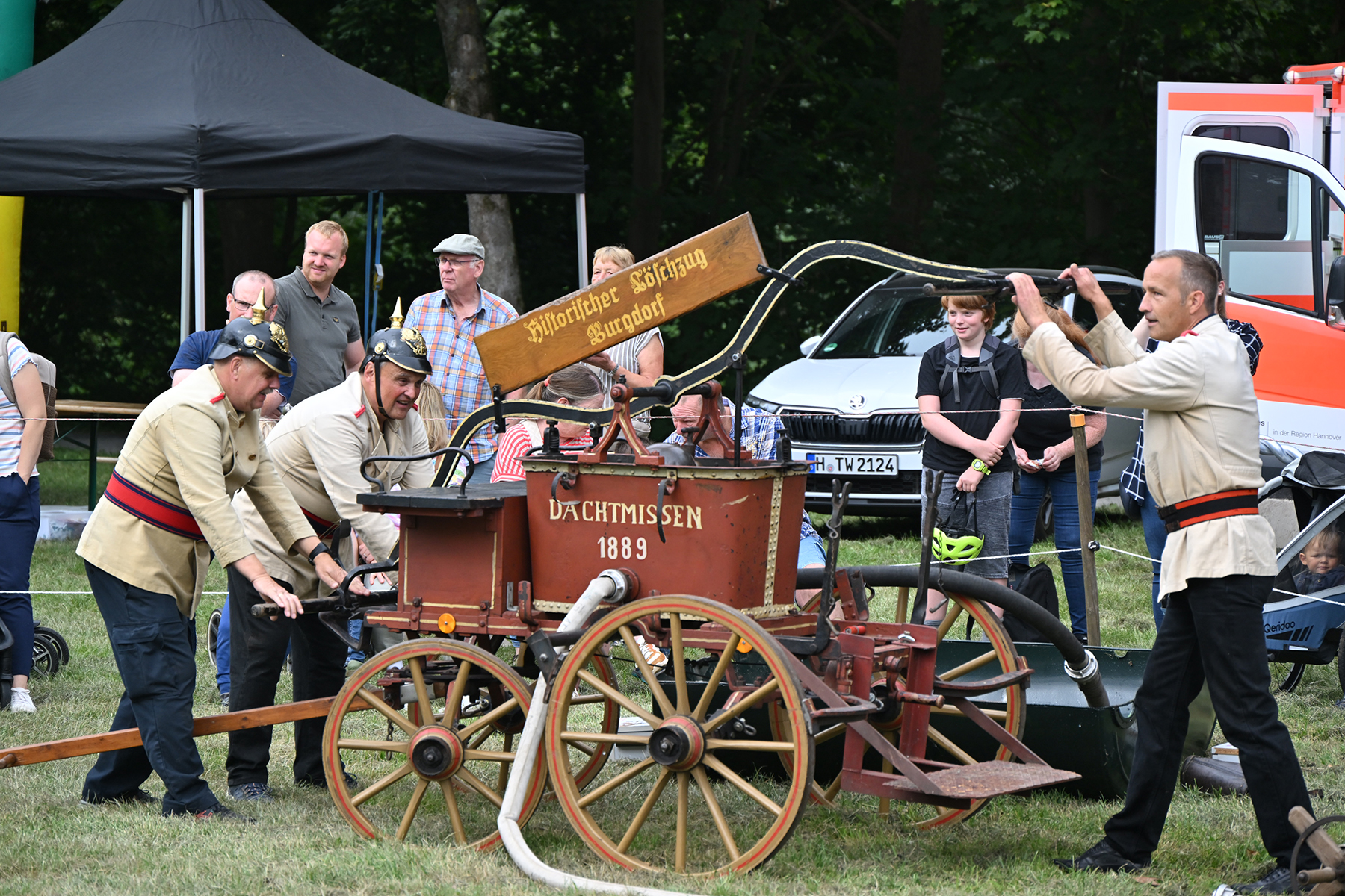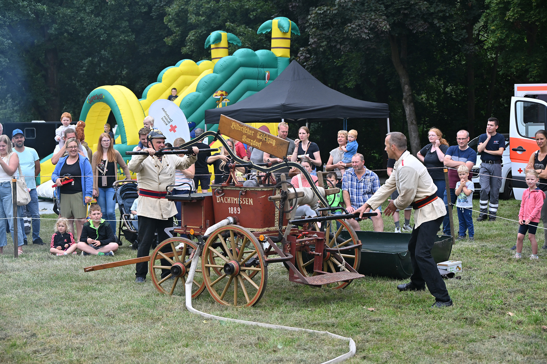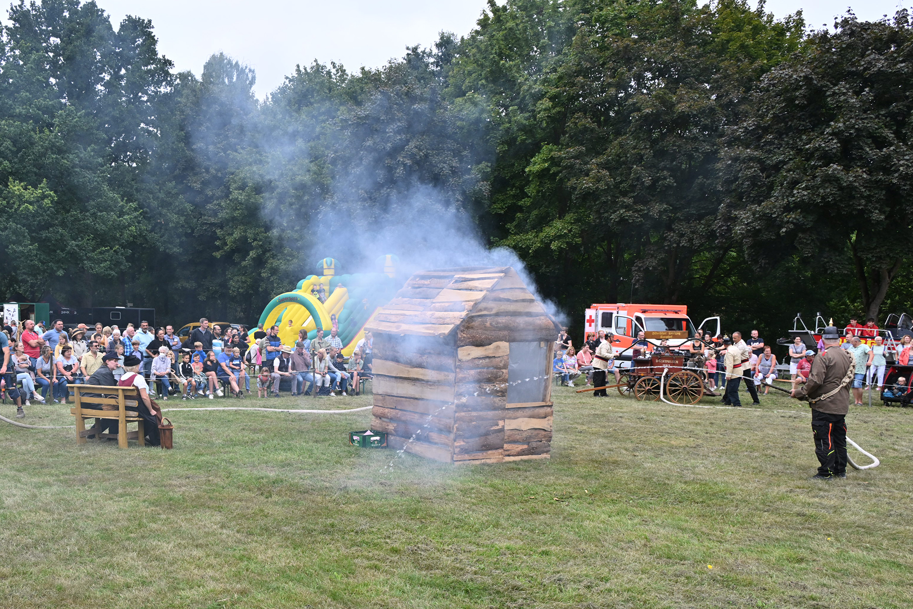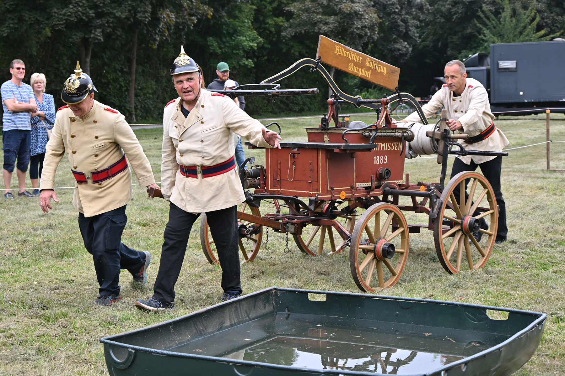Besonderer Gast war der Historische Löschzug der Freiwilligen Feuerwehren der Stadt Burgdorf. 20 Mitglieder des Historischen Löschzuges zeigten unter der Moderation von Zugführer Jörg Neitzel die Brandbekämpfung im 19. Jahrhundert.