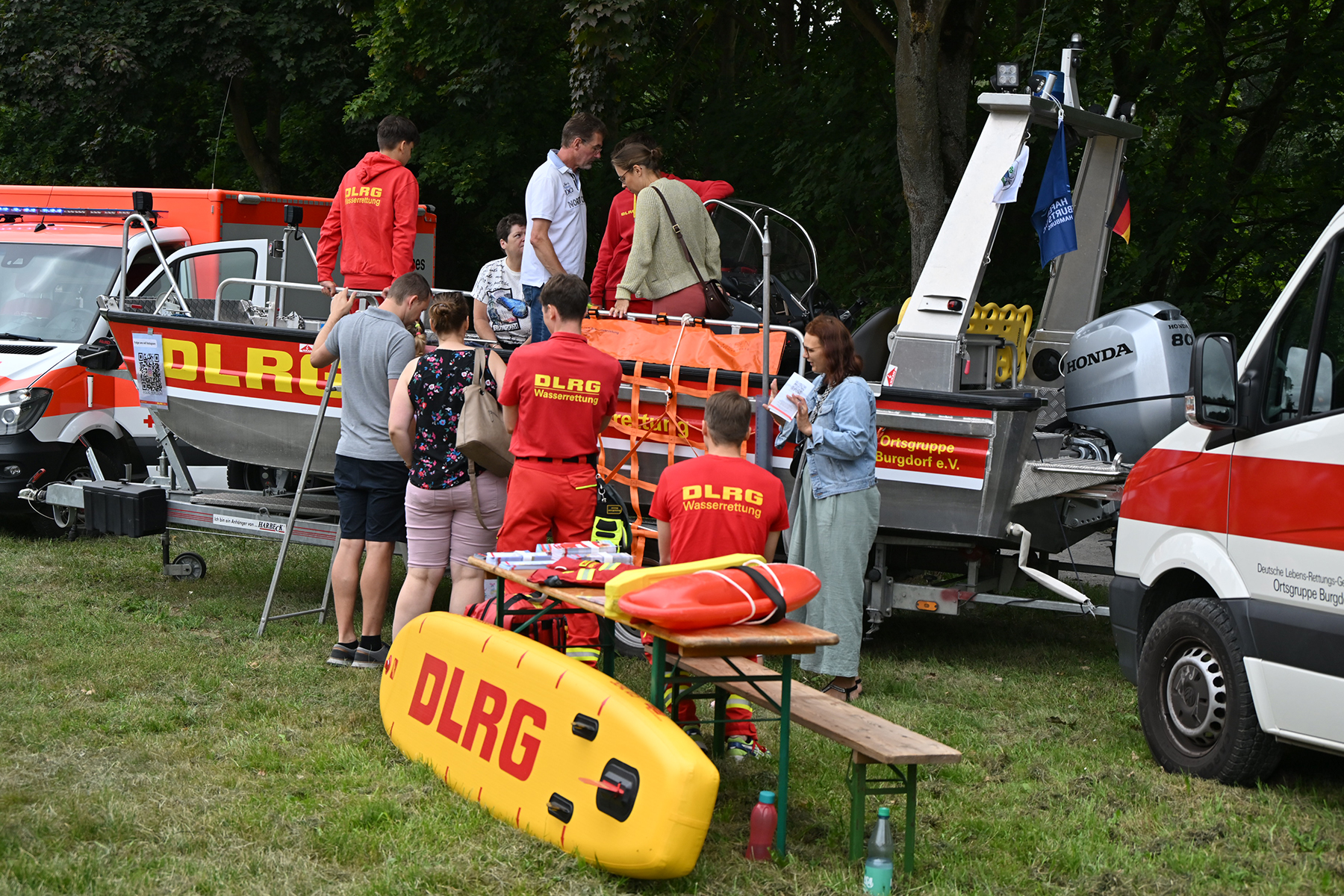 Eine besondere Attraktion war die 8. Blaulichtmeile an der Aktionsfläche, an der sich in diesem Jahr das DRK Burgdorf, die Freiwillige Feuerwehr Burgdorf, das DLRG Burgdorf sowie die BRH Rettungshundestaffel Hannover, Harz und Heide beteiligten.
