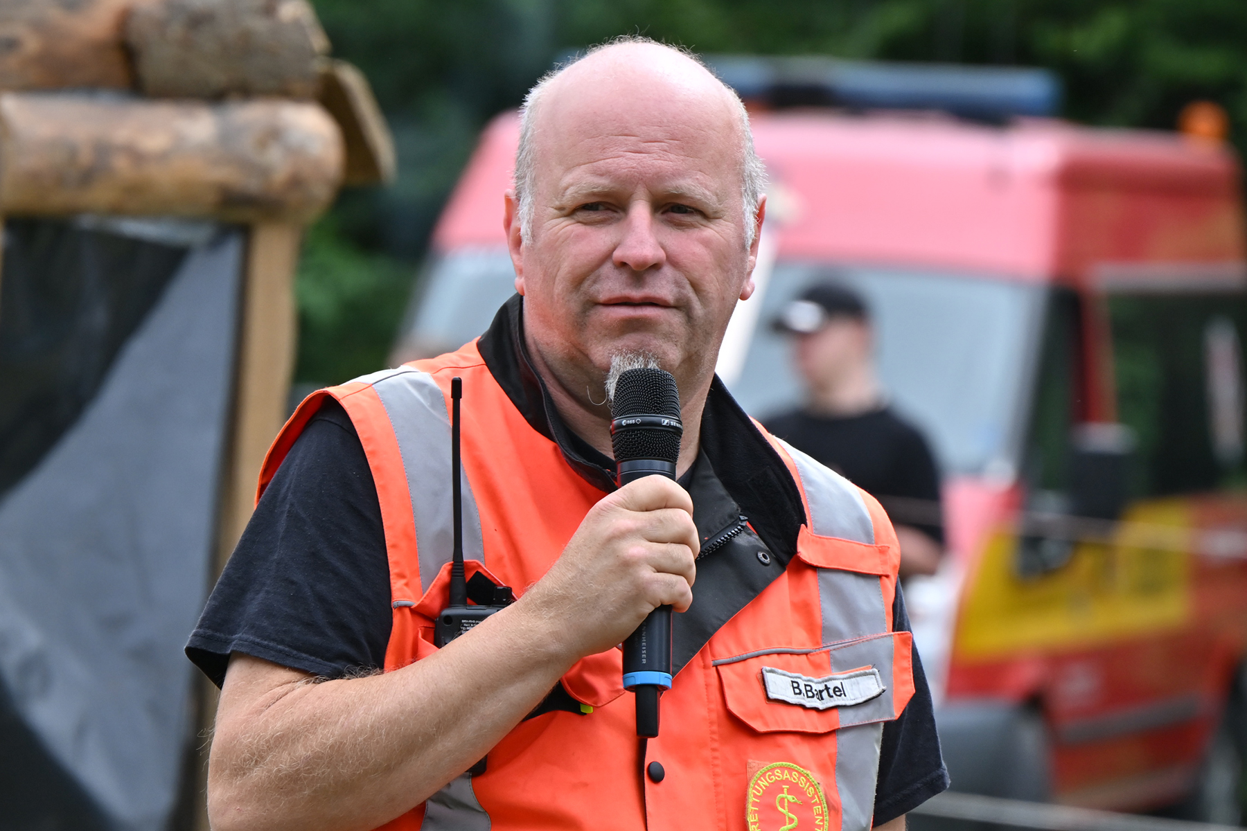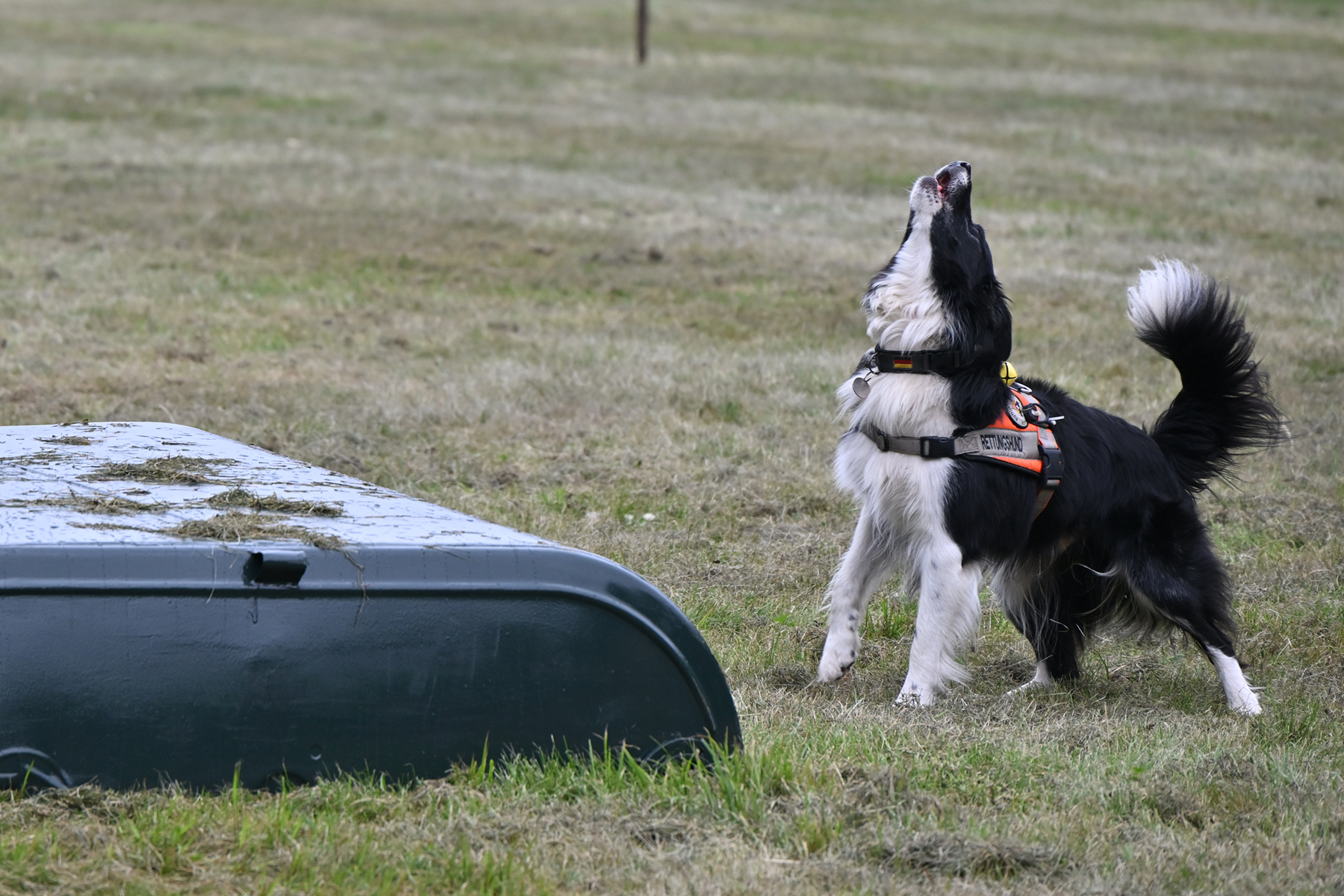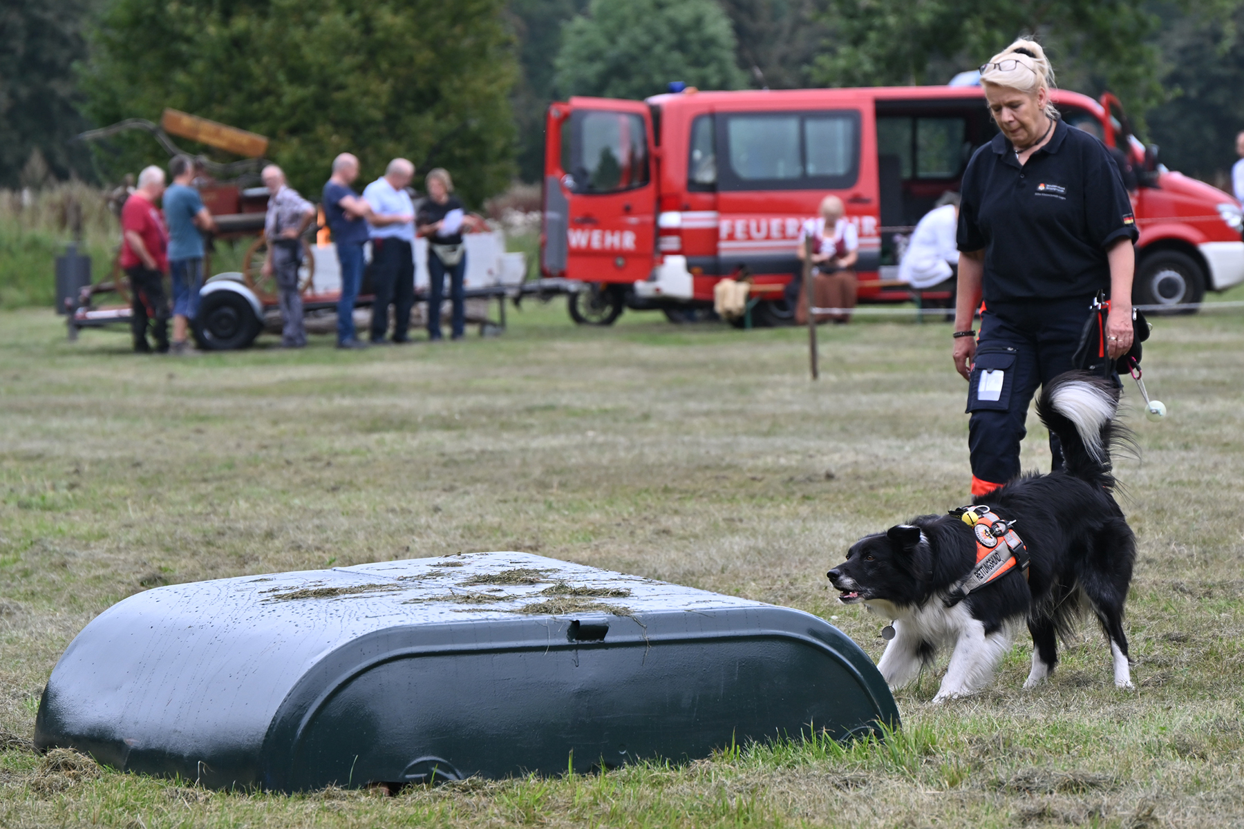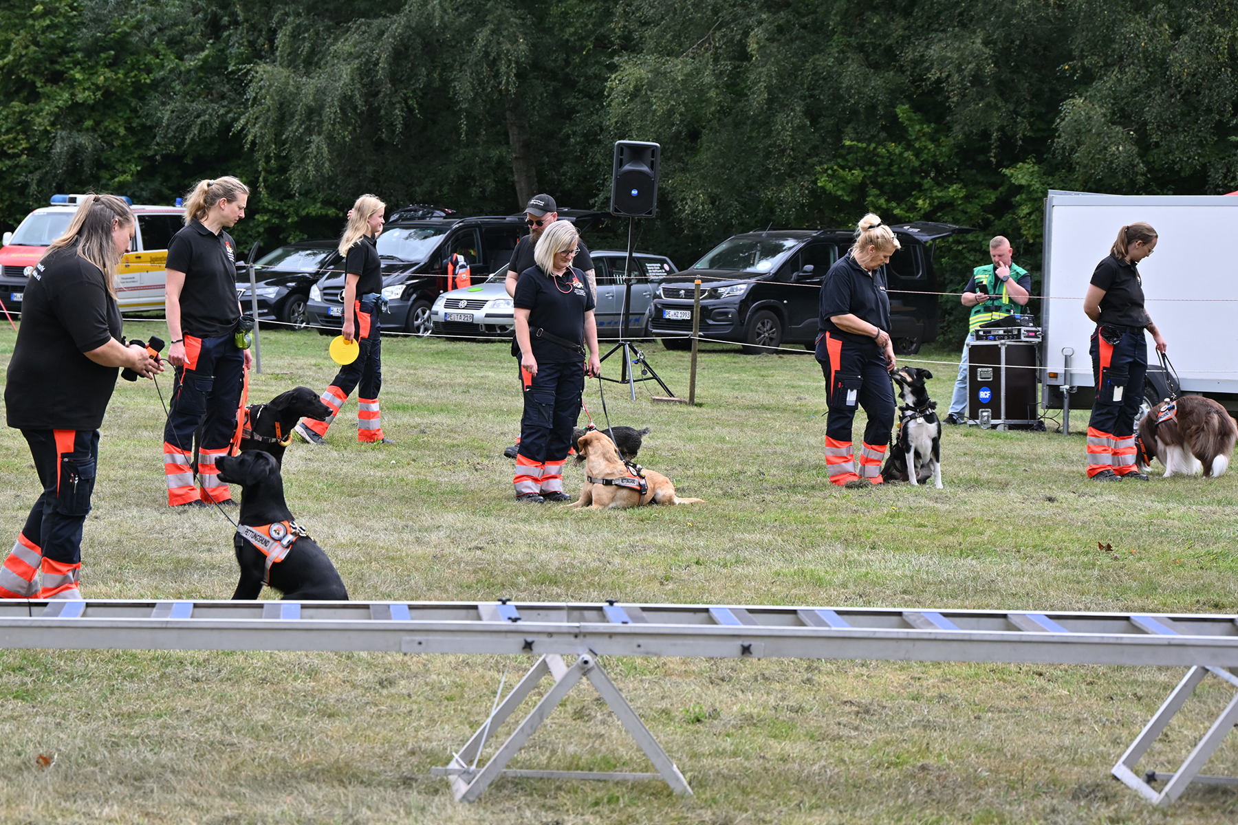 Viel Applaus erhielt auch die BRH Rettungshundestaffel Hannover, Harz und Heide. Benjamin Bartel brachte den Zuschauern die Arbeit der Rettungshunde und ihrer Führer näher. Es wurden verschiedene Anzeigetechniken und ihre Vor- und Nachteile erklärt. Auch wenn die Rettungshunde eher in der Fläche arbeiten „und alles anzeigen, was ein Mensch ist“, so wurde auch die Suche von Personen in einem Gebäude vorgeführt. “Die Hunde müssen auch Hilfsmittel benutzen können, wie eine Leiter”, erklärte Benjamin Bartel. “Sie kennen es sicherlich selbst: die Füße sehen wir noch, aber bei einem Hund ist das anders – er sieht seine Hinterläufe nicht”, erklärte er. Sichtlich beeindruckt und mit vielen neuen Informationen quittierten die Zuschauer die rund 20-minütige Aufführung mit viel Applaus.