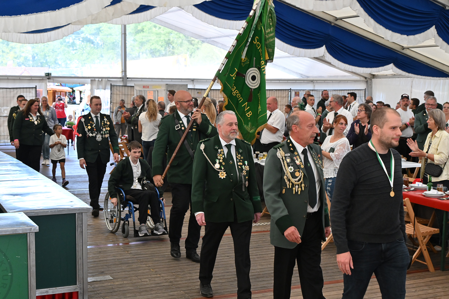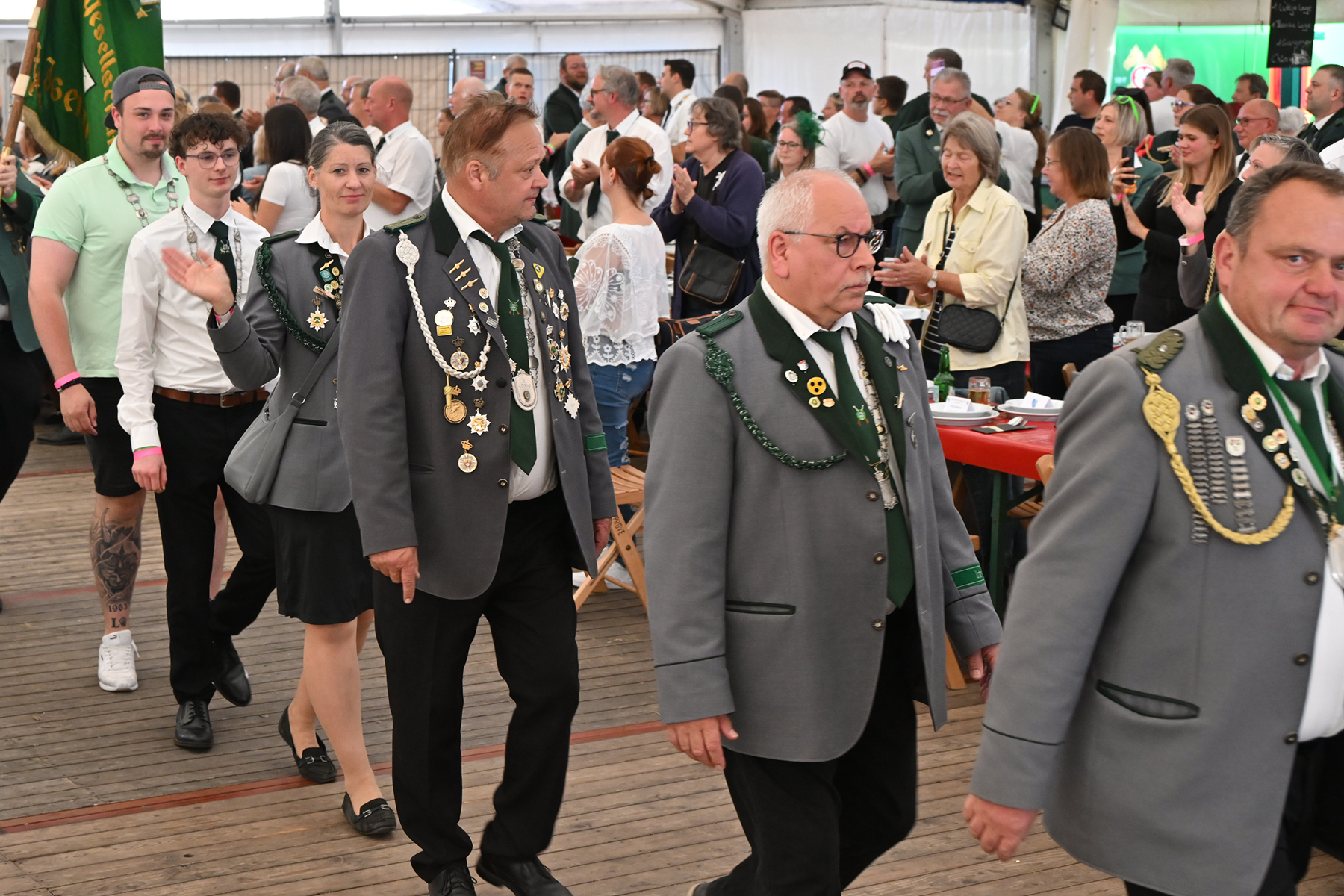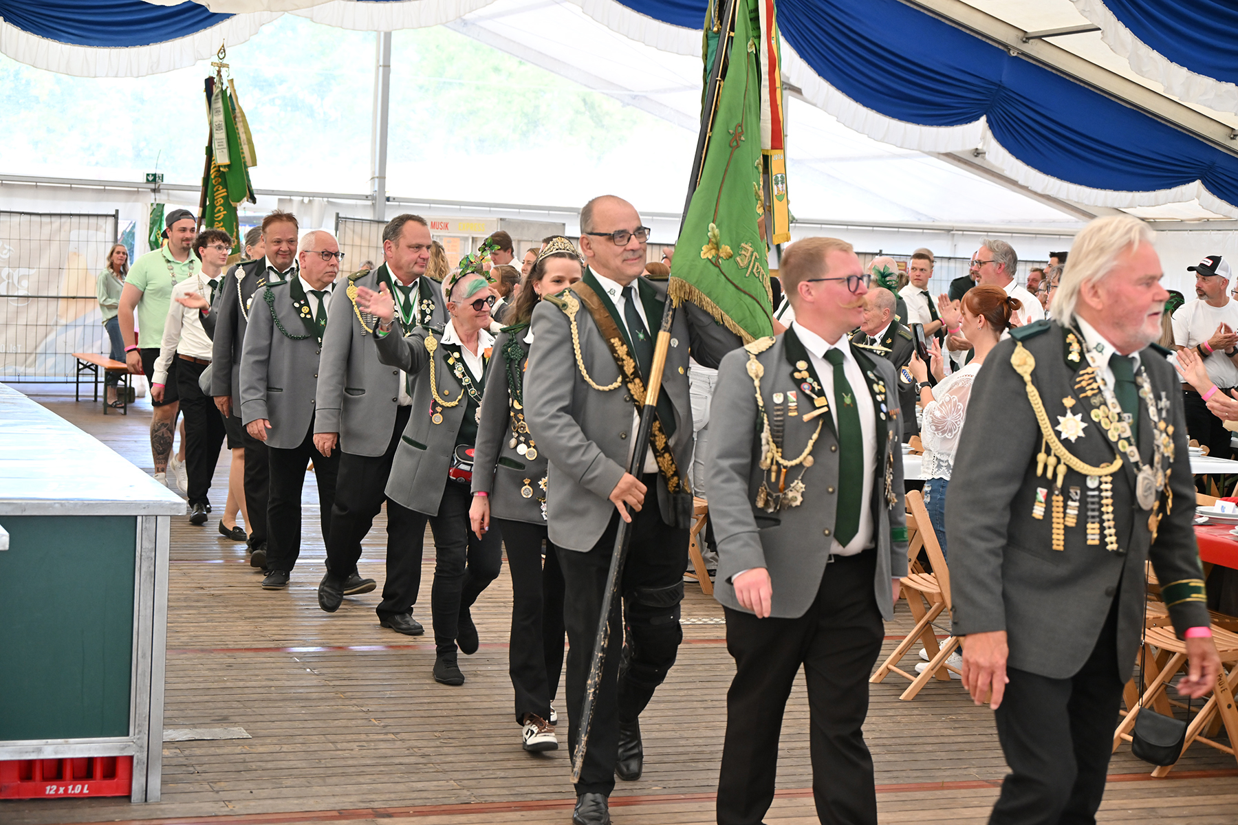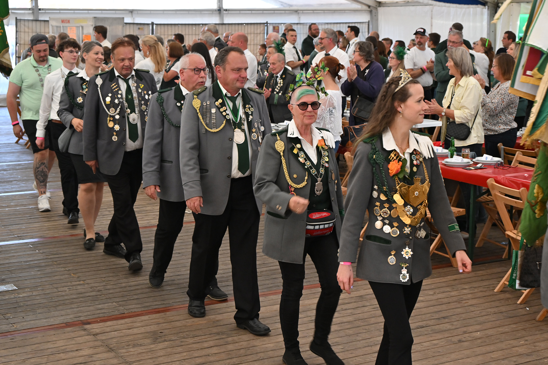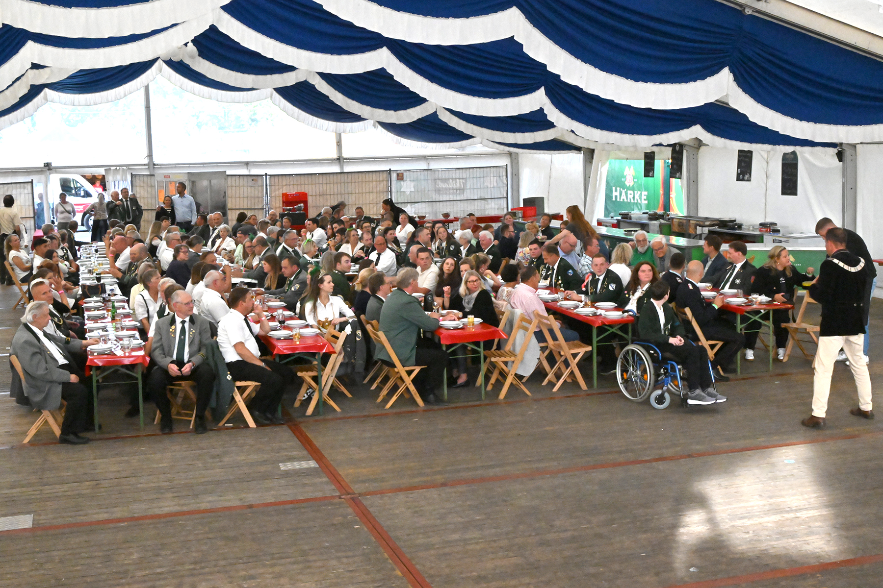 Drei Tage lang haben die vier Altdörfer Isernhagens ihr gemeinsames Volks- und Schützenfest an der Hagenstraße gefeiert. Am gestrigen Montag, 25. August 2025, stand das Festessen mit rund 200 Gästen auf dem Programm. Melanie Alt, Vorsitzende des Schützenvereins Isernhagen F.B., der in diesem Jahr das Fest organisiert hat, konnte unter den Gästen unter anderem Isernhagens Bürgermeister Tim Mithöfer sowie die Ortsbürgermeister Sabine Wirtz (Altwarmbüchen), Vanessa Schenke (Neuwarmbüchen), Simon Müller (Isernhagen H.B.), Heinrich Bätke (Isernhagen N.B.) und Herbert Löffler (Kirchhorst-Stelle) begrüßen. Nach dem Einmarsch ins Festzelt wurden die Majestäten der vier Schützenvereine vorgestellt.