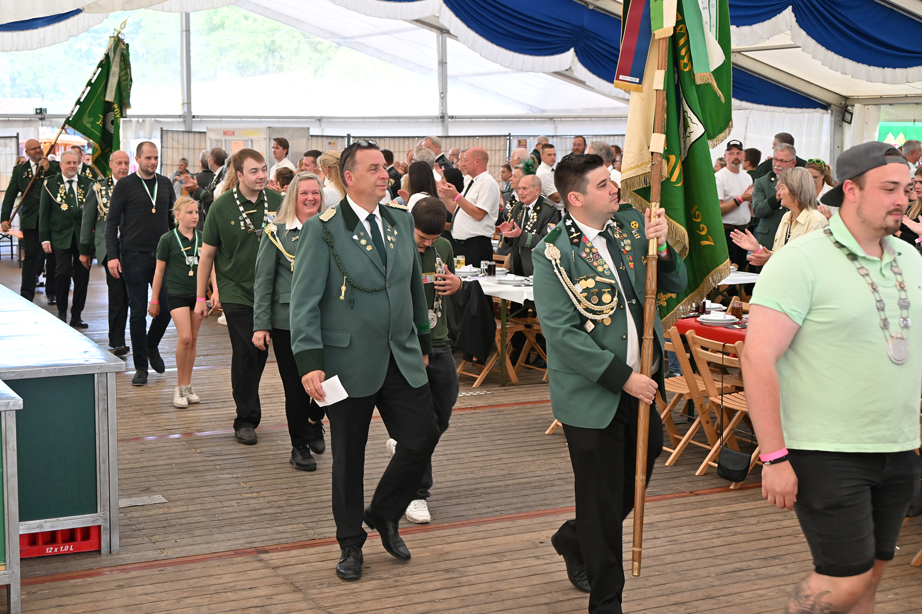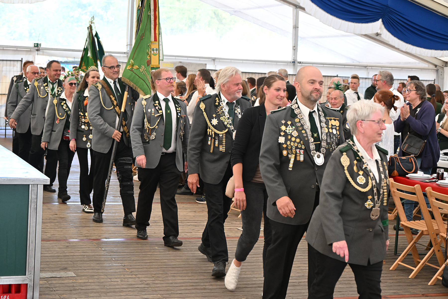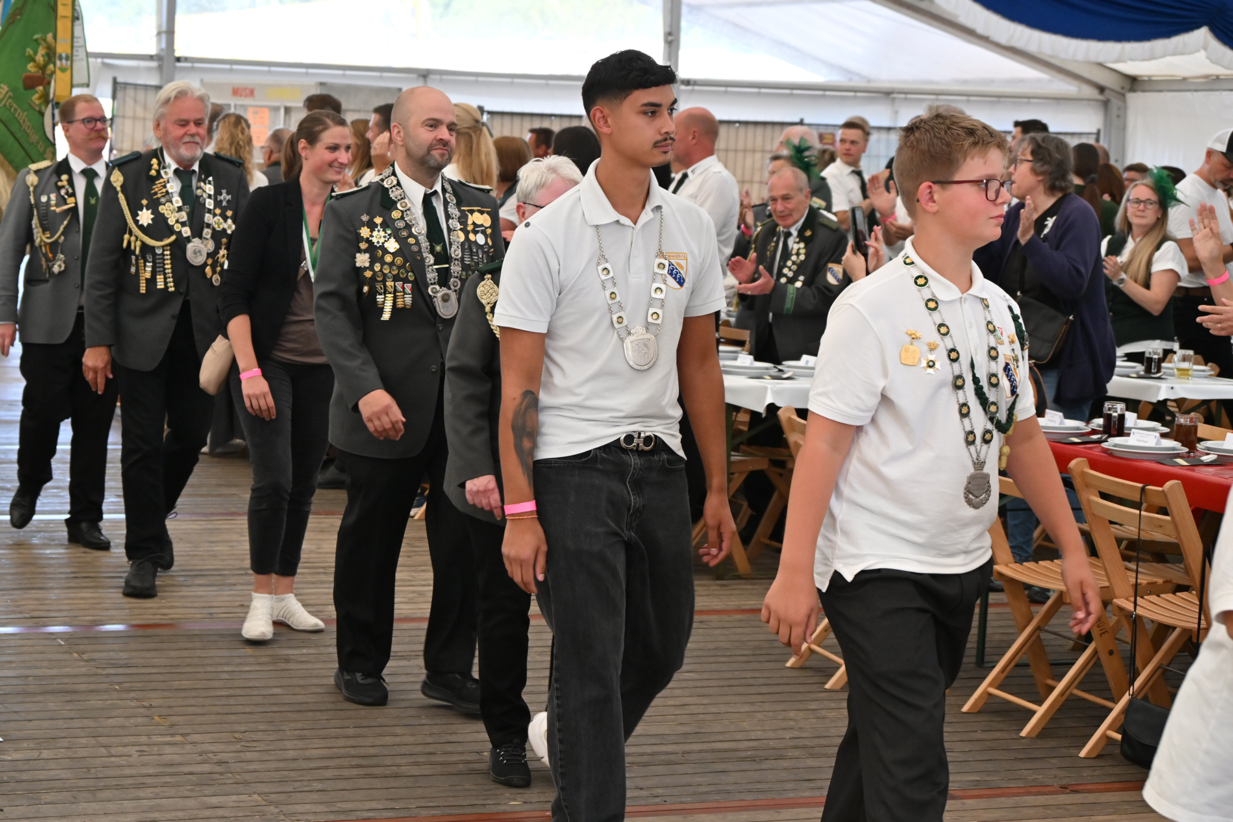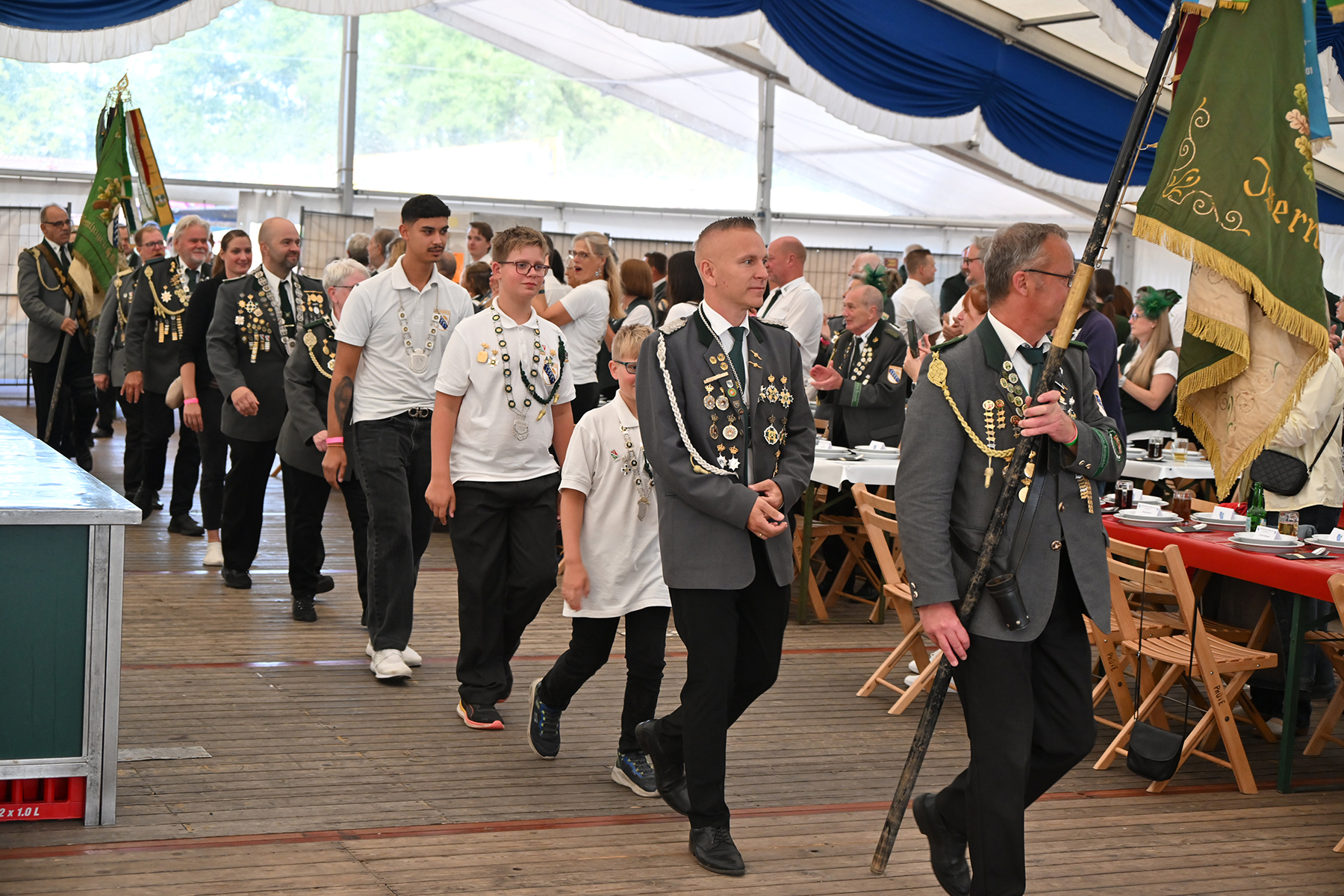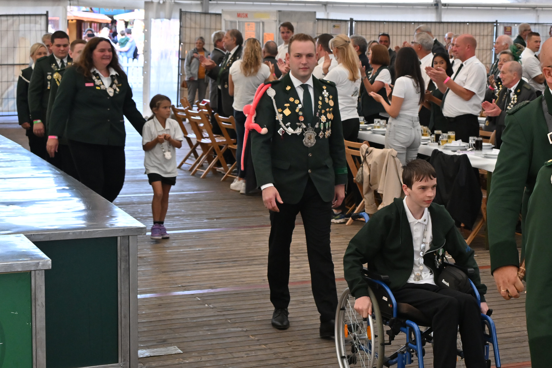 Drei Tage lang haben die vier Altdörfer Isernhagens ihr gemeinsames Volks- und Schützenfest an der Hagenstraße gefeiert. Am gestrigen Montag, 25. August 2025, stand das Festessen mit rund 200 Gästen auf dem Programm. Melanie Alt, Vorsitzende des Schützenvereins Isernhagen F.B., der in diesem Jahr das Fest organisiert hat, konnte unter den Gästen unter anderem Isernhagens Bürgermeister Tim Mithöfer sowie die Ortsbürgermeister Sabine Wirtz (Altwarmbüchen), Vanessa Schenke (Neuwarmbüchen), Simon Müller (Isernhagen H.B.), Heinrich Bätke (Isernhagen N.B.) und Herbert Löffler (Kirchhorst-Stelle) begrüßen. Nach dem Einmarsch ins Festzelt wurden die Majestäten der vier Schützenvereine vorgestellt.