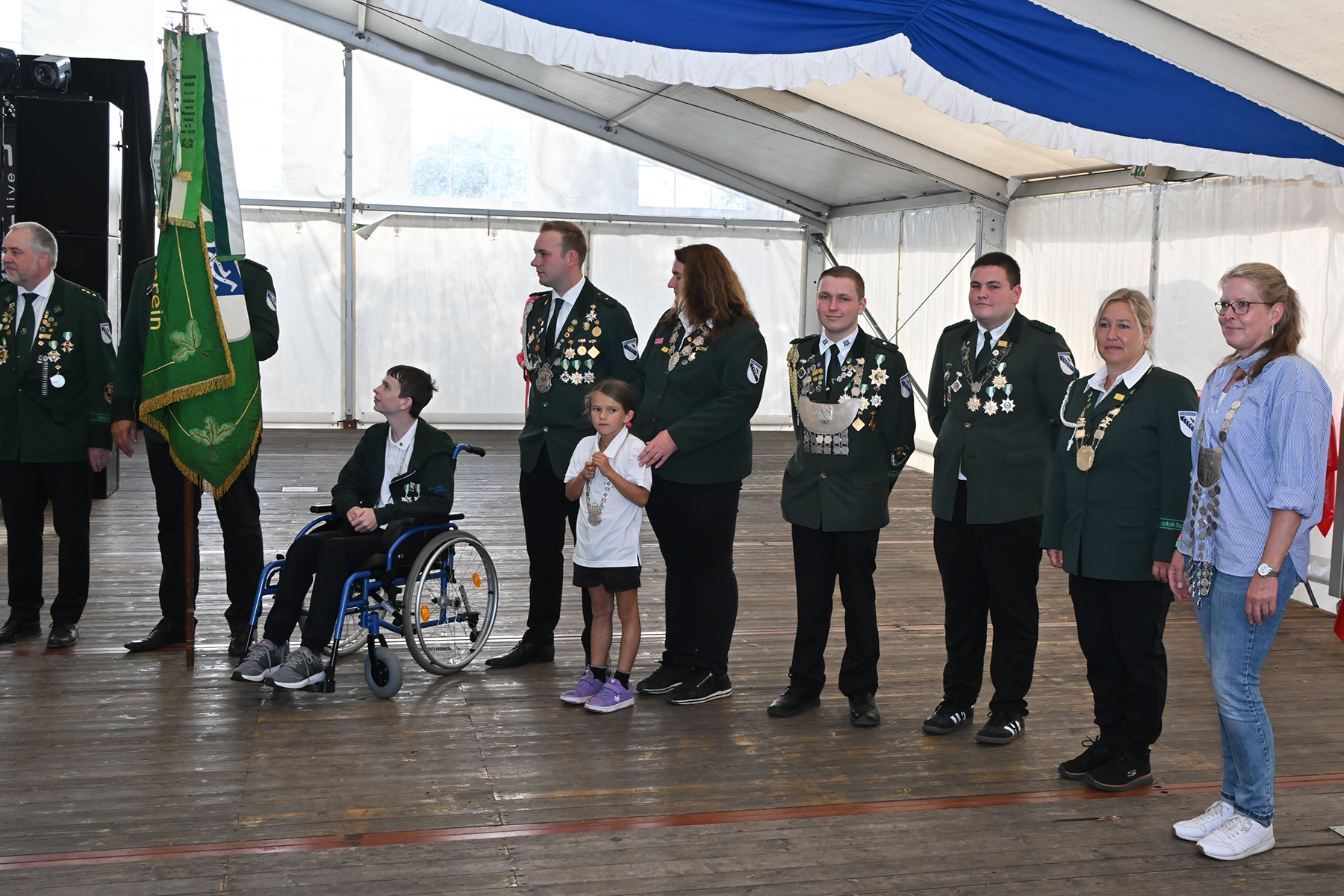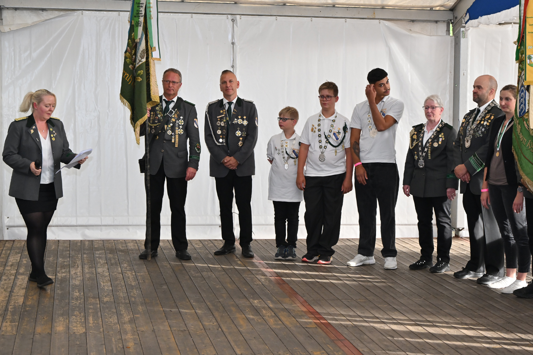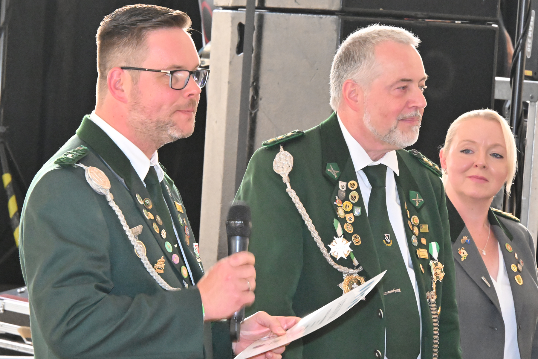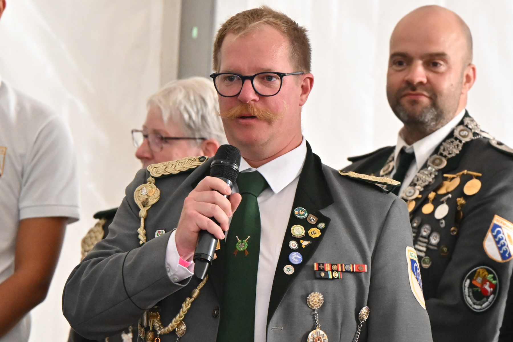 „Danke für so ein Schützenfest am Sonnabend und Sonntag, das war ein Riesenspaß“, so Bürgermeister Tim Mithöfer in seinen Grußworten. Besonders im Gedächtnis bleibe ihm der Festumzug in K.B., bei dem die Teilnehmer sogar auf ihn gewartet hätten, als er kurzzeitig austreten musste. „Ich freue mich, dass alle Generationen in einem Schützenverein vertreten sind. Denn davon lebt das Schützenfest und die Dorfgemeinschaft. Ohne Euch gäbe es die Schützentradition nicht, und das wäre eine Schande“, so Mithöfer weiter. „Vielen Dank an Euch, liebe Schützen. Ich freue mich schon jetzt aufs nächste Jahr.“