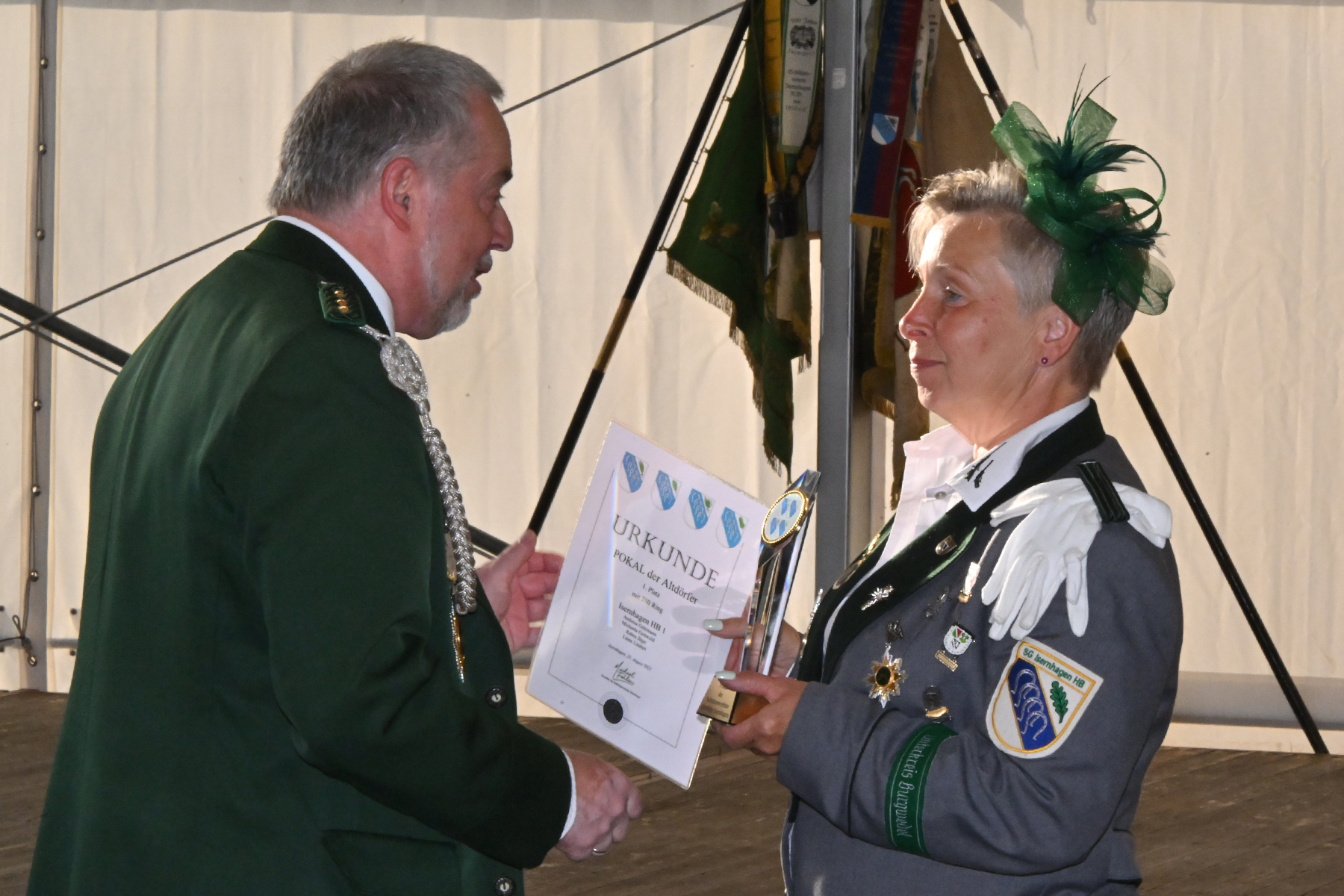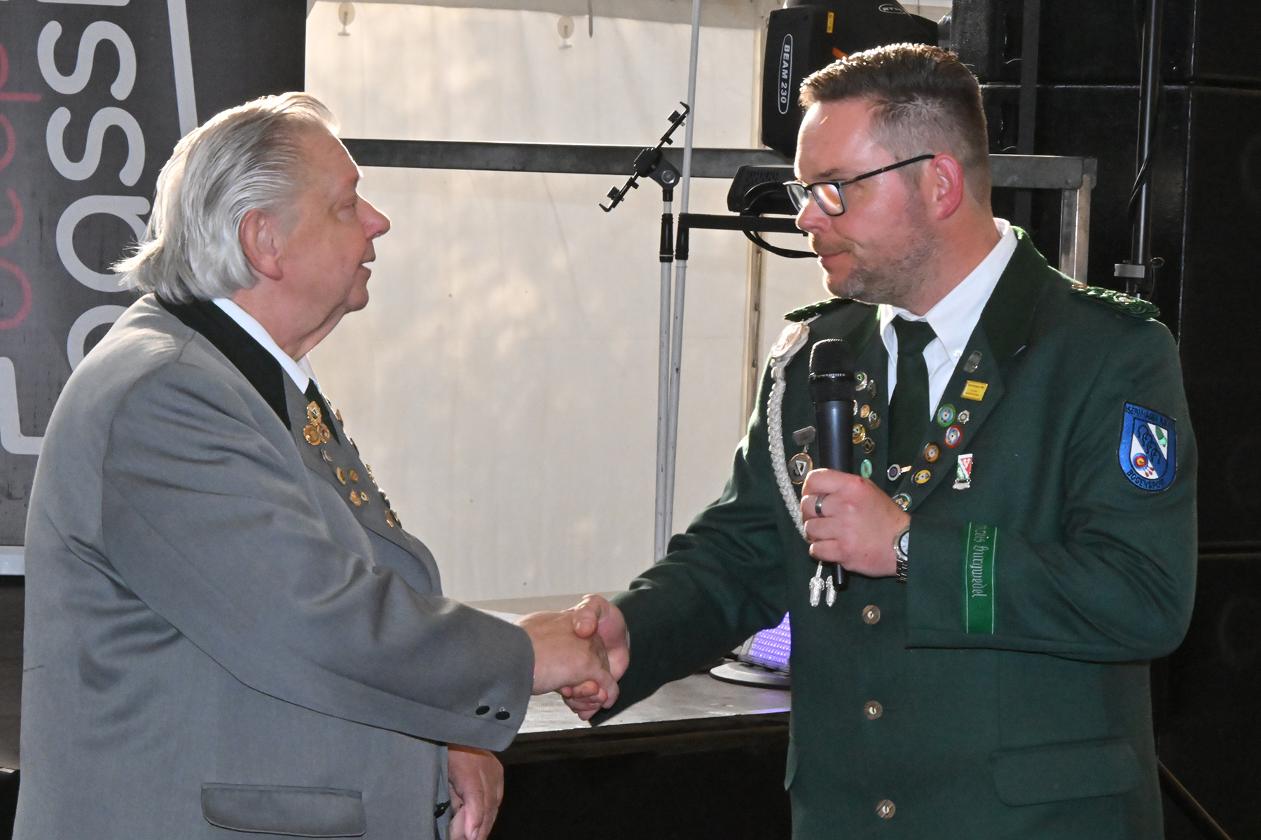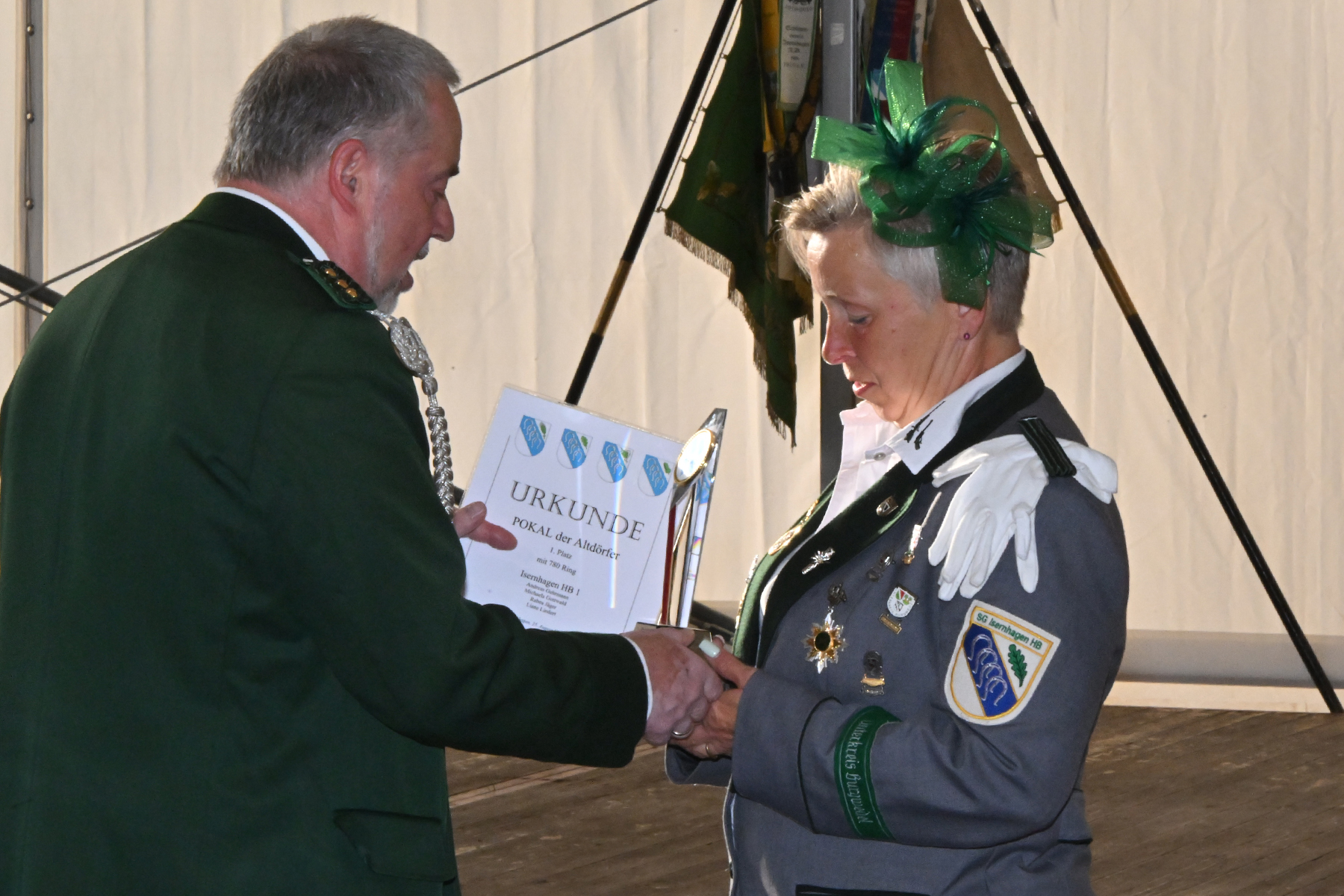 „Gemeinsamkeit, Tradition – ein Dorf“, fasste Werner Bösche, Präsident des Kreisschützenverbandes (KSV) Burgdorf, den Geist der Veranstaltung zusammen. Er hatte zwei besondere Ehrungen mitgebracht: Für seinen langjährigen Einsatz im Schützenwesen, insbesondere als Sprecher der Isernhagener Schützenvereine, erhielt Herbert Eggert die Ehrennadel in Gold mit Eichenkranz – die höchste Auszeichnung des KSV. Er wurde dafür mit stehendem Applaus bedacht. Für seine Verdienste um das Schützenwesen, insbesondere für die jahrelange Berichterstattung, wurde Bastian Kroll, Herausgeber des AltkreisBlitz, mit der Ehrennadel in Gold des Regionsfachverbands Schießsport ausgezeichnet.