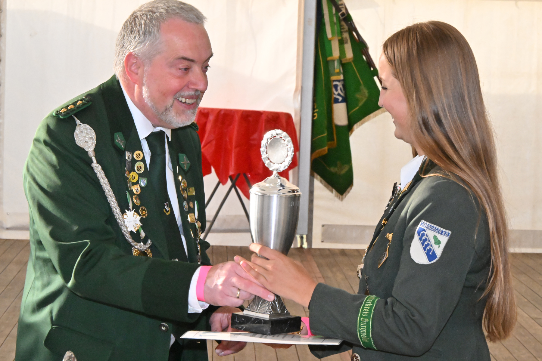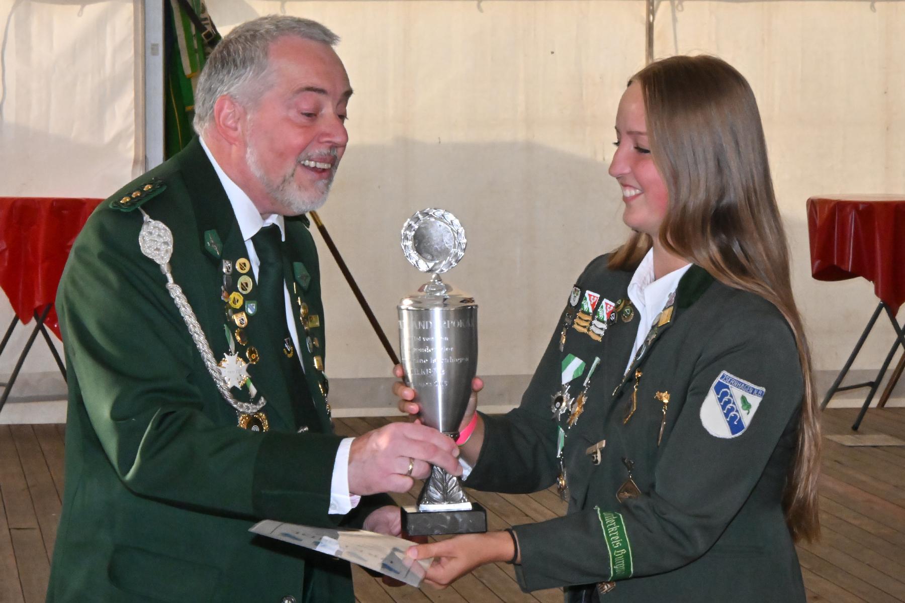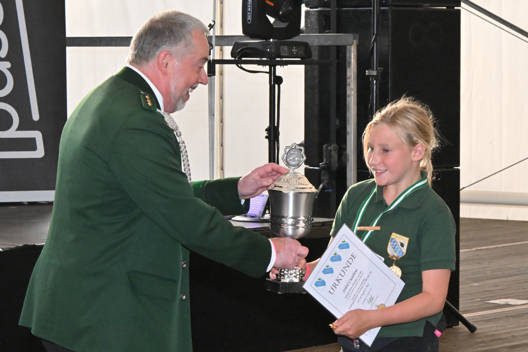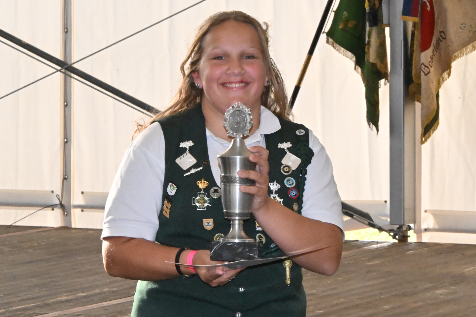 Auch einige Pokale und Ketten wurden überreicht: Den Sundopokal (Freihand) sowie den Pokal der Vorsitzenden gewann Felicitas Groß (N.B.). Hannah-Jolie Becker (N.B.) erhielt den Pokal, gestiftet von der Firma Könnecke & Sohn. Den Pokal der Ortsbürgermeister sicherte sich Soleil Cuadron (K.B.).