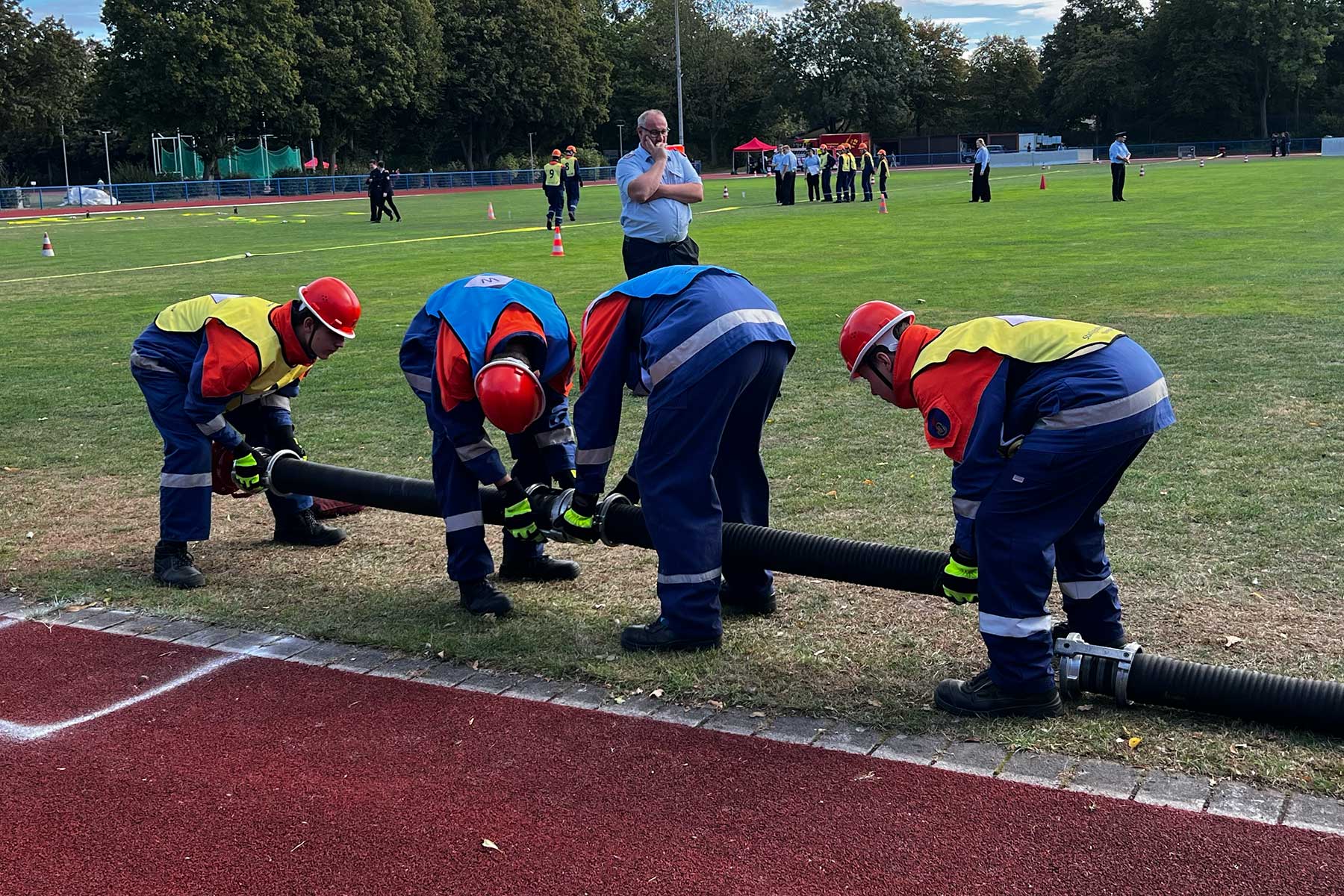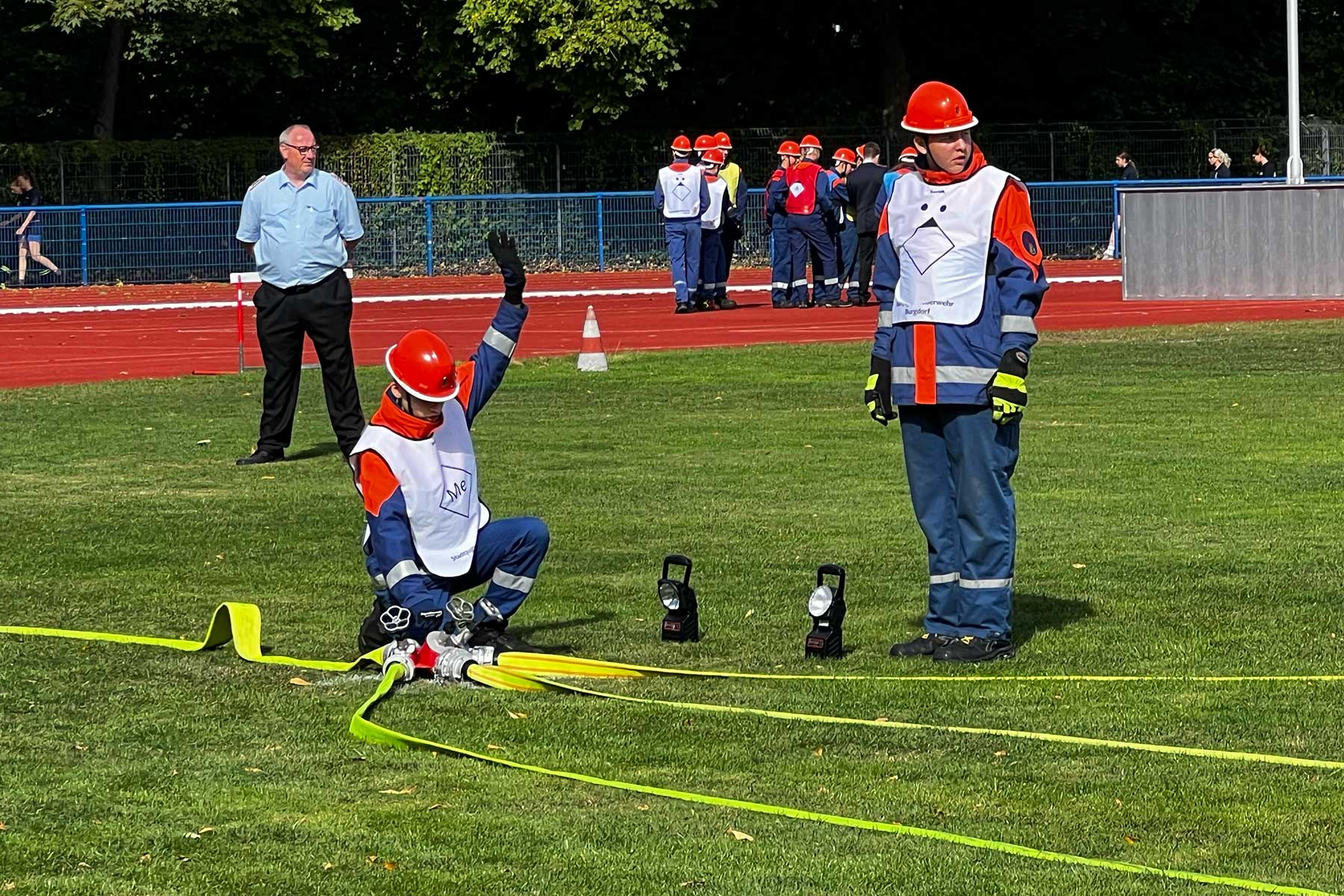 Die Stationen bei der Prüfung am Sonntag beinhalteten einen Löschangriff nach der Feuerwehrdienstvorschrift 3, einen 1.500-Meter-Staffellauf, eine Schnelligkeitsübung als eine Schlauchstaffel, Fragen zu allgemeinem Wissen und Kugelstoßen.