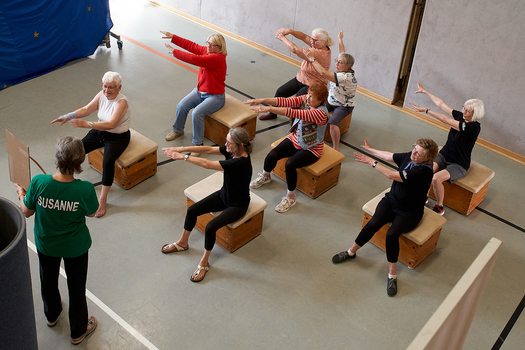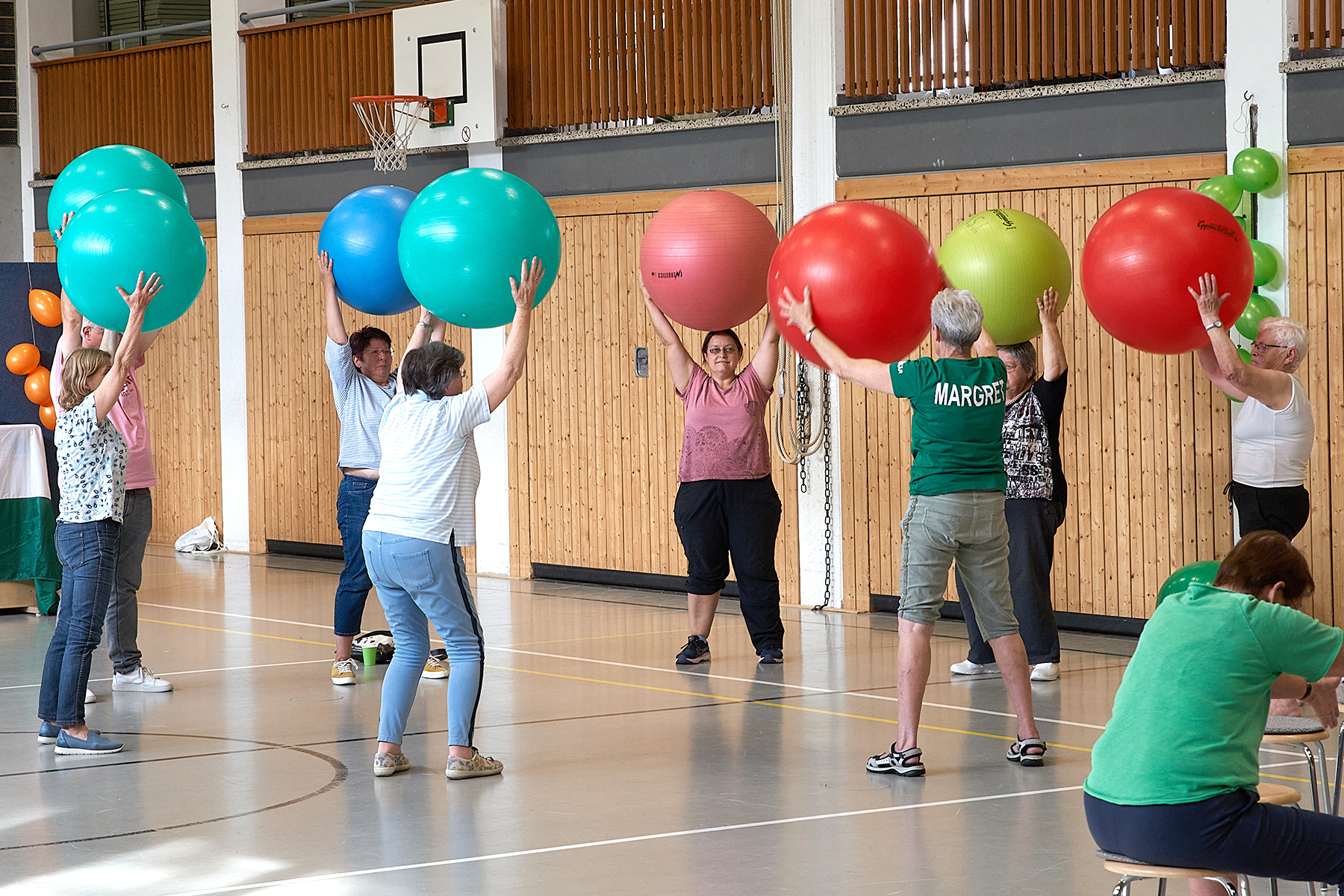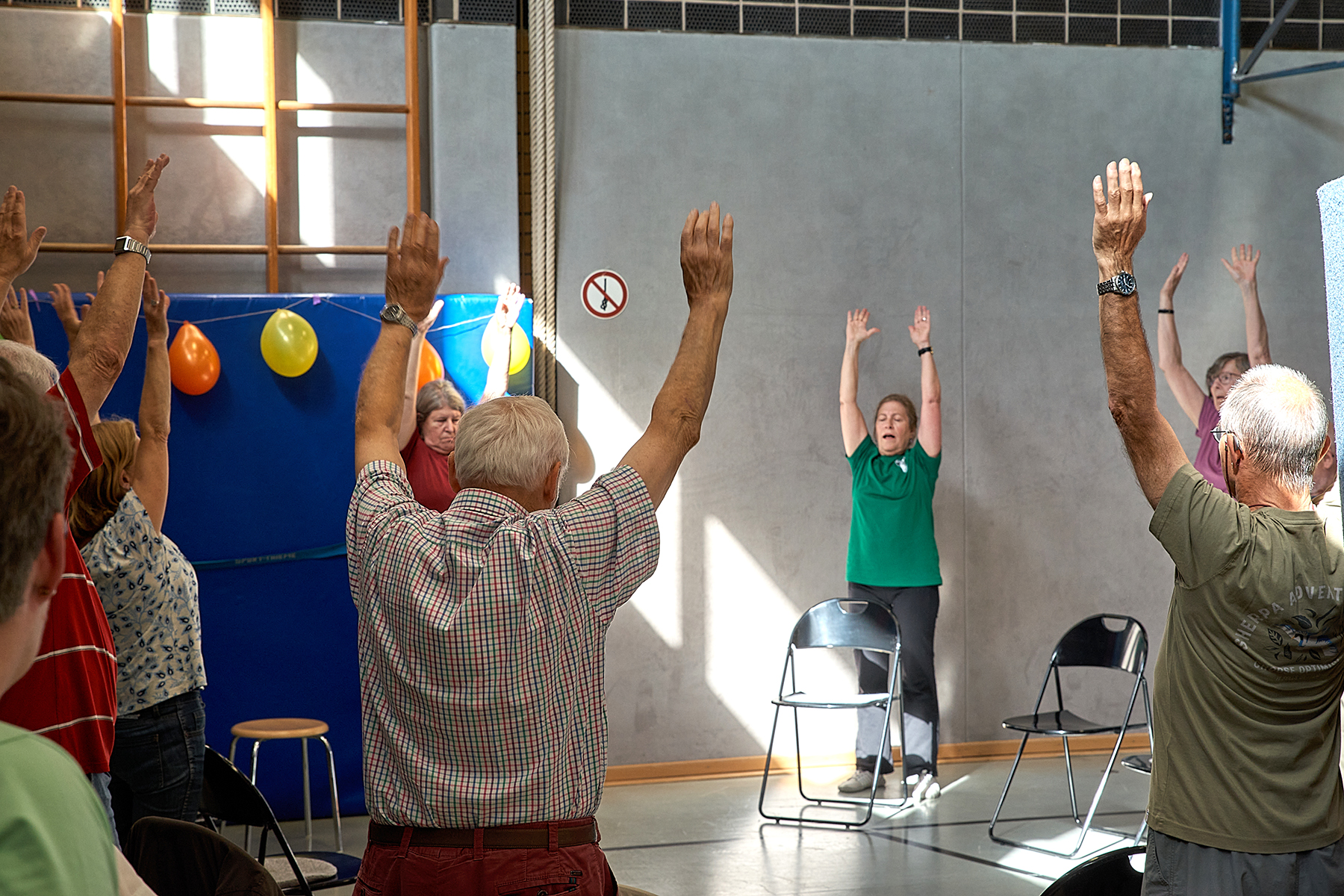 Viele nutzten die Gelegenheit, um sich über die vielfältigen Sportmöglichkeiten für Senioren zu informieren. An verschiedenen Stationen konnten sie unter anderem Hockergymnastik, Denken und Bewegen sowie Yoga auf und mit dem Stuhl und Übungen mit Gymnastikball ausprobieren. Die Angebote wurden begeistert angenommen und zeigten, wie viel Freude durch Bewegung und Gemeinschaft entsteht.