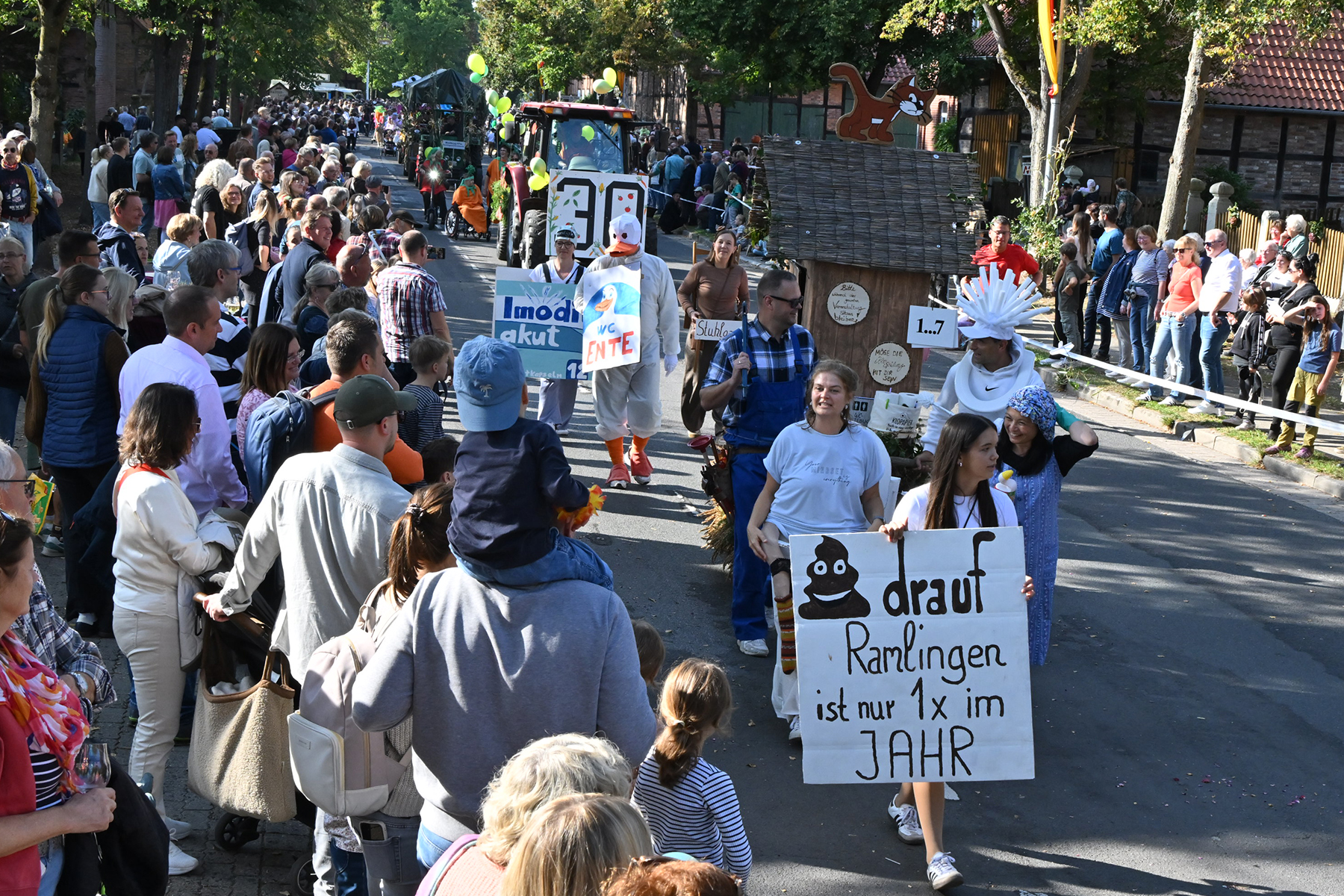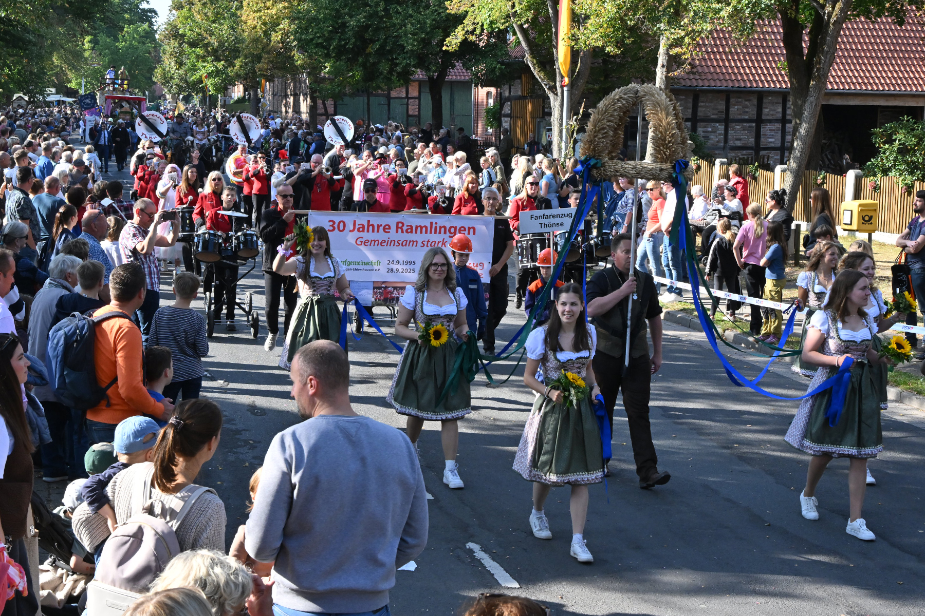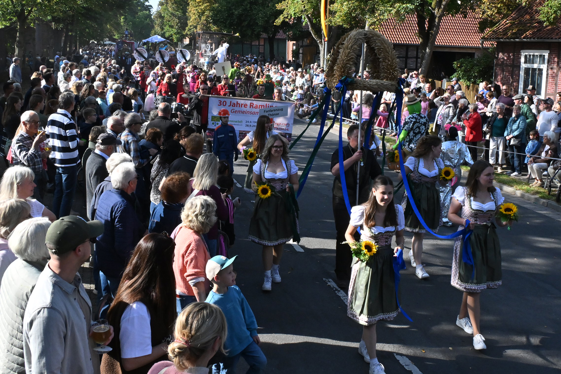 Es war alles vorbereitet für das Event des Jahres in Ramlingen: Am gestrigen Sonnabend, 27. September 2025, wurde mit Melanie „Melli“ Wottke die 53. Ramlinger Erntekönigin proklamiert (wir berichteten). Heute stand der zweite Festumzug auf dem Programm. Bei 20 Grad und wolkenlosem Himmel kamen die Besucher in Scharen. „So viele Besucher hatten wir noch nie“, urteilt Frank Berg von der Ramlinger Dorfgemeinschaft, die das Fest nunmehr zum 58. Mal veranstaltet hat.