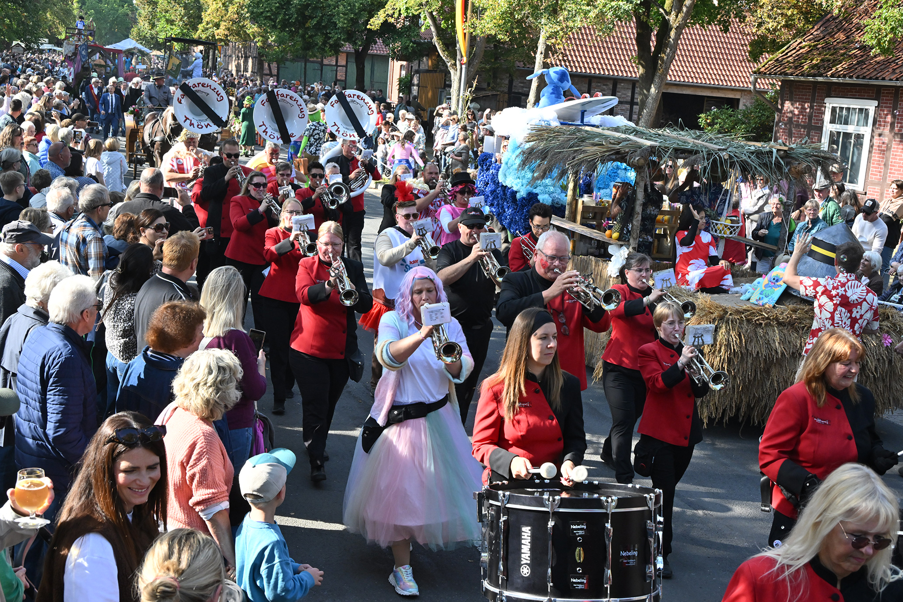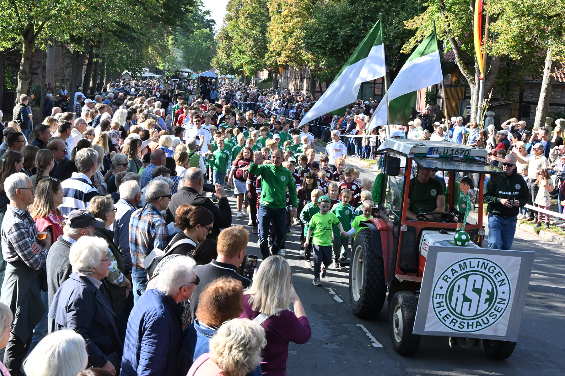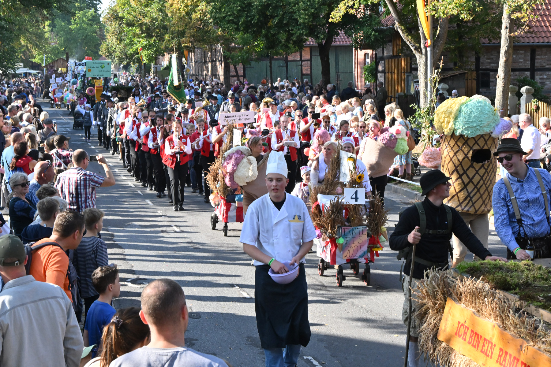 Es war alles vorbereitet für das Event des Jahres in Ramlingen: Am gestrigen Sonnabend, 27. September 2025, wurde mit Melanie „Melli“ Wottke die 53. Ramlinger Erntekönigin proklamiert (wir berichteten). Heute stand der zweite Festumzug auf dem Programm. Bei 20 Grad und wolkenlosem Himmel kamen die Besucher in Scharen. „So viele Besucher hatten wir noch nie“, urteilt Frank Berg von der Ramlinger Dorfgemeinschaft, die das Fest nunmehr zum 58. Mal veranstaltet hat.