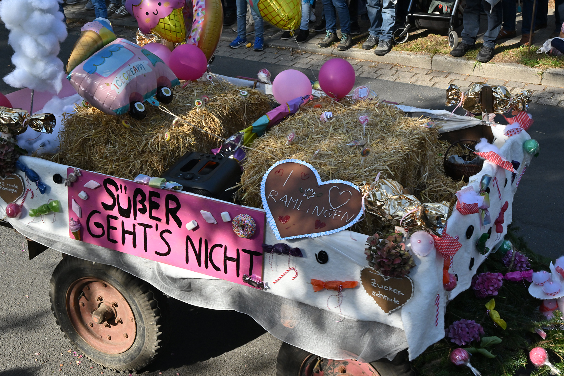 Vor dem Festumzug, dem alle entgegenfieberten, begrüßte Timo Wöhler, Sprecher der Dorfgemeinschaft, die Gäste und insbesondere den Ortsrat um Ortsbürgermeister Wolfram Nolte, den Ältestenrat sowie die ehemaligen Erntekönige. „Wir sind stolz auf diese Gemeinschaft“, betonte Wöhler. Vor allem dankte er den Wagenbauern und Fußgruppen, „die sich immer viel einfallen lassen“, für ihr Engagement. „Es war eine irre Anzahl an Zuschauern.“ Am Umzug nahmen elf festlich geschmückte Wagen und 19 Fußgruppen teil. „Die Dorfgemeinschaft ist wieder stolz auf unsere Wagenbauer und unsere Fußgruppen, die sich erneut viele tolle Ideen haben einfallen lassen. Festlich geschmückte Wagen, bunt gekleidete Gruppen – ich weiß gar nicht, was hier alles rumläuft: Es geht von Tieren über Schneckenkorn, Gemüse und Lollies. Ramlingen ist bunt und das wollen wir hier und heute noch einmal feiern“, so Wöhler.