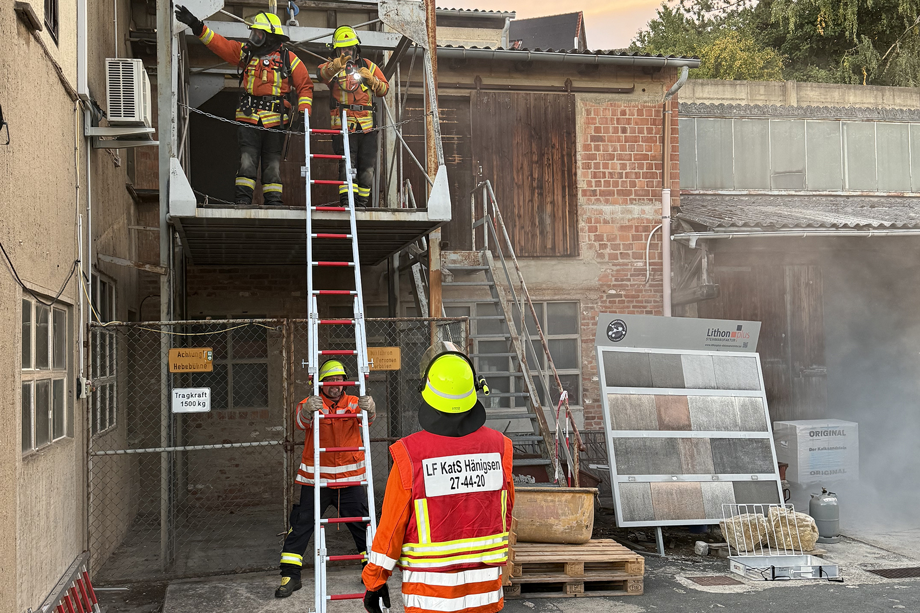 Nach einer kurzen Lageeinweisung und dem Bezug der Unterkunft an der IGS Bad Salzdetfurth ging es los. Aus einer Werkhalle in Bad Salzdetfurth ging ein Notruf ein: Es wurde gemeldet: laute Verpuffung, begleitet von starkem Rauch. Sofort rückte der 4. Zug der Regionsfeuerwehrbereitschaft nach Wehrstedt aus und nahm die Brandbekämpfung auf und begann mit der Rettung von Personen.