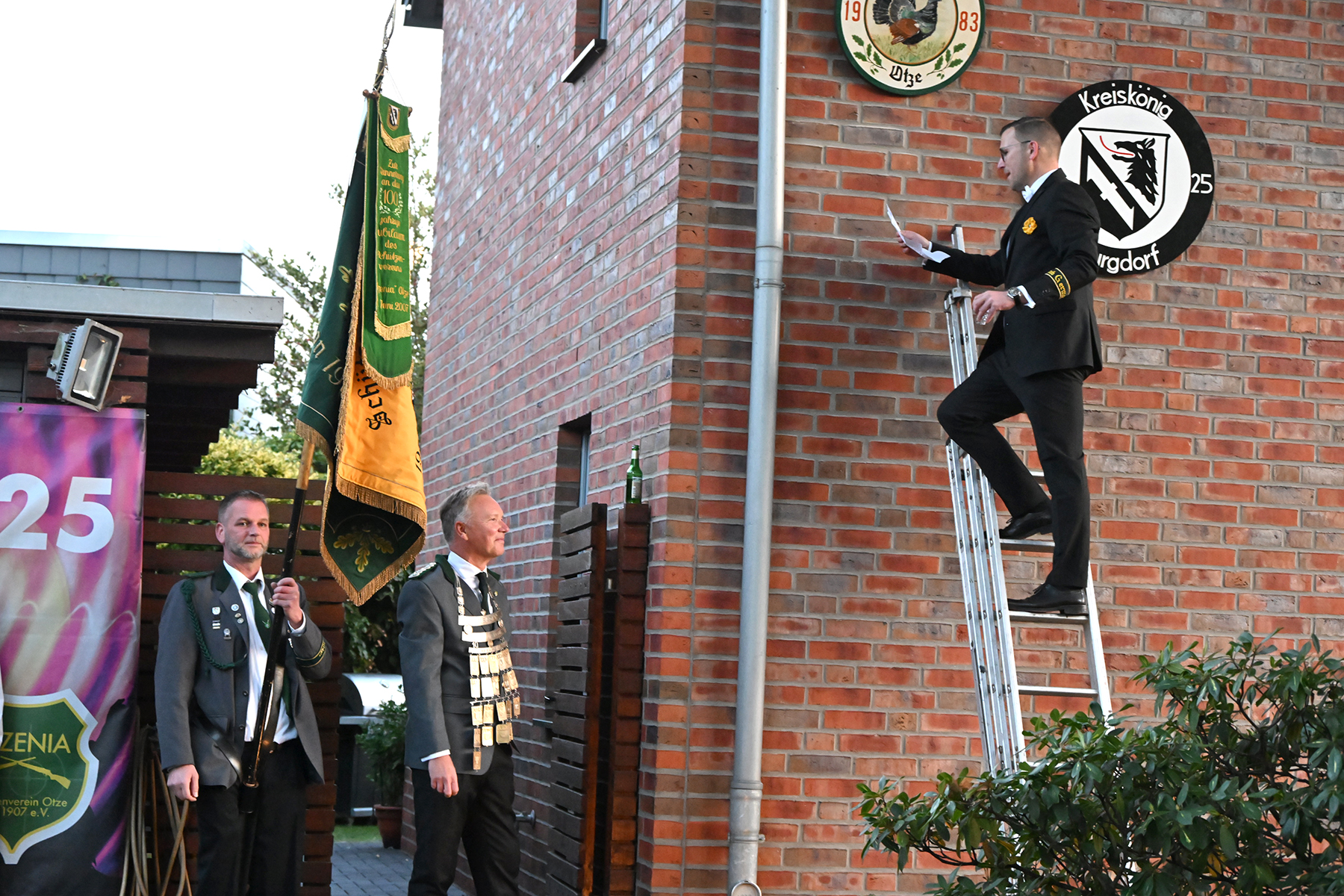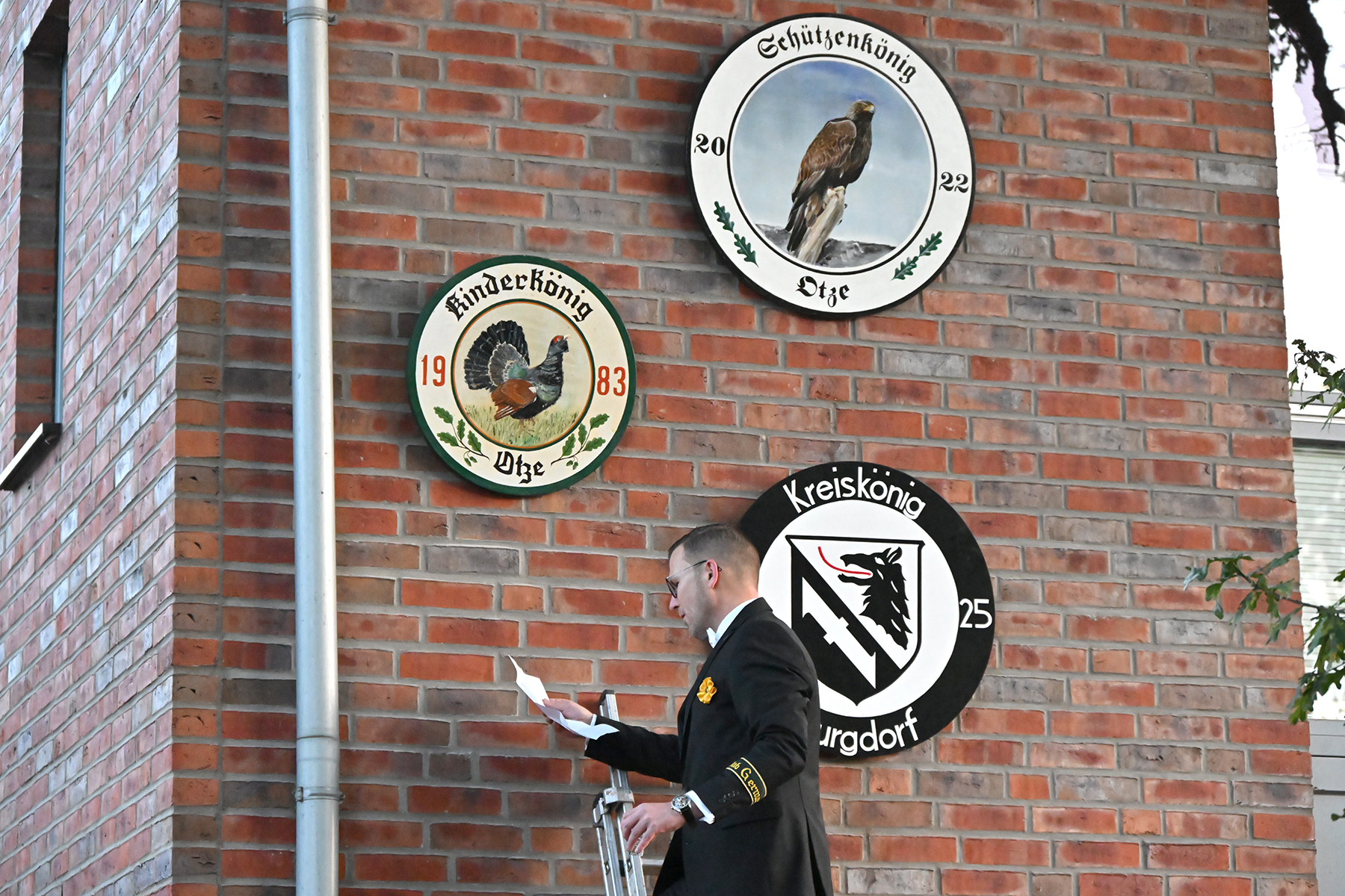 In dem Burgdorfer Ortsteil wurde am gestrigen Donnerstag, 2. Oktober 2025, zum ersten Mal in der Geschichte eine Kreiskönigsscheibe der Erwachsenen aufgehängt. Maik Heuer ist amtierender Kreiskönig und damit nunmehr die dritte Kreiskönigsmajestät in dem Burgdorfer Ortsteil. Zuvor hatten zwei Nachwuchsschützen die Titel nach Otze geholt.