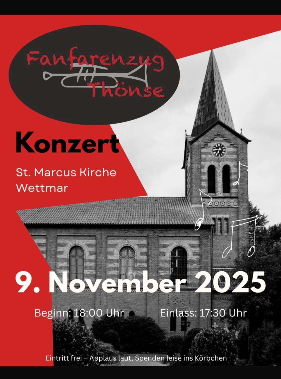 Der Fanfarenzug Thönse lädt am kommenden Sonntag, 9. November 2025, zu einem besonderen Konzert in die St.-Marcus-Kirche in Wettmar ein.