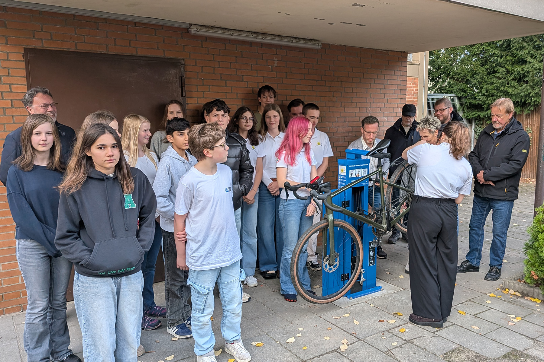 Einweihung des neuen Fahrradreparaturständers am Gymnasium Lehrte