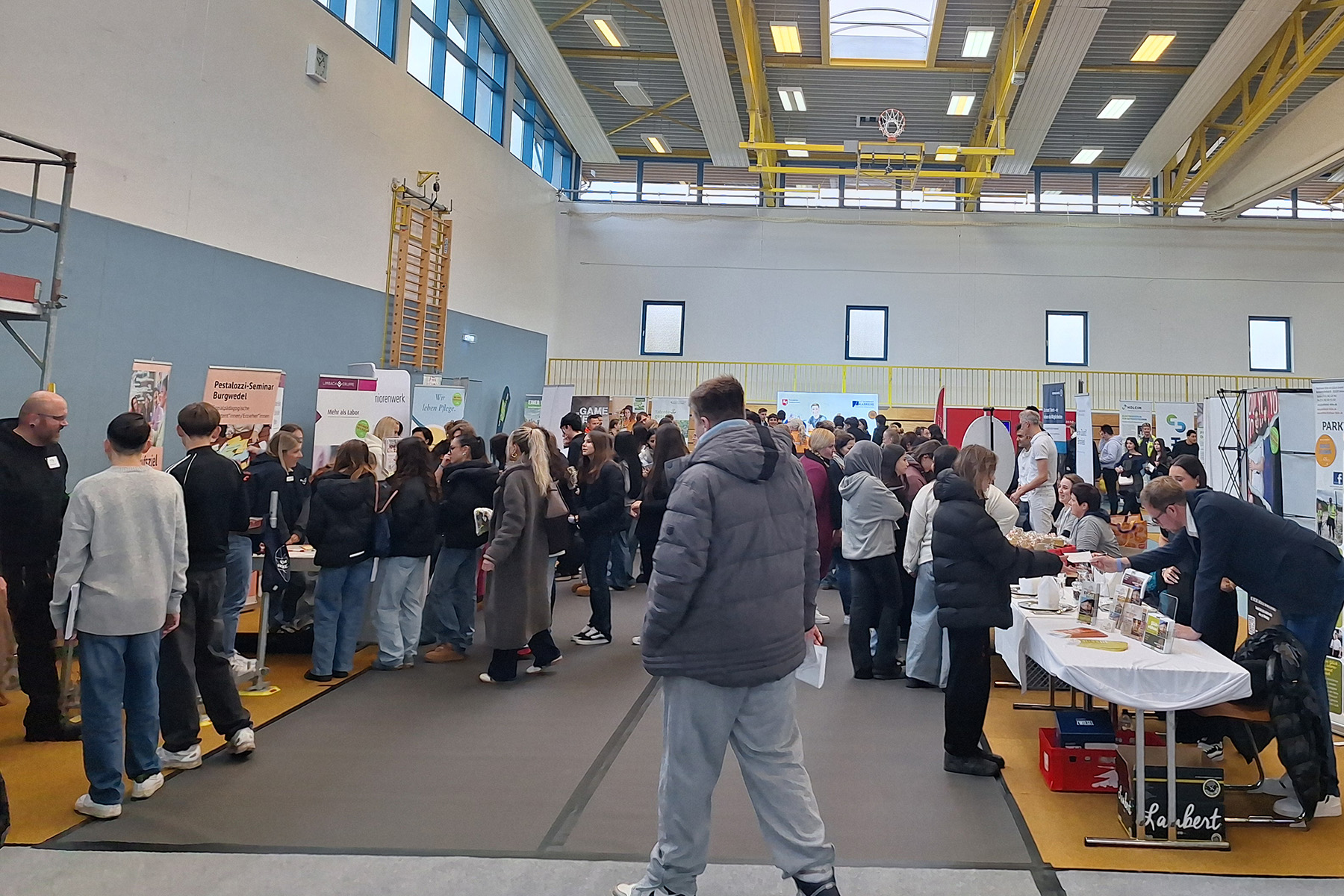 Am vergangenen Donnerstag, 20. November 2025, fand in der Vierfeldhalle Im Sportpark wieder die Ausbildungsmesse Lehrte-Sehnde statt. Das Team rund um Tobias Neumann, Wirtschaftsförderer der Stadt Lehrte, hatte die Sporthalle bereits am Vortag in eine Messehalle verwandelt: Teppich, Tische, Stühle – alles wurde von den umliegenden Schulen durch den Bauhof angeliefert. Die Schüler halfen beim Aufbau und die Ausschilderungen wurden vorbereitet.