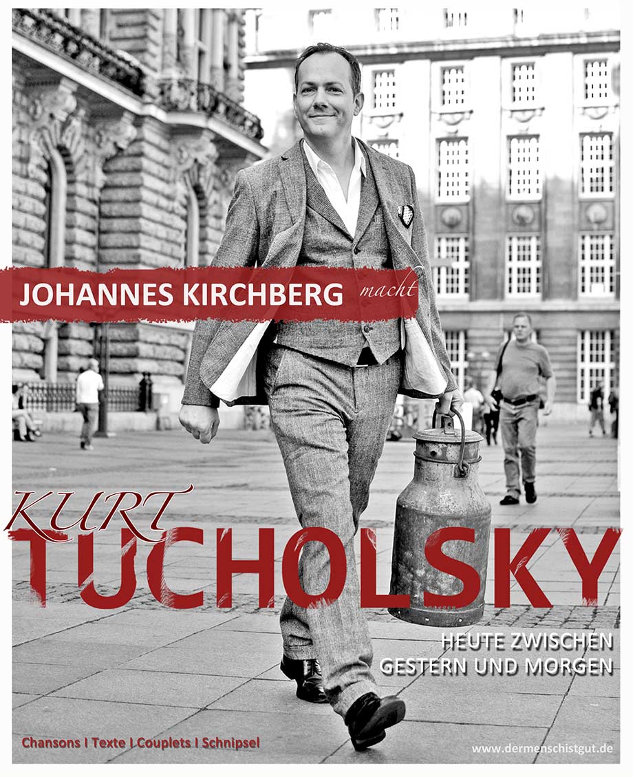 Kirchberg ist vielfach ausgezeichnet und hat bereits Programme zu Erich Kästner und Wolfgang Borchert entwickelt. Sein Tucholsky-Abend erhält in diesem Jahr eine besondere Bedeutung, da sich im Dezember der Todestag des Publizisten zum neunzigsten Mal jährt. Tucholsky, einer der prägnantesten Autoren der Weimarer Republik, schrieb unter mehreren Pseudonymen und bleibt mit seiner Mischung aus Poesie, Satire, scharfem Zeitkommentar, Pazifismus und antimilitaristischen Positionen bis heute aktuell.