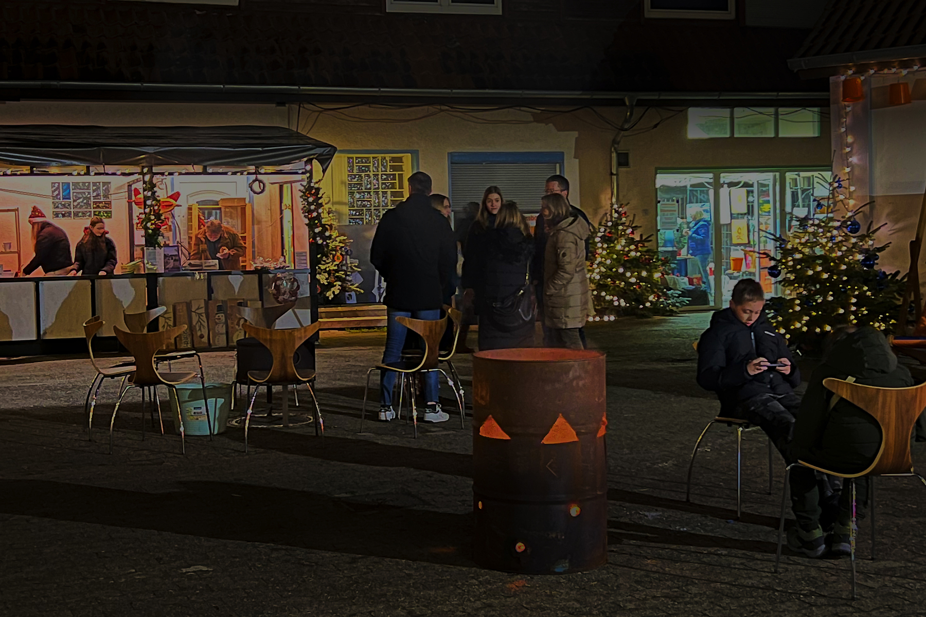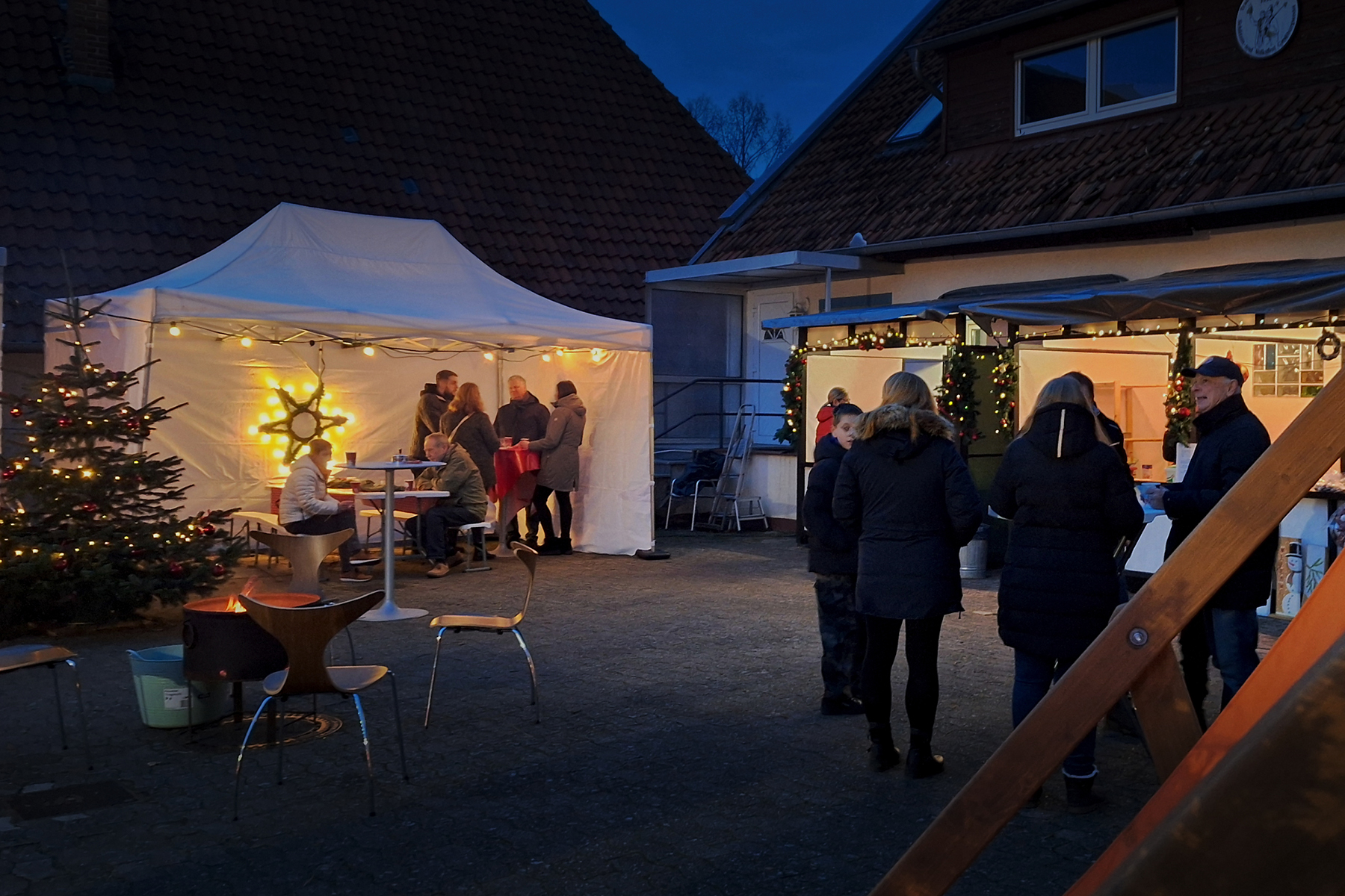 Das Wetter spielte auch mit, so dass, wer mochte, sich auch gemütlich mit einem Glühwein oder einer Bratwurst ans Feuer setzen und die Atmosphäre genießen konnte. Die Speisen und Getränke gab es zu Vereinspreisen, so dass ausgiebig zugelangt wurde. Ein Highlight war die Kunst-Tombola, bei der man kleine und große, gespendete Kunstwerke gewinnen konnte.