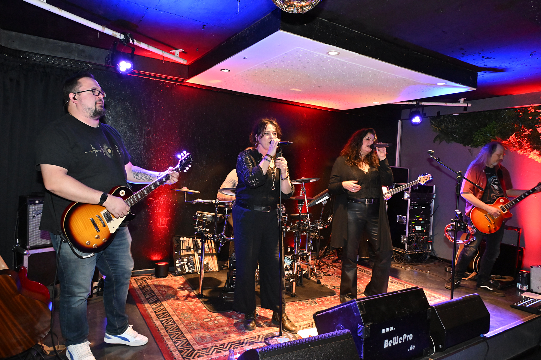 Anja und Kim als Sängerinnen sowie Alex, Joachim, Jaro und Kai rockten von der ersten Minute an die Bühne und versetzten die Zuhörer mit ihrem Sound in die 1990er Jahre.