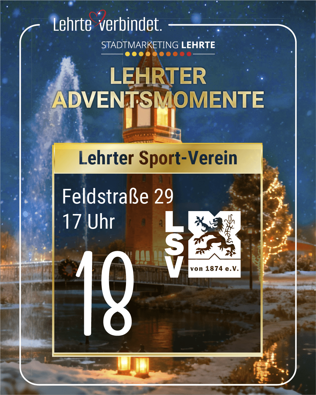 Mit der Aktion setzt der Lehrter SV im Rahmen der Adventsmomente einen eigenen Akzent und trägt dazu bei, die Adventszeit in Lehrte um eine weitere öffentliche Begegnungsmöglichkeit zu bereichern.