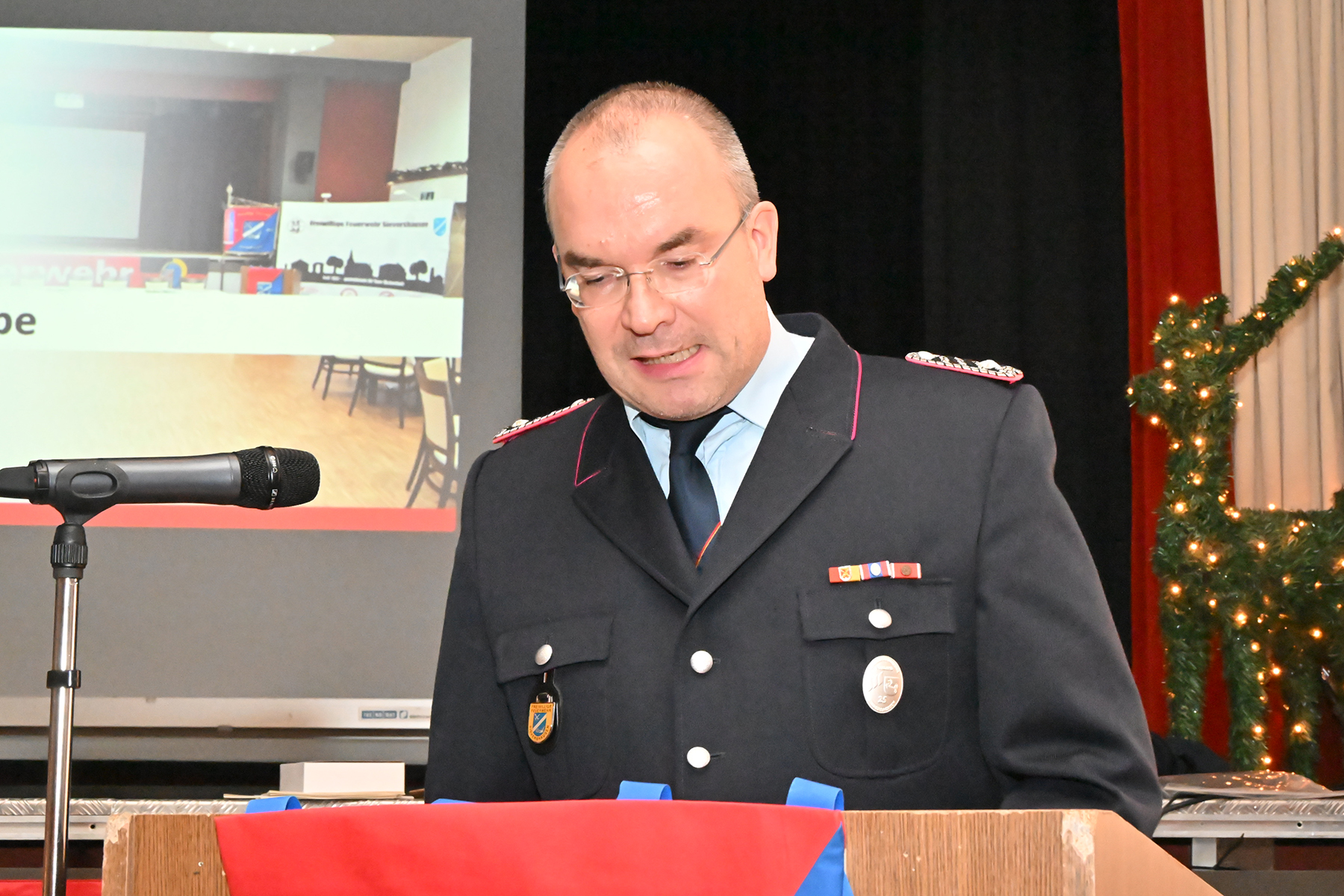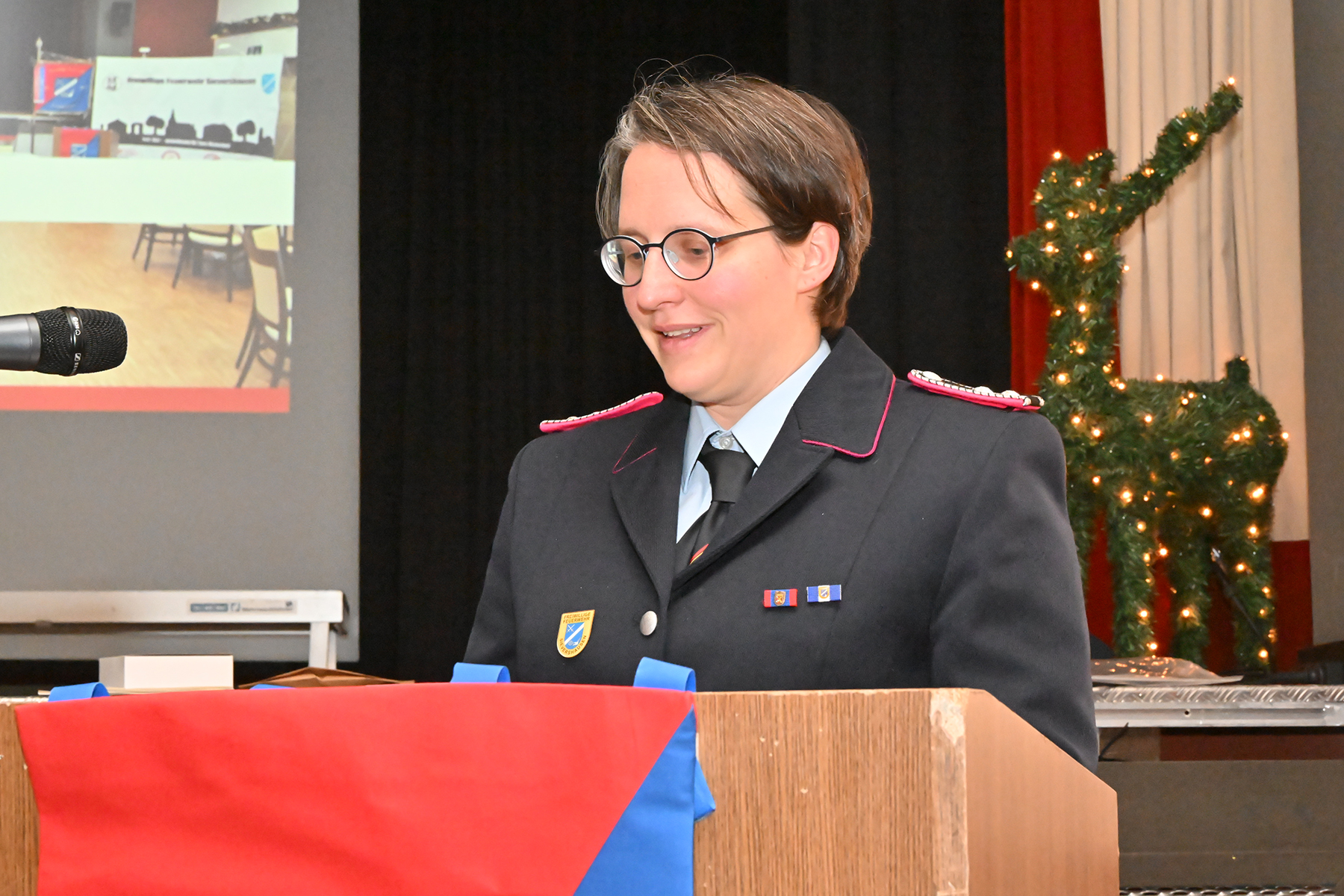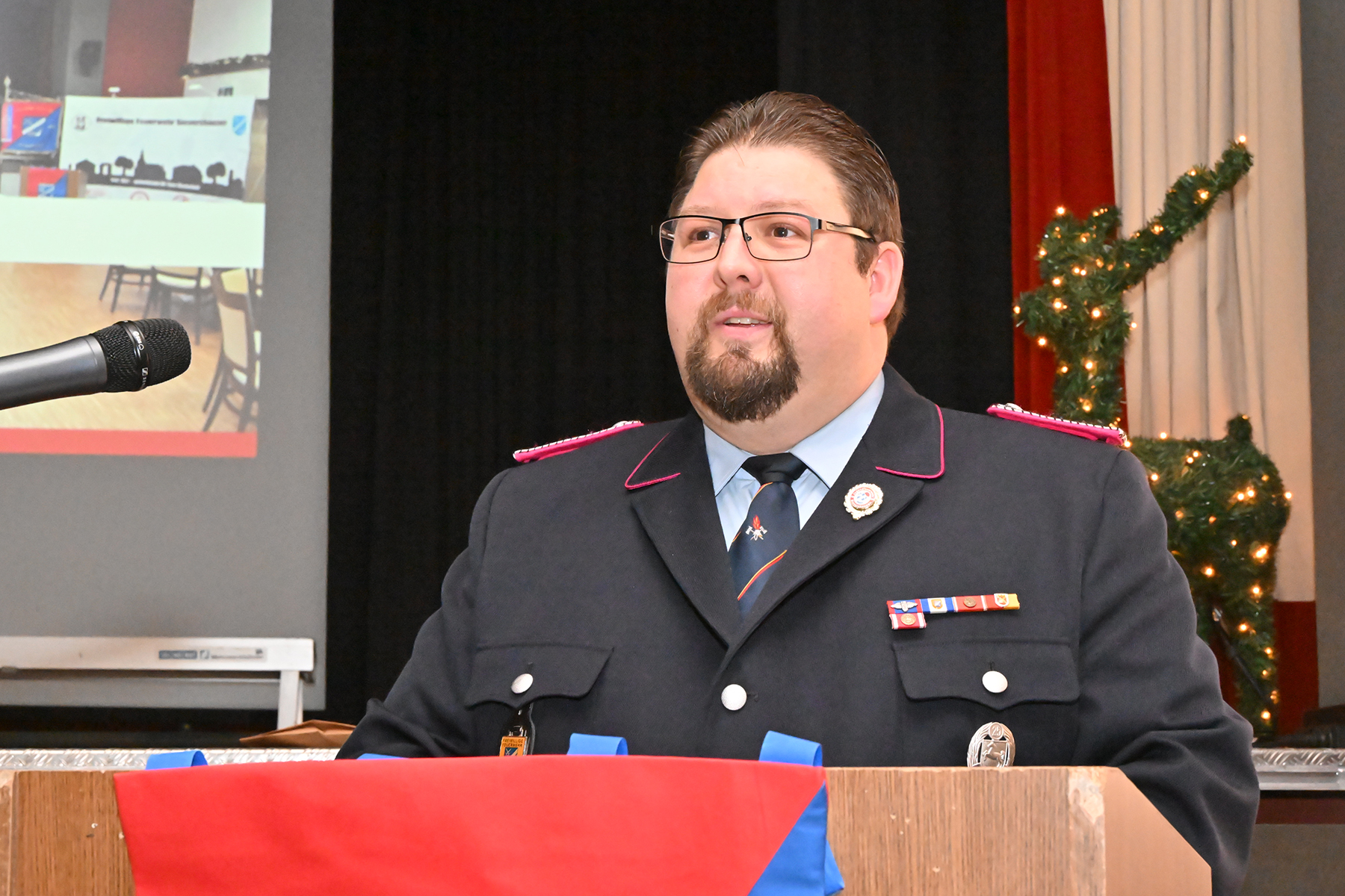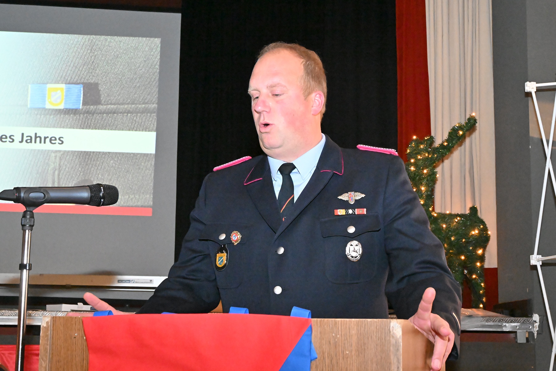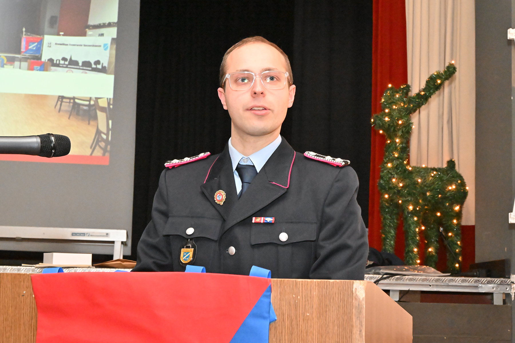 Manuel Köhne, stellvertretender Ortsbrandmeister, würdigte das Engagement aller und betonte den besonderen Stellenwert des Lebendigen Adventskalenders. Die Wahl zum Feuerwehrmann des Jahres sei ihm erneut schwergefallen. Es gehe nicht um einen Wettbewerb wie im Sport, sondern um Eigeninitiative, Engagement und Herzblut. Die Entscheidung fiel auf Jannis Wachsmann, der gefühlt bei jedem Dienst dabei sei und sich besonders zuverlässig zeige. Der Einsatz von Melanie Passek als Zweitplatzierte wurde ebenso gewürdigt. „Jeder von Euch hätte diesen Preis verdient, es kann aber nur einen 1. Platz geben“, so Manuel Köhne.