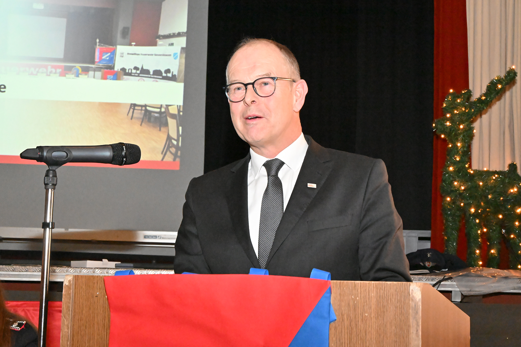 In den Grußworten lobte Bürgermeister Frank Prüße die beeindruckende Entwicklung der Feuerwehr. Er informierte über den Stand der Ersatzbeschaffung für das TLF 16/25, die kurz vor der Ausschreibung stehe, sowie über die geplanten Umkleidecontainer, für die 300.000 Euro im Haushalt bereitgestellt seien. Langfristig werde ein neues oder erweitertes Feuerwehrhaus angestrebt, wobei ein Baubeginn frühestens 2029 realistisch sei. Trotz vieler paralleler Großprojekte der Stadtverwaltung betonte Prüße, dass die Feuerwehr weiterhin zuverlässig ausgestattet werde, da das Ehrenamt unbezahlbar sei.