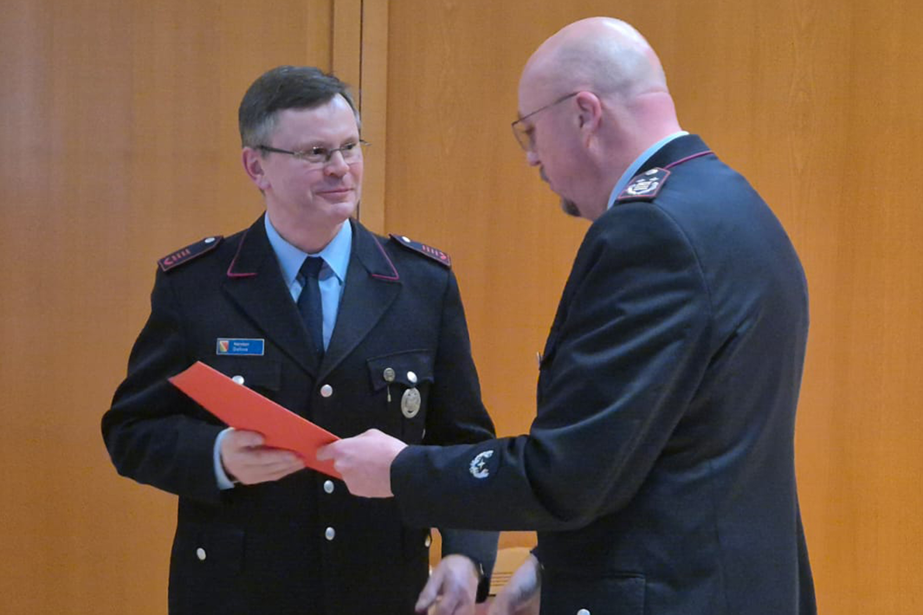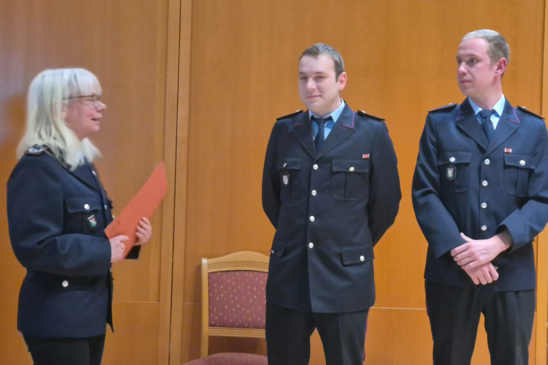 Beförderungen durch die Ortsbrandmeisterin: Shaline Bonnke erhielt den Dienstgrad Oberfeuerwehrfrau. Niklas Matz und Felix Saupe erhielten den Dienstgrad Erster Hauptfeuerwehrmann. Durch Gemeindebrandmeister Marc Perl wurden Bernd Steinberg und Christian Schlegel zu Hauptbrandmeistern sowie Patrick Lück zum Brandmeister befördert.