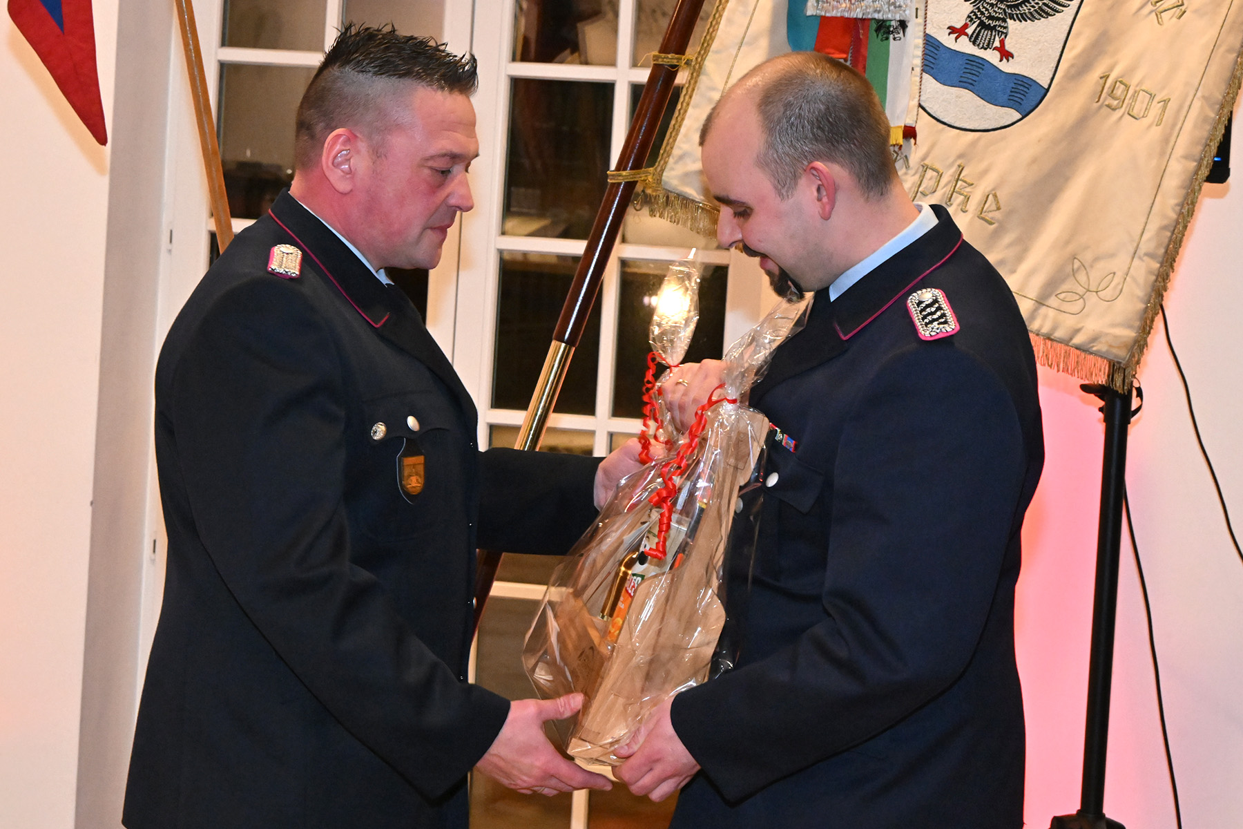 Prüße hob hervor: „Die Worte ‚Feuerwehr ist Familie‘ – das möchte ich unterstützen. Das Ehrenamt in der Feuerwehr ist wirklich Familie. Fabian (gemeint ist Fabian Meyer, die Red.), du bist ein Beispiel dafür.“ Das Ehrenamt sei keine Einbahnstraße. „Man bringt nicht nur was ein, die Gemeinschaft gibt einem so viel zurück. Für junge Leute eine ganz, ganz wichtige Sache. Sie sind in Arpke hier eine leistungsstarke Wehr. 60 Einsatzkräfte sind schon ein Wort.“