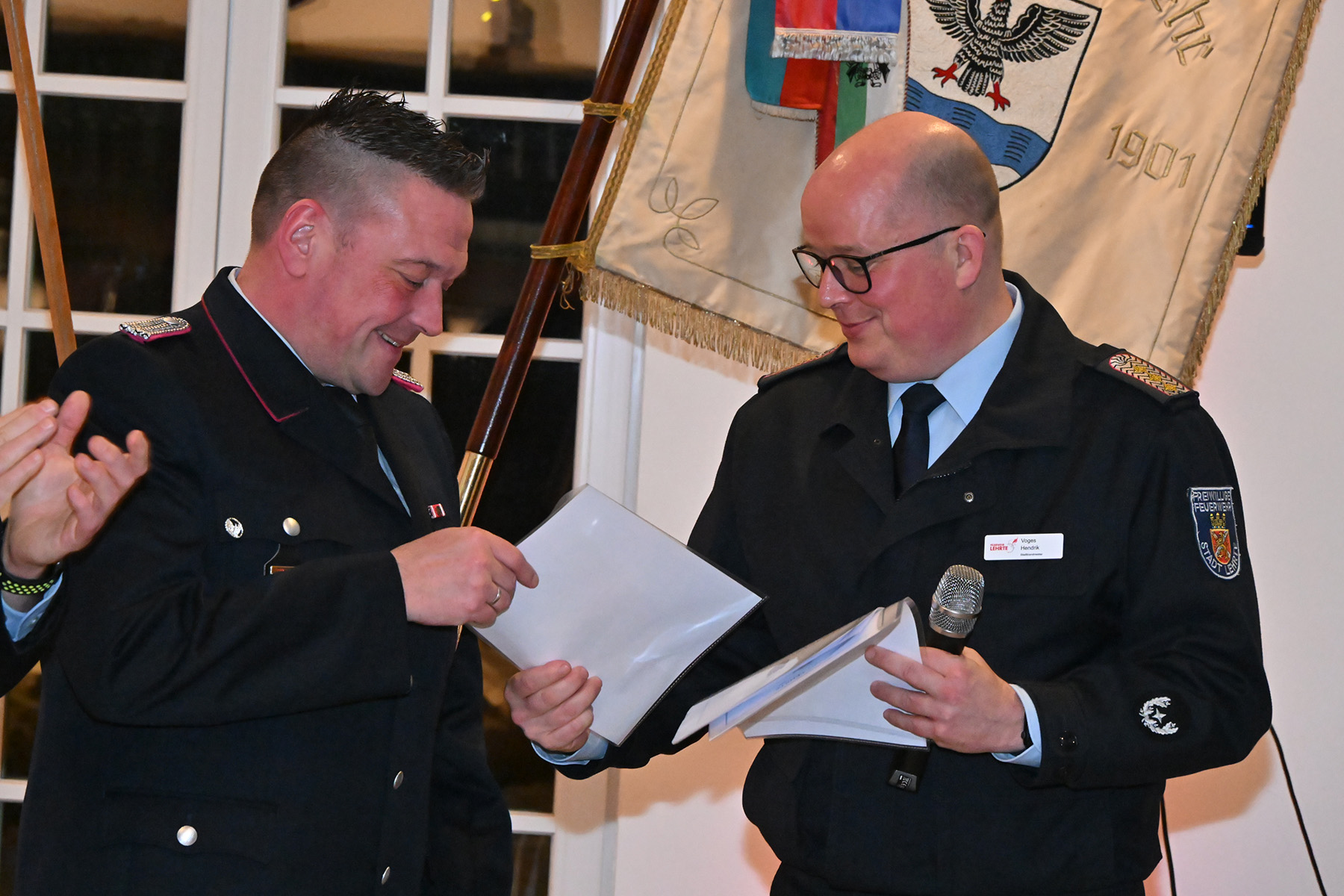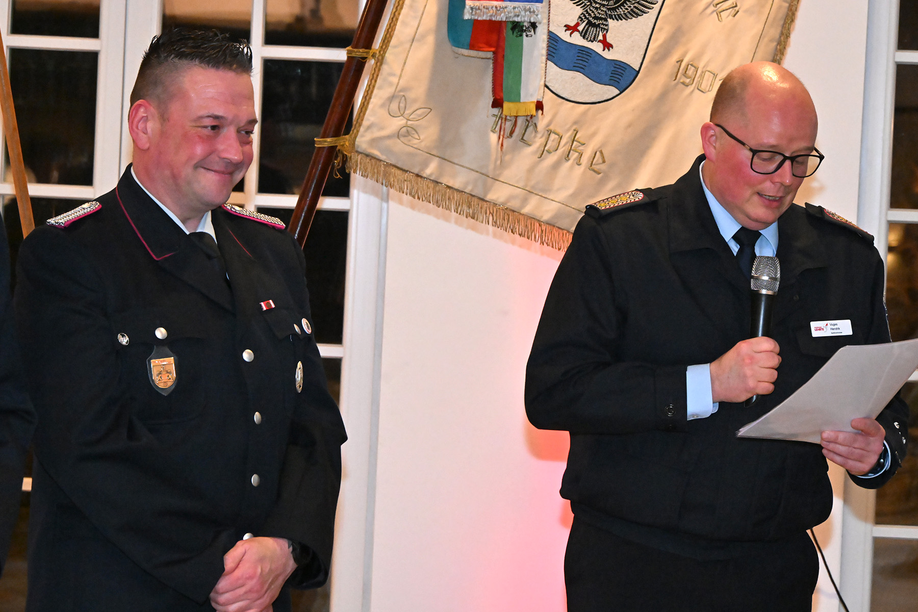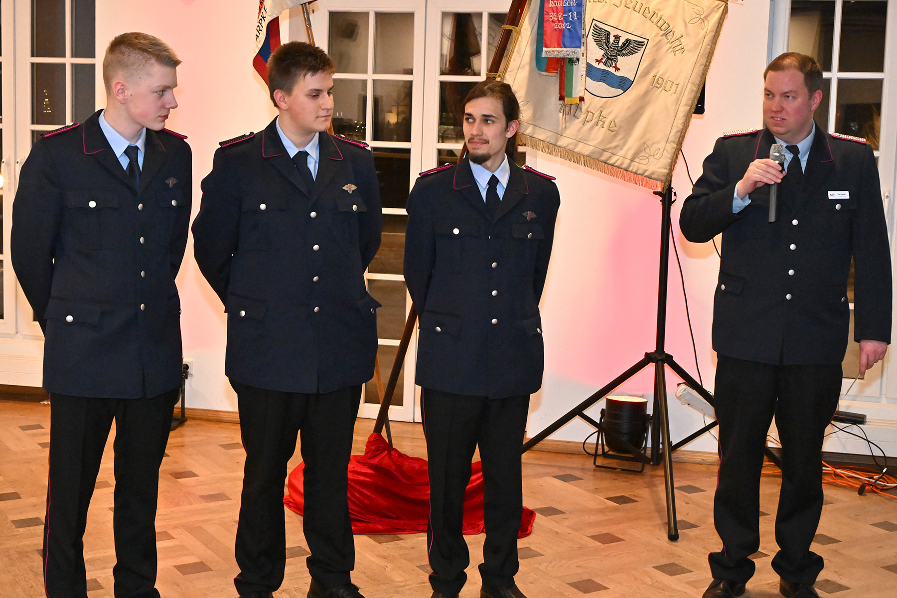 Fünf Ernennungen wurden vorgenommen: Zur Feuerwehrfrau wurde Gina Marie Berg ernannt und den Dienstgrad Feuerwehrmann erhielten Joel Bode, Hinnerk Lüders und Ulrich von Bramann. Zum Oberbrandmeister wurde Fabian Meyer ernannt.