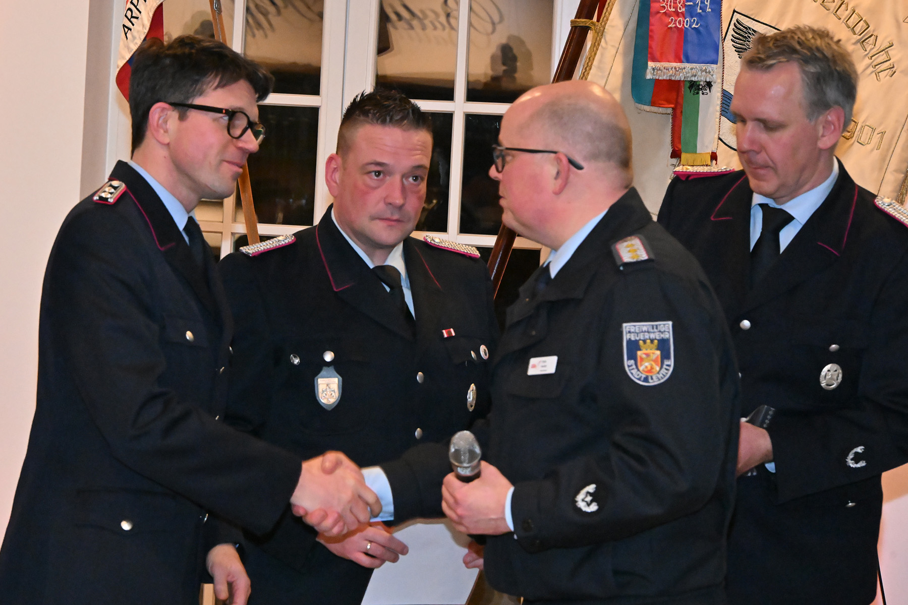Stadtbrandmeister Hendrik Voges gratulierte zu den Jubiläen: „Arpke leistet einen Beitrag dazu, eine den Gegebenheiten entsprechend leistungsfähige Feuerwehr aufzustellen. Eine verlässliche Ortsfeuerwehr. Arpke ist stark in der Ausbildung und auch beim Atemschutz.“