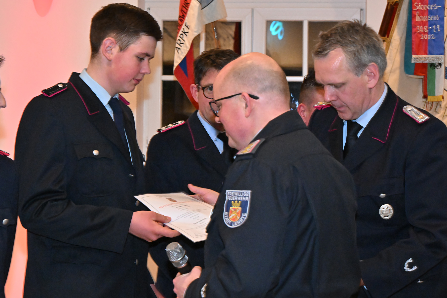 Die Jugendfeuerwehr feiert in diesem Jahr ihr 50-jähriges Bestehen. 1976 gegründet, war es damals nicht einfach, zehn Mitglieder zu finden, die für die Gründung notwendig waren „Sie ist eine tragende Säule für den Bestand der Feuerwehr“, hieß es im Bericht. Ein eindrucksvoller Moment: Alle, die mal in der Jugendfeuerwehr waren, sollten aufstehen – rund 40 Personen erhoben sich. „Es zeigt eindrucksvoll die Wichtigkeit der Jugendfeuerwehr. Wir sind überzeugt von unserer positiven Entwicklung.“